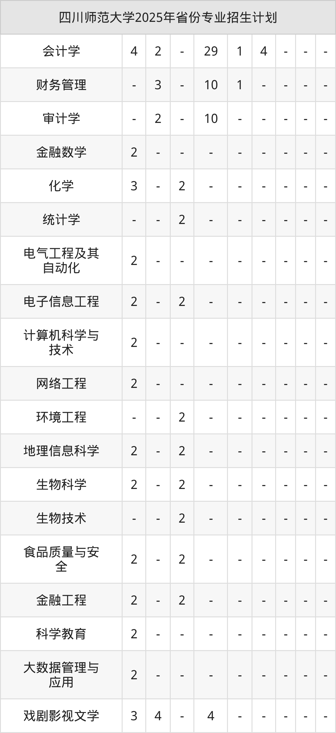 | 四川师范大学本科招生专业 | |