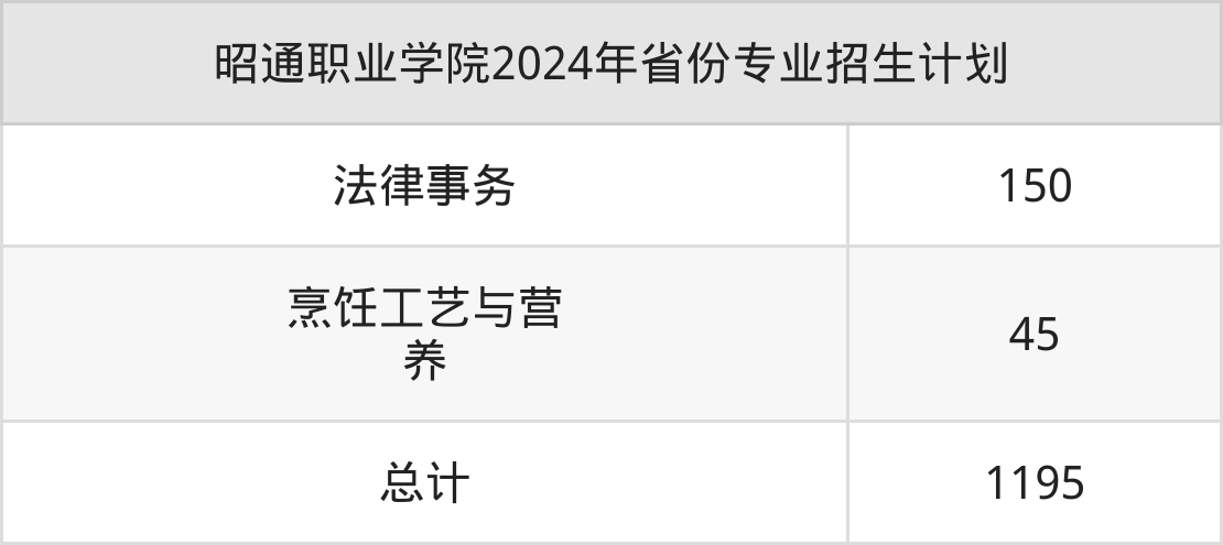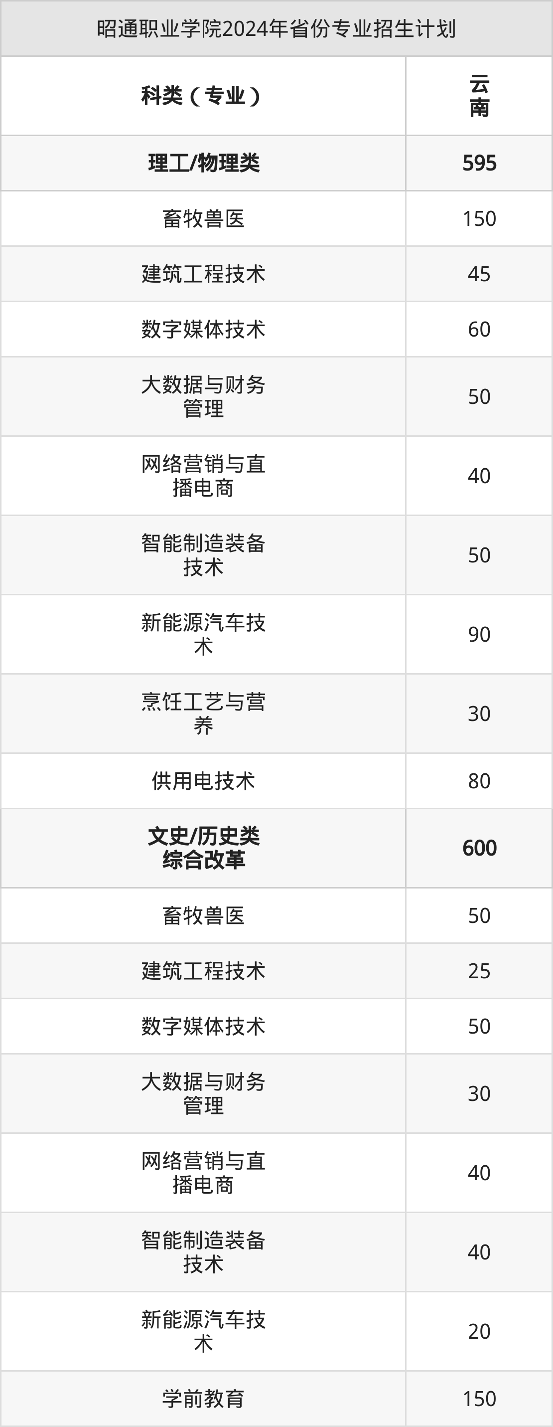 2025年昭通职业学院专科招生计划待公布,下面附上2024年数据,暂供参考: