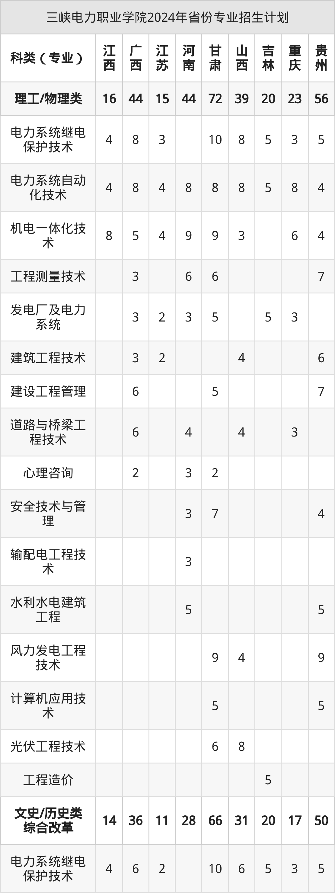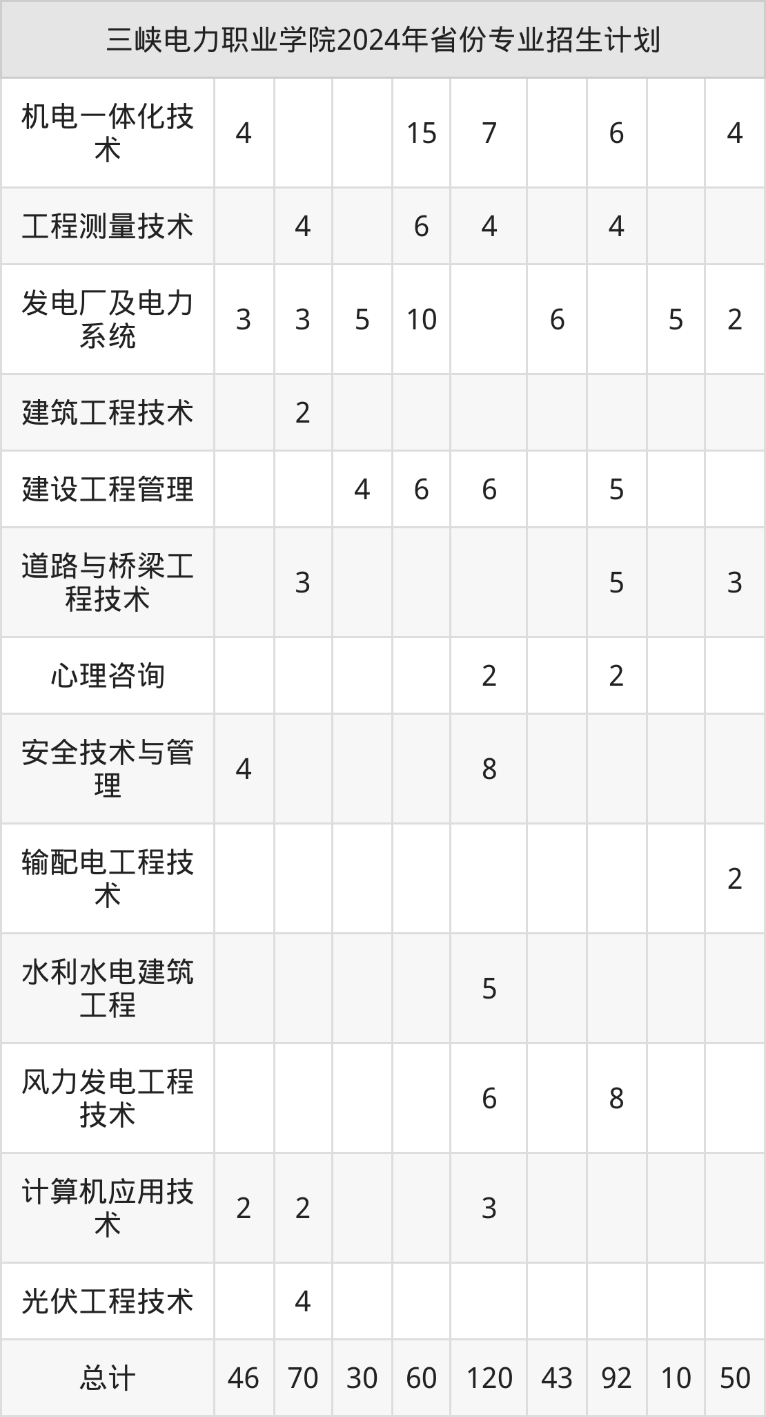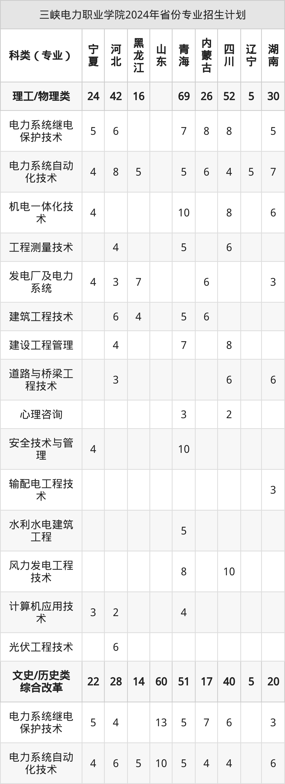 2025年三峡电力职业学院专科招生计划待公布,下面附上2024年数据,暂供参考: