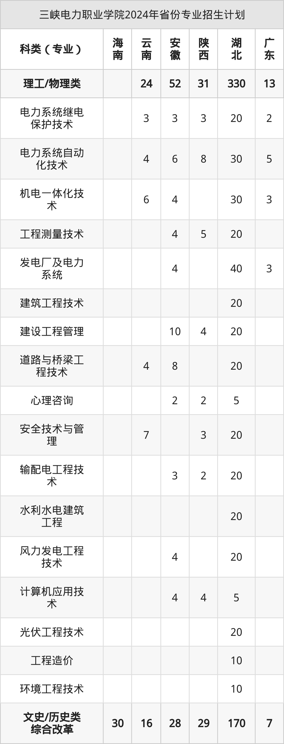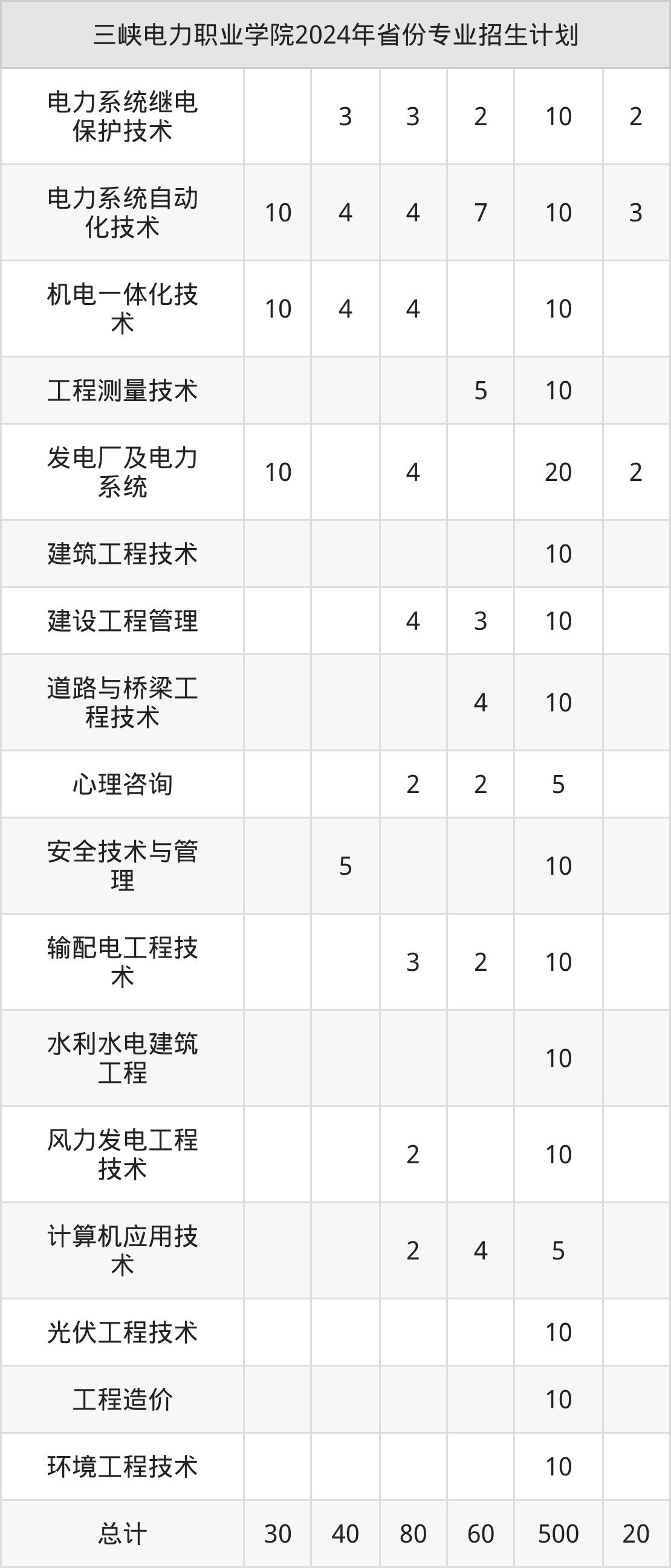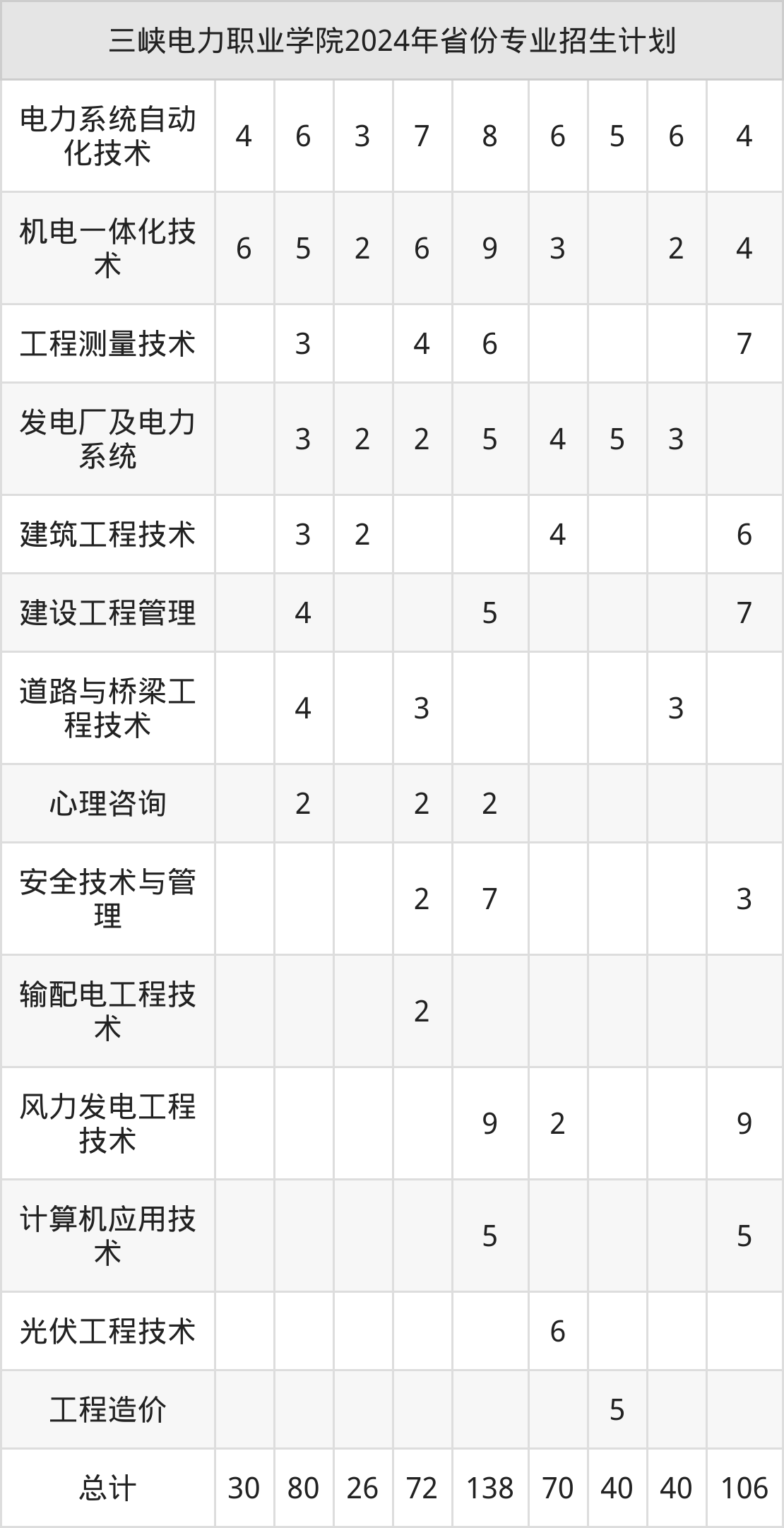 2025年三峡电力职业学院专科招生计划待公布,下面附上2024年数据,暂供参考: