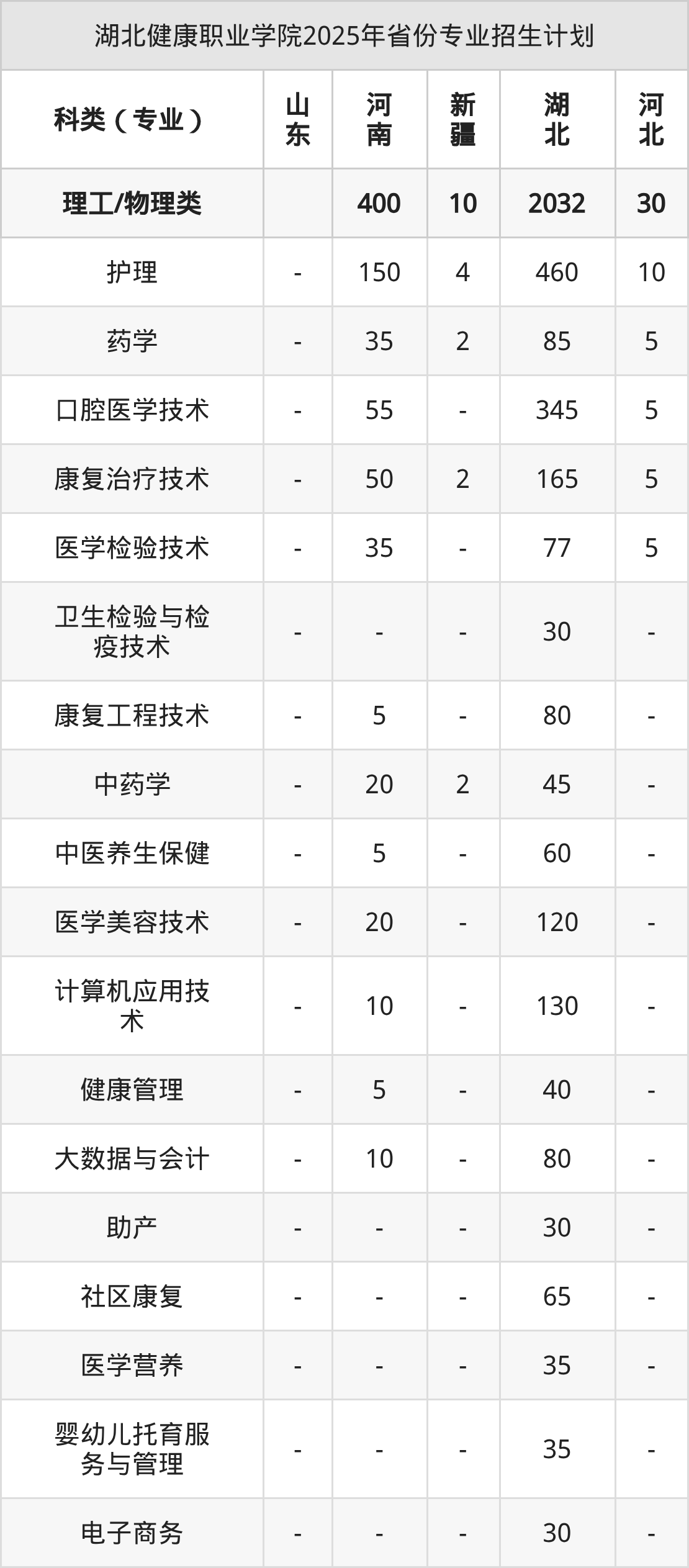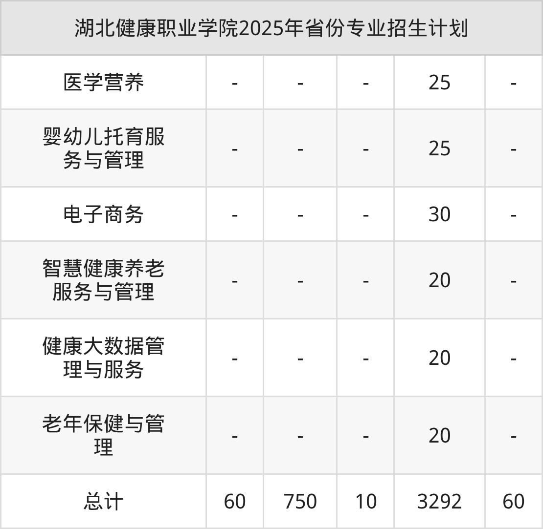 2026年湖北健康职业学院专科招生计划待公布,下面附上2025年数据,暂供参考: