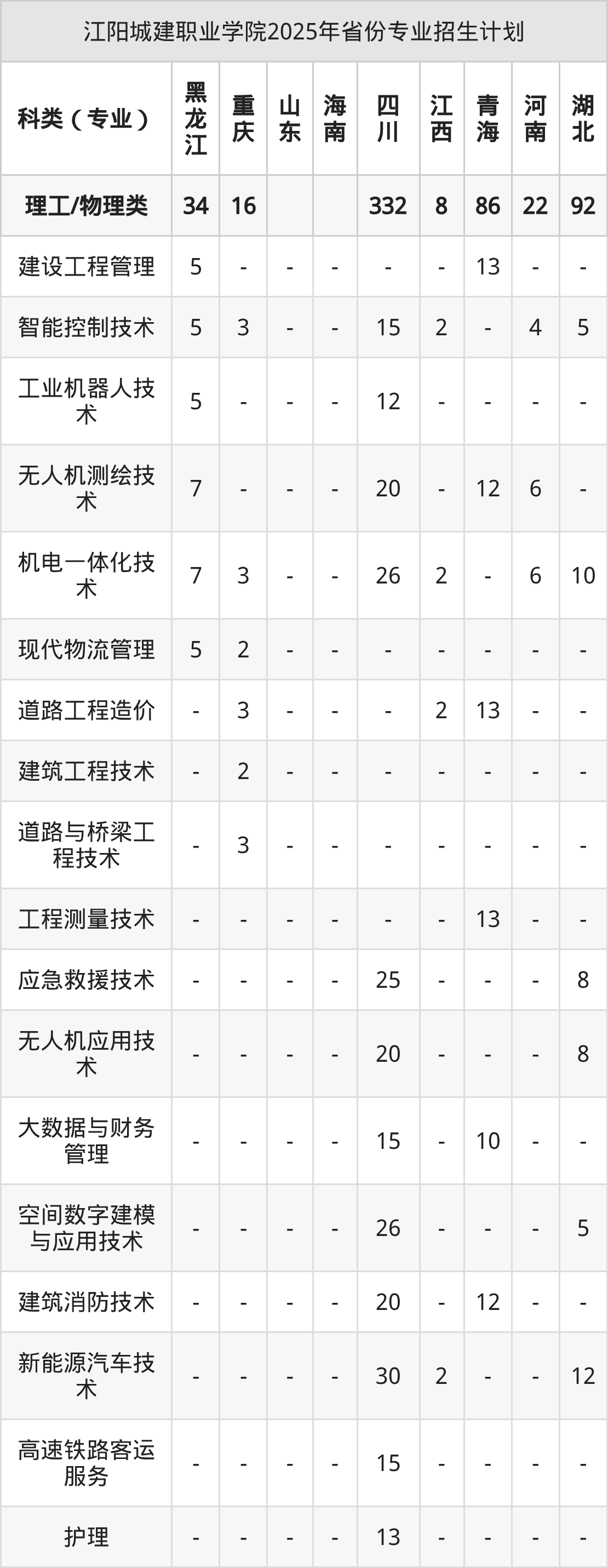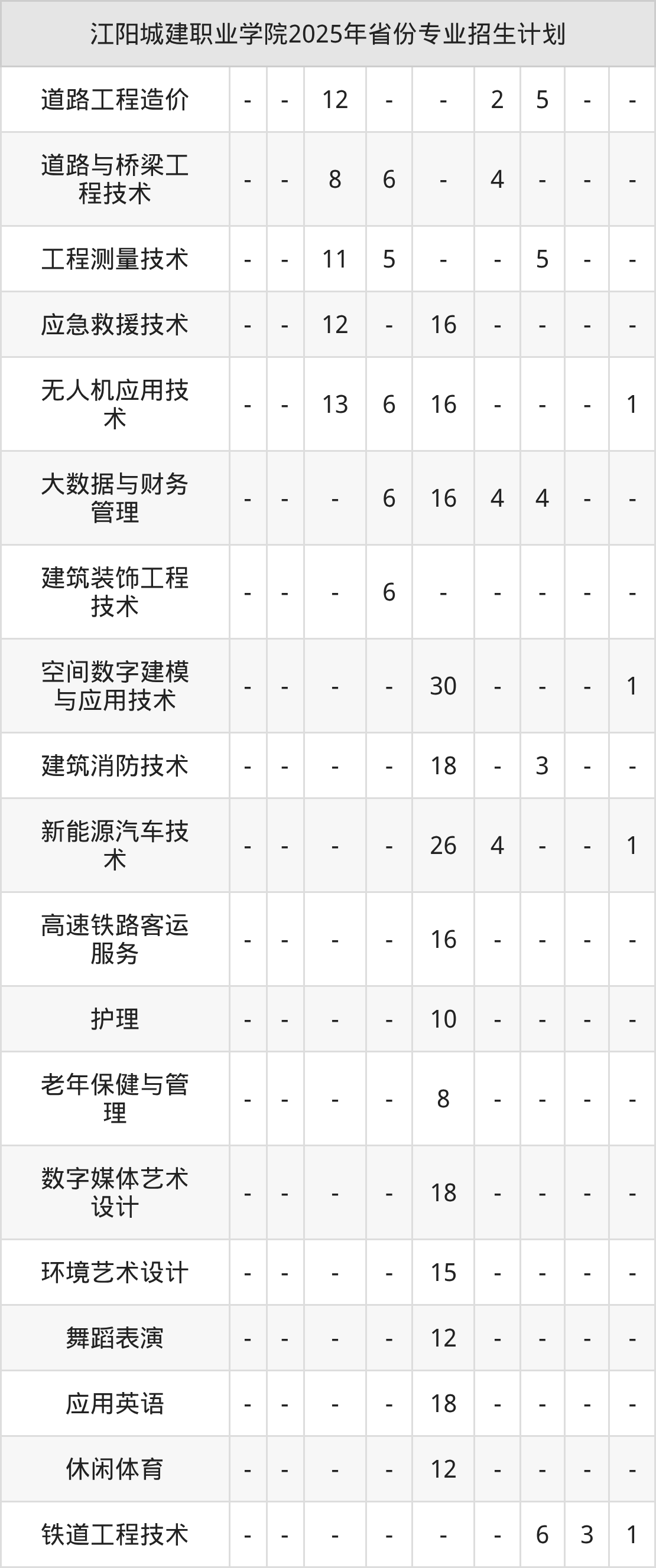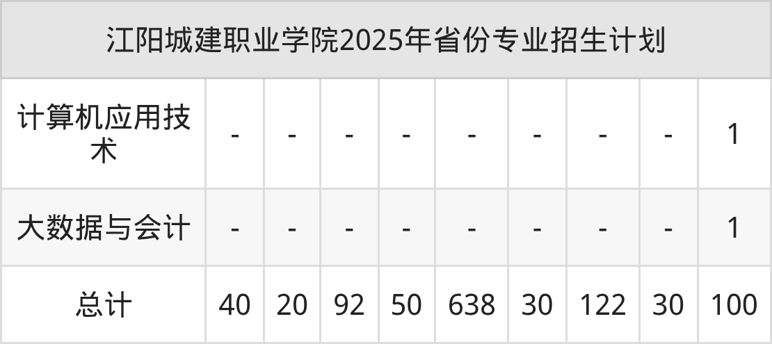 2026年江阳城建职业学院专科招生计划待公布,下面附上2025年数据,暂供参考: