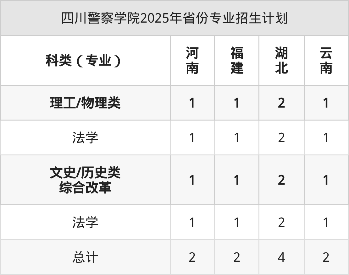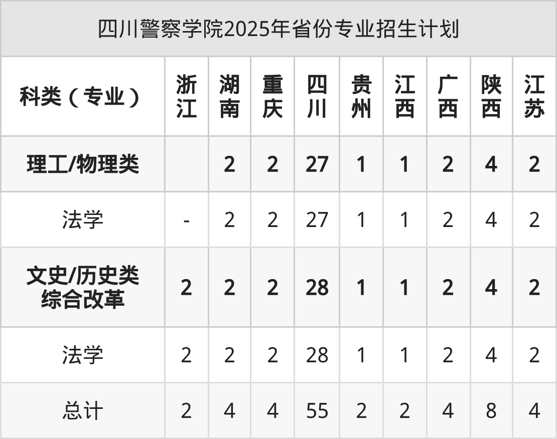 2026年四川警察学院本科招生计划待公布,下面附上2025年数据,暂供参考: