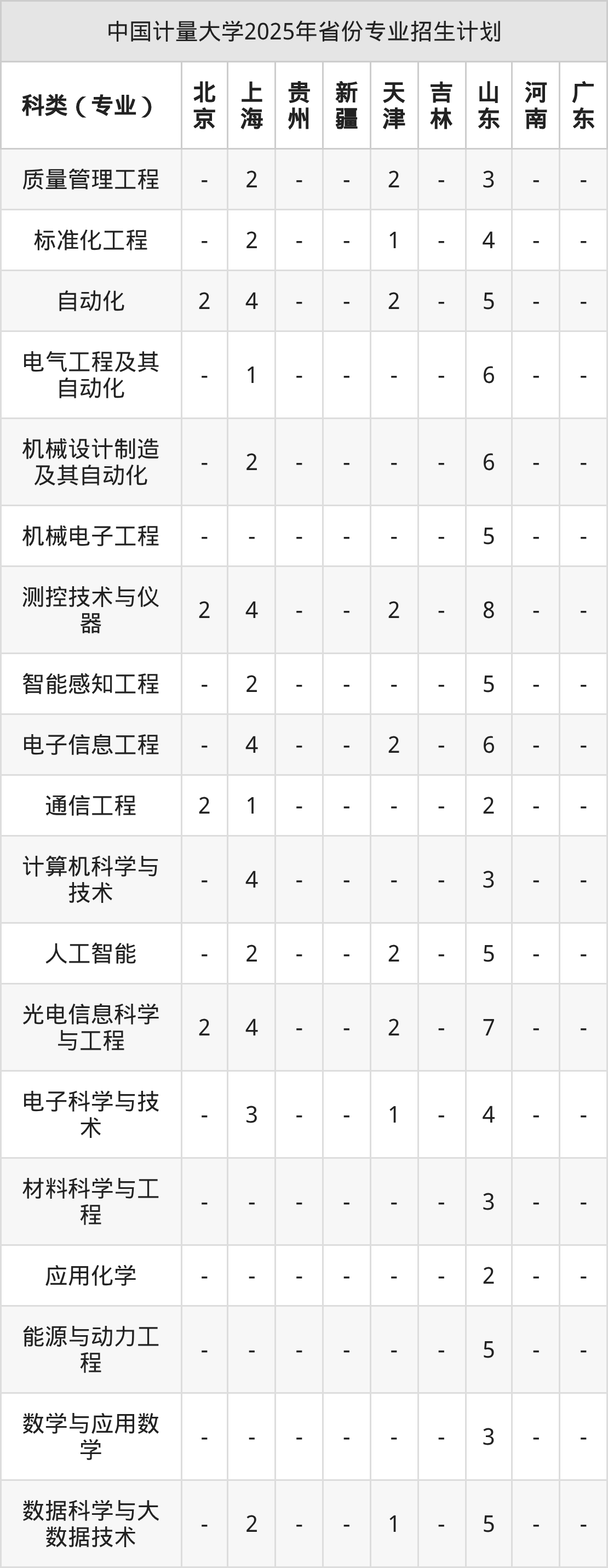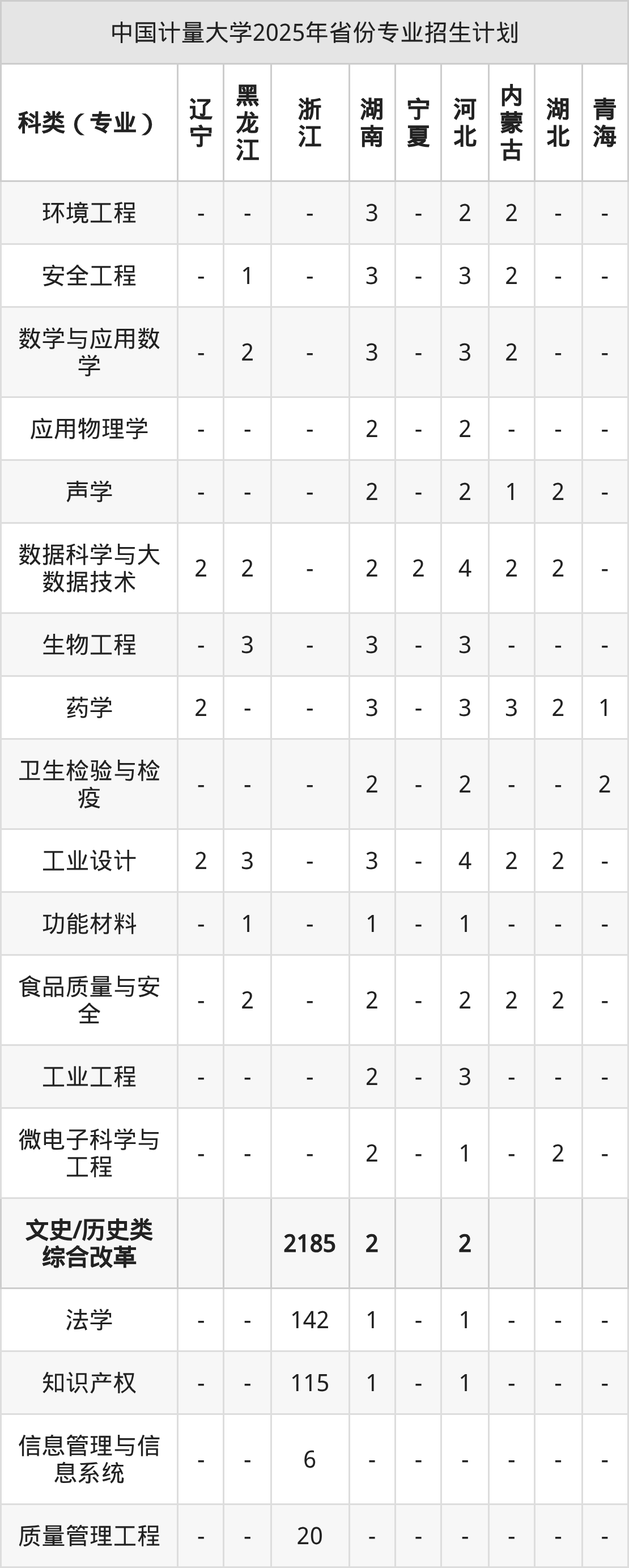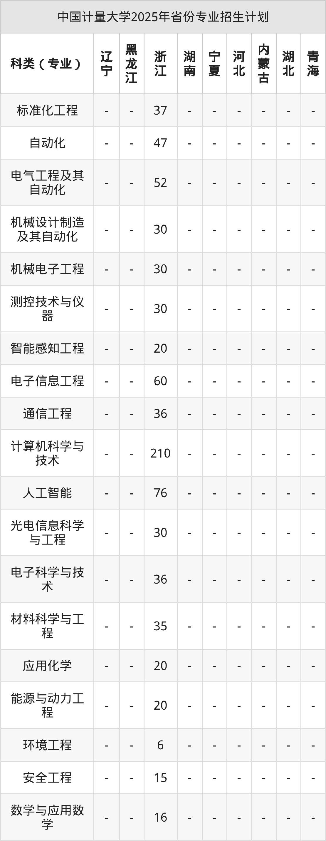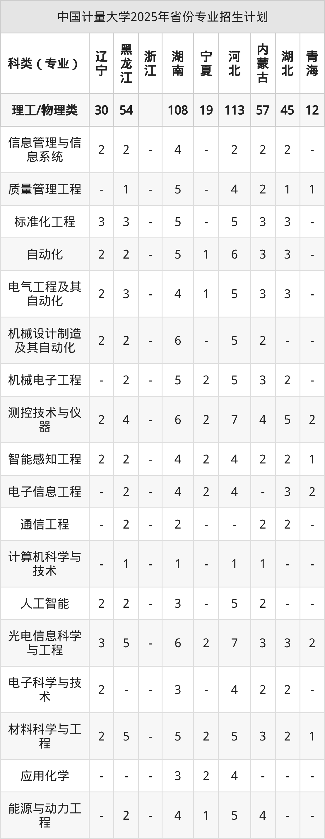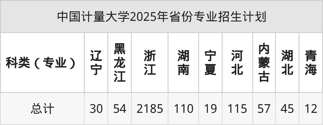2026年中国计量大学本科招生计划待公布,下面附上2025年数据,暂供参考: