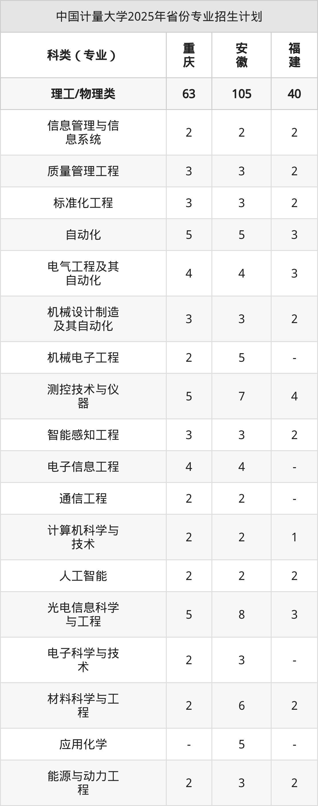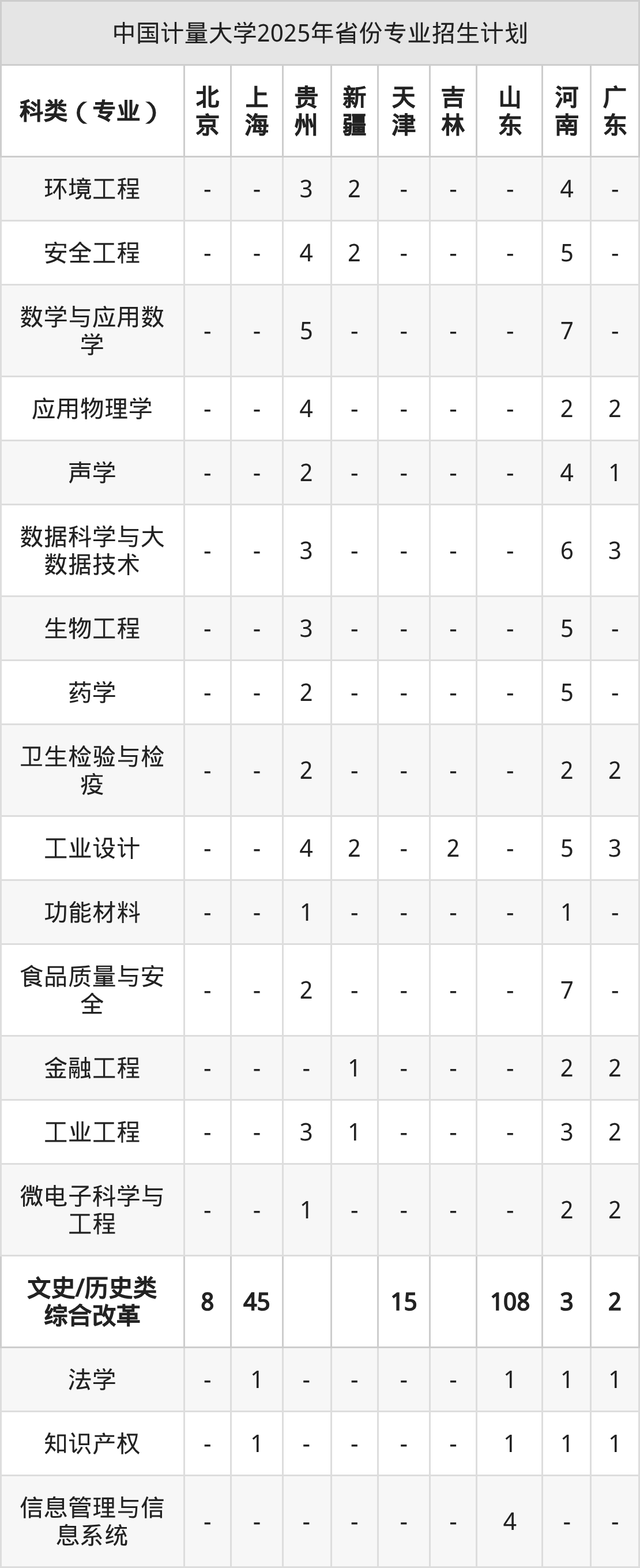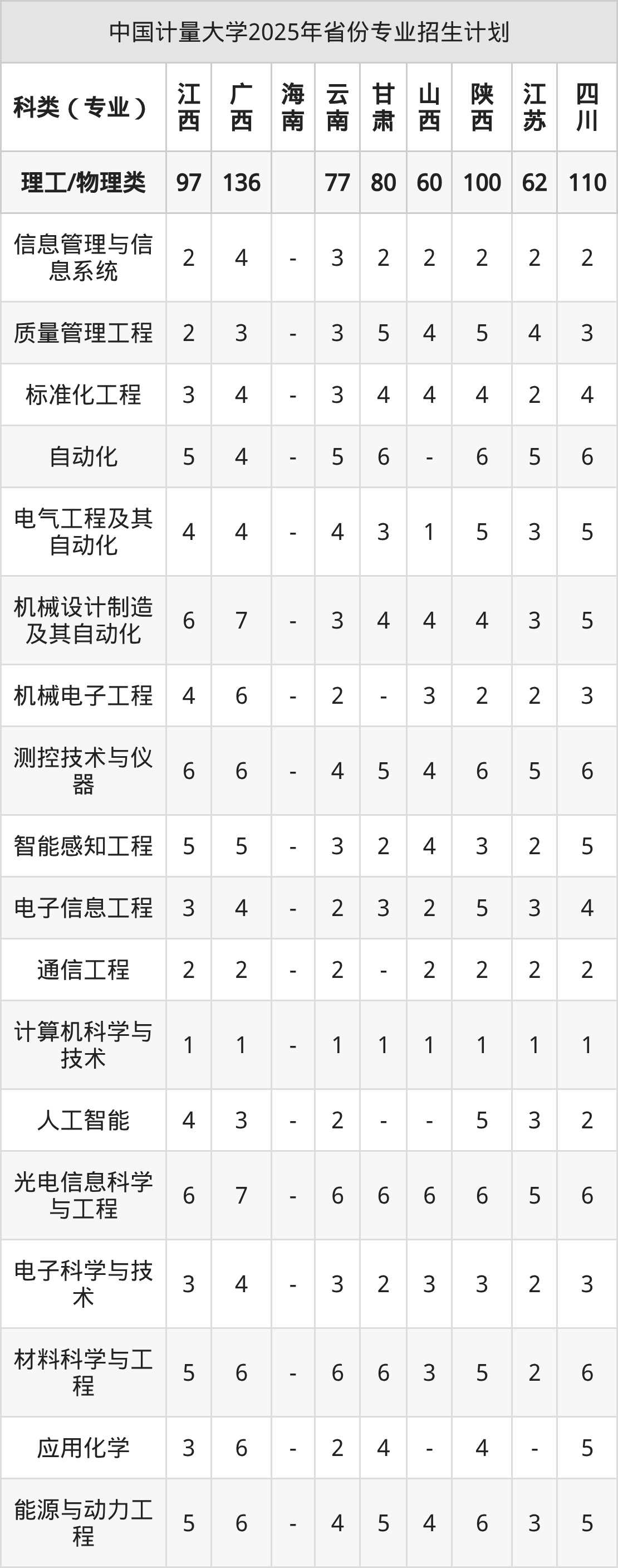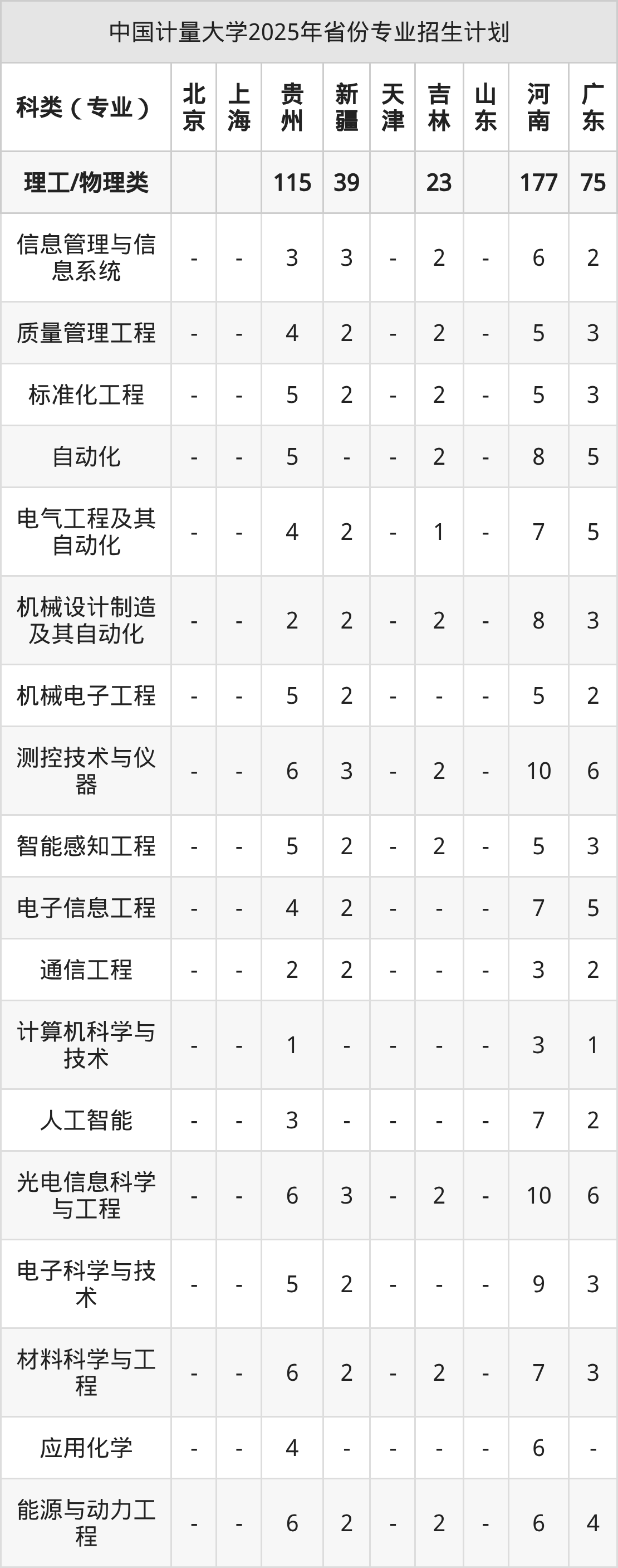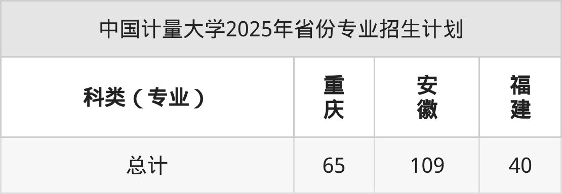 2026年中国计量大学本科招生计划待公布,下面附上2025年数据,暂供参考: