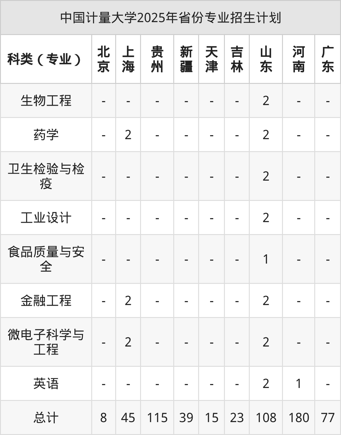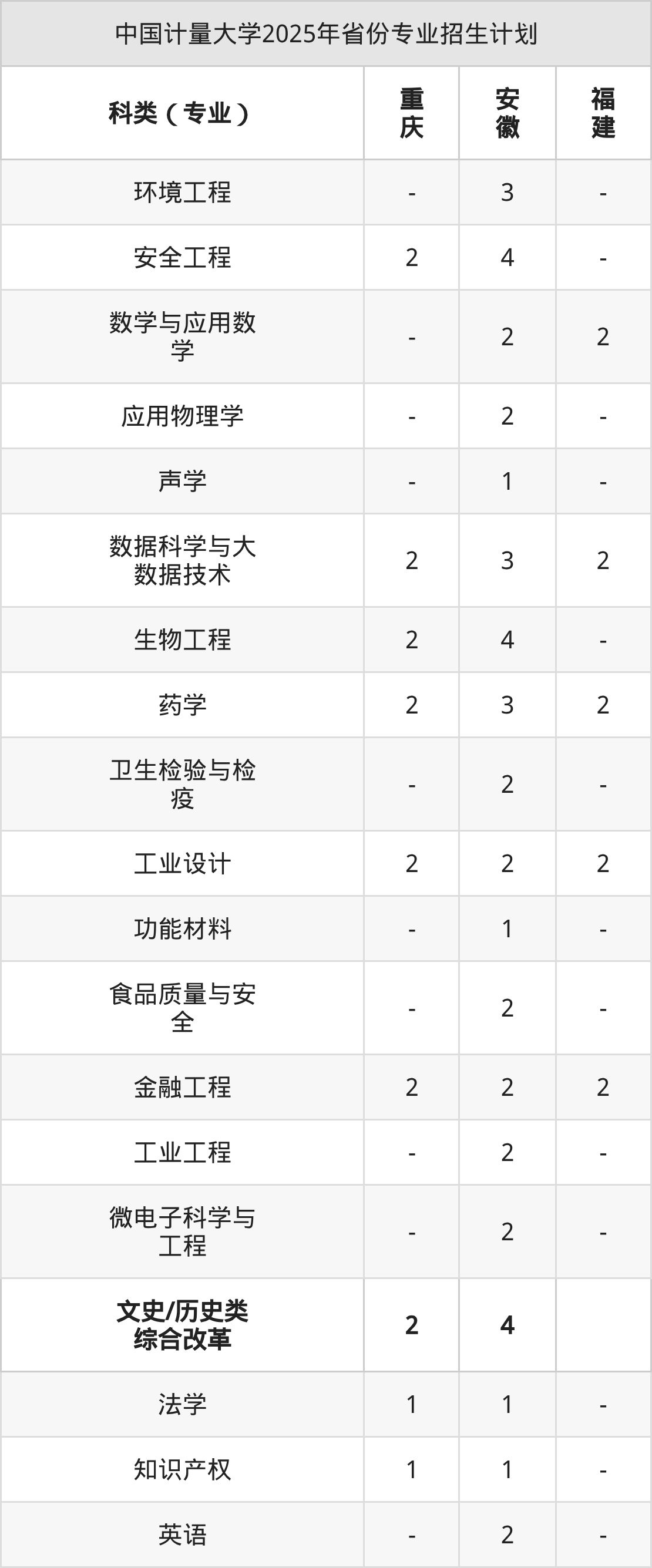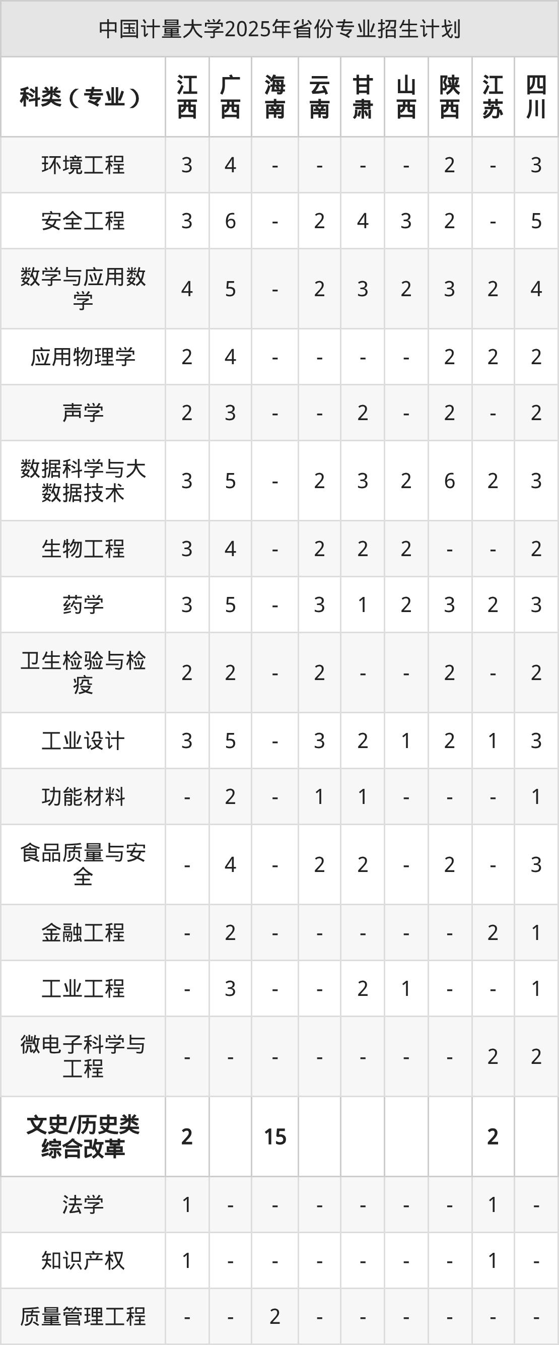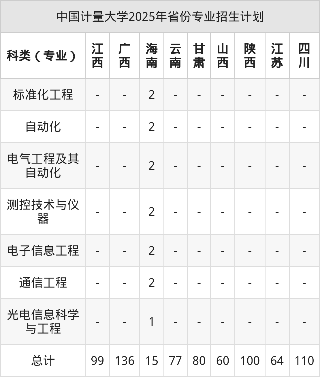 2026年中国计量大学本科招生计划待公布,下面附上2025年数据,暂供参考: