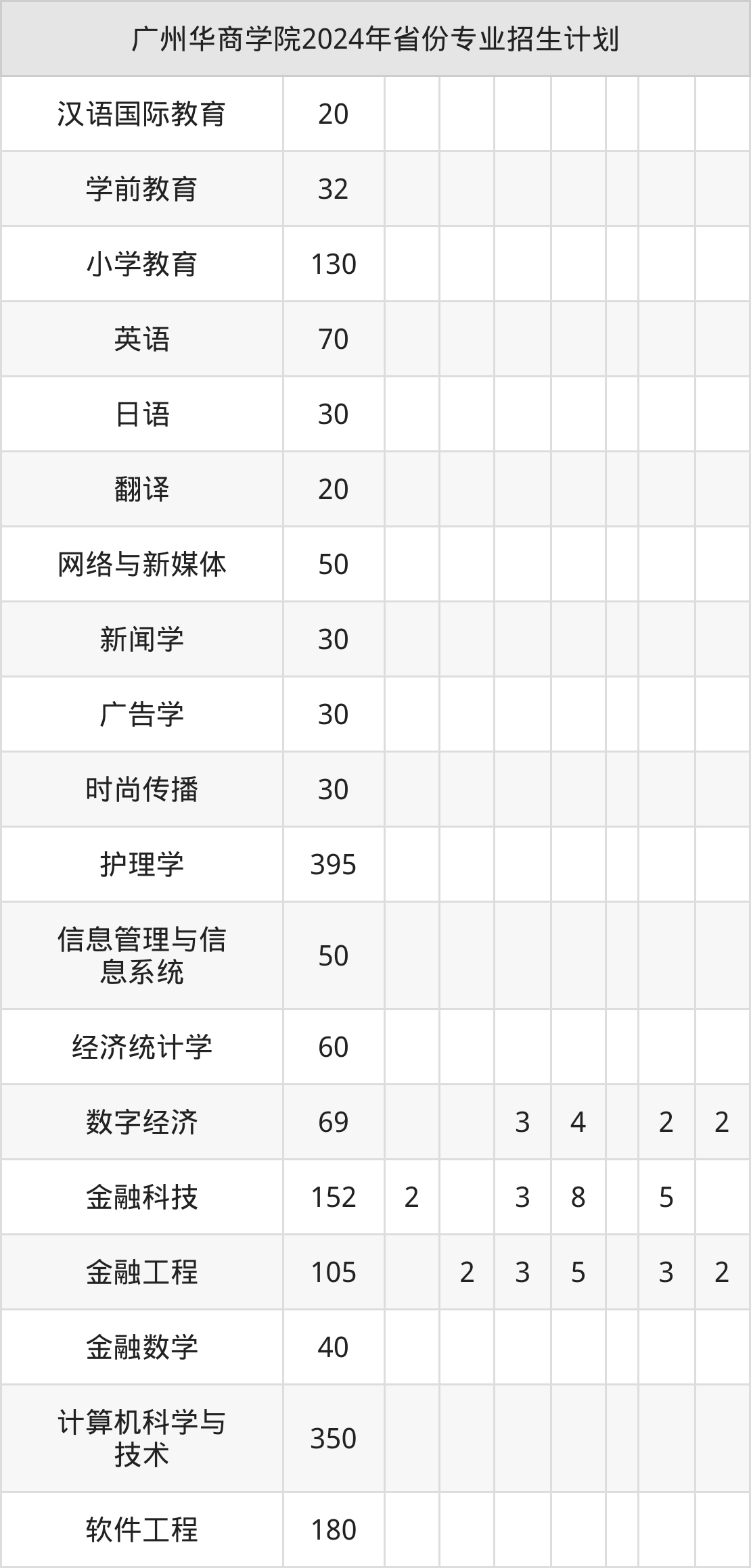 2025年广州华商学院本科招生计划待公布,下面附上2024年数据,暂供参考: