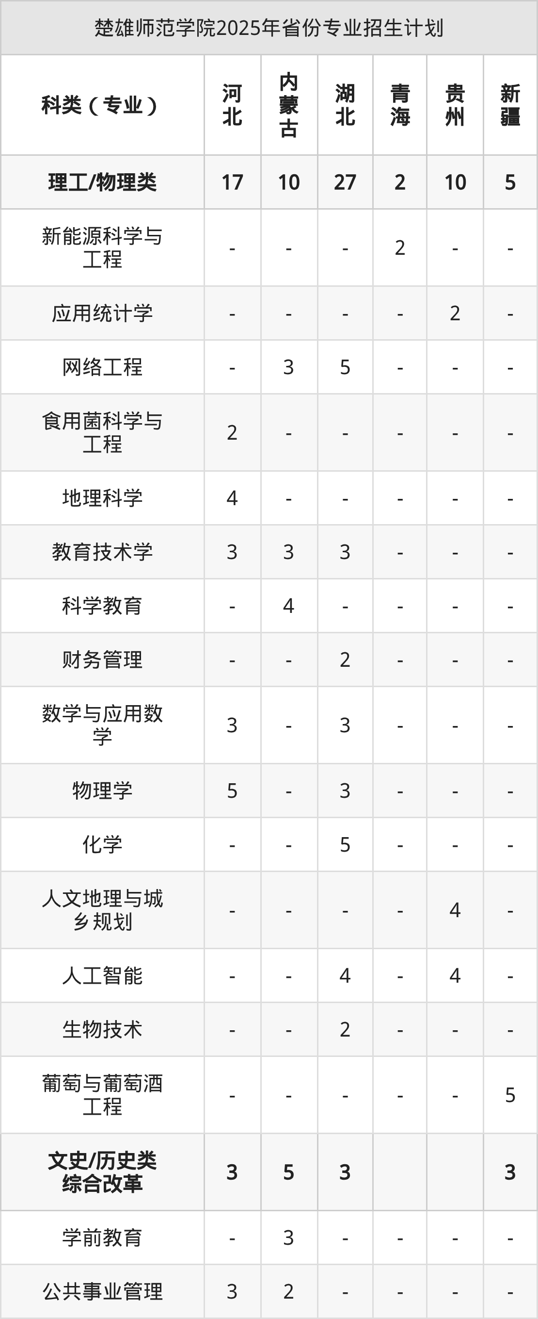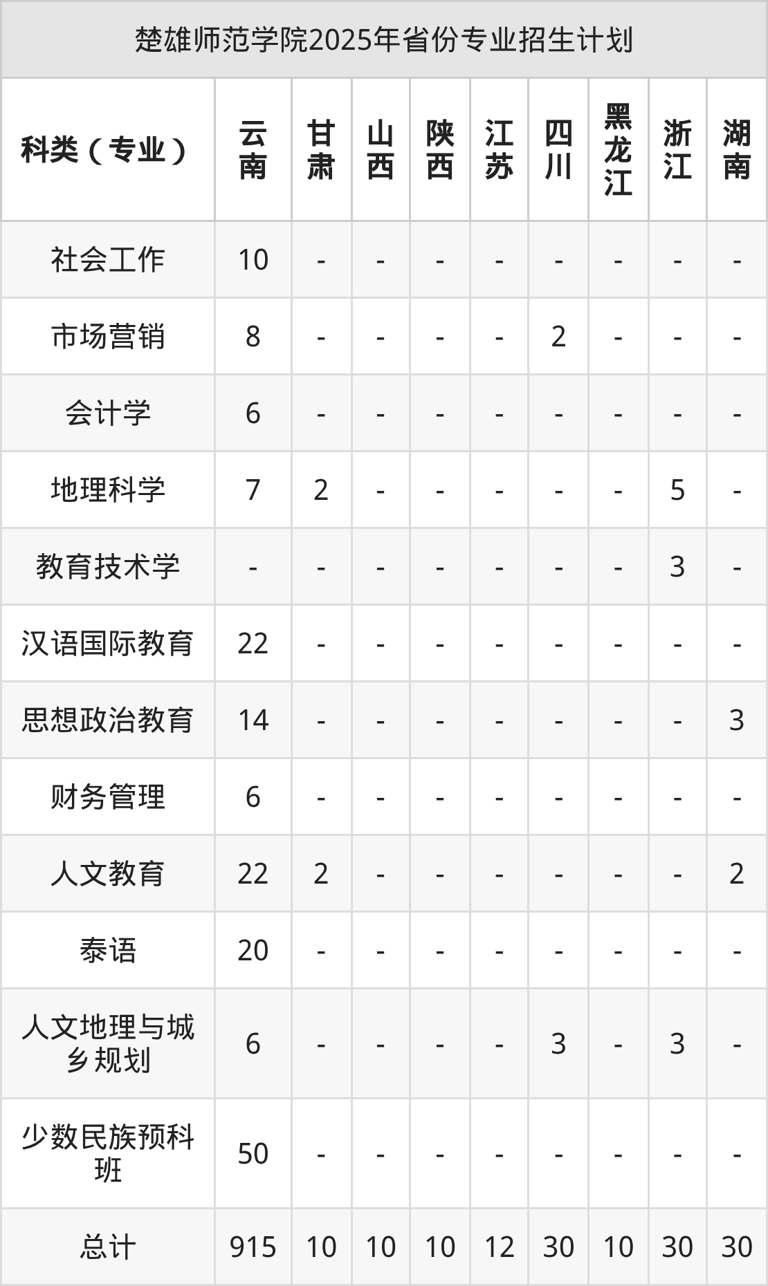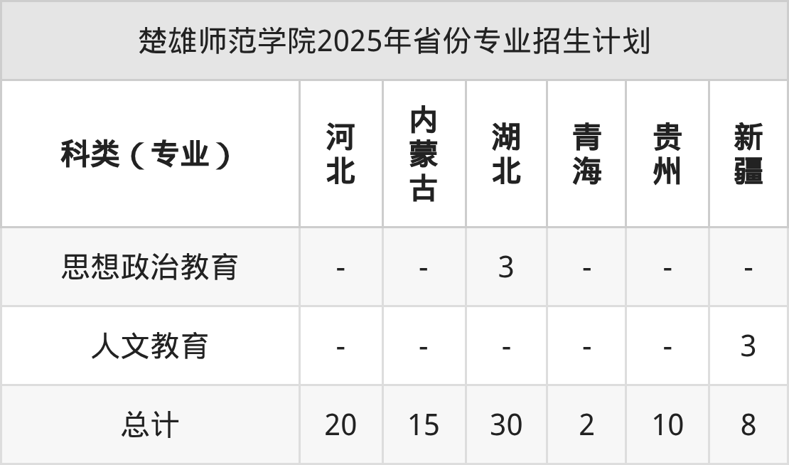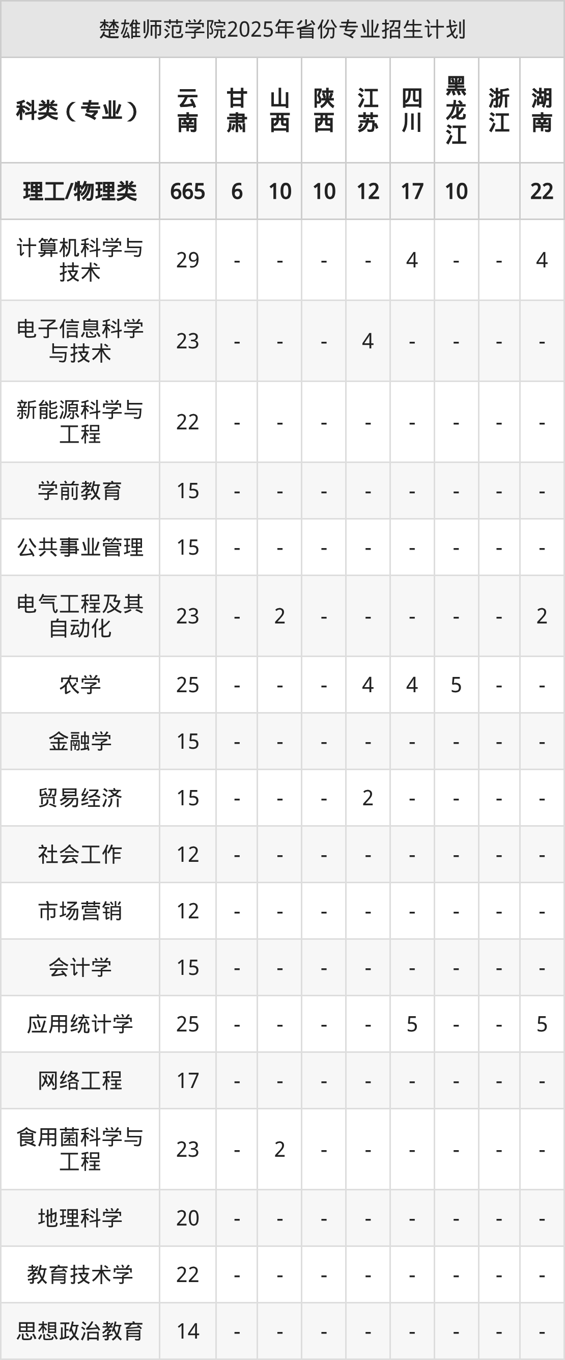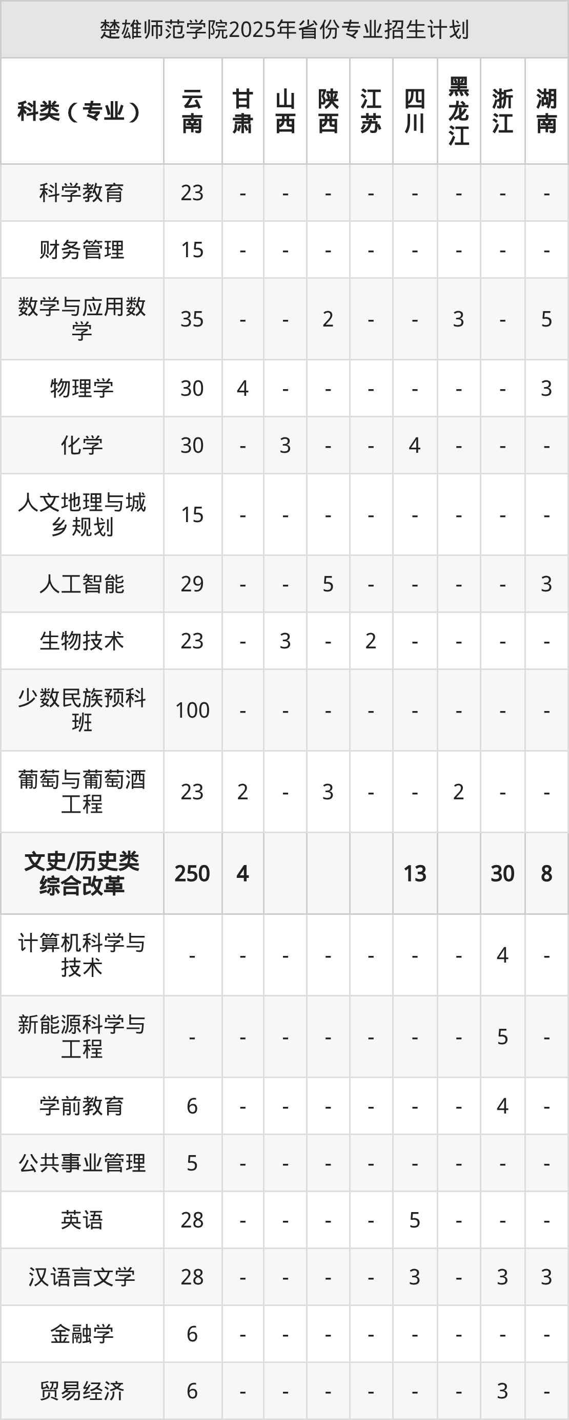 2026年楚雄师范学院本科招生计划待公布,下面附上2025年数据,暂供参考: