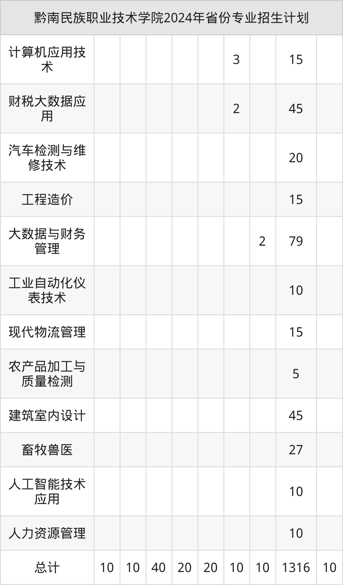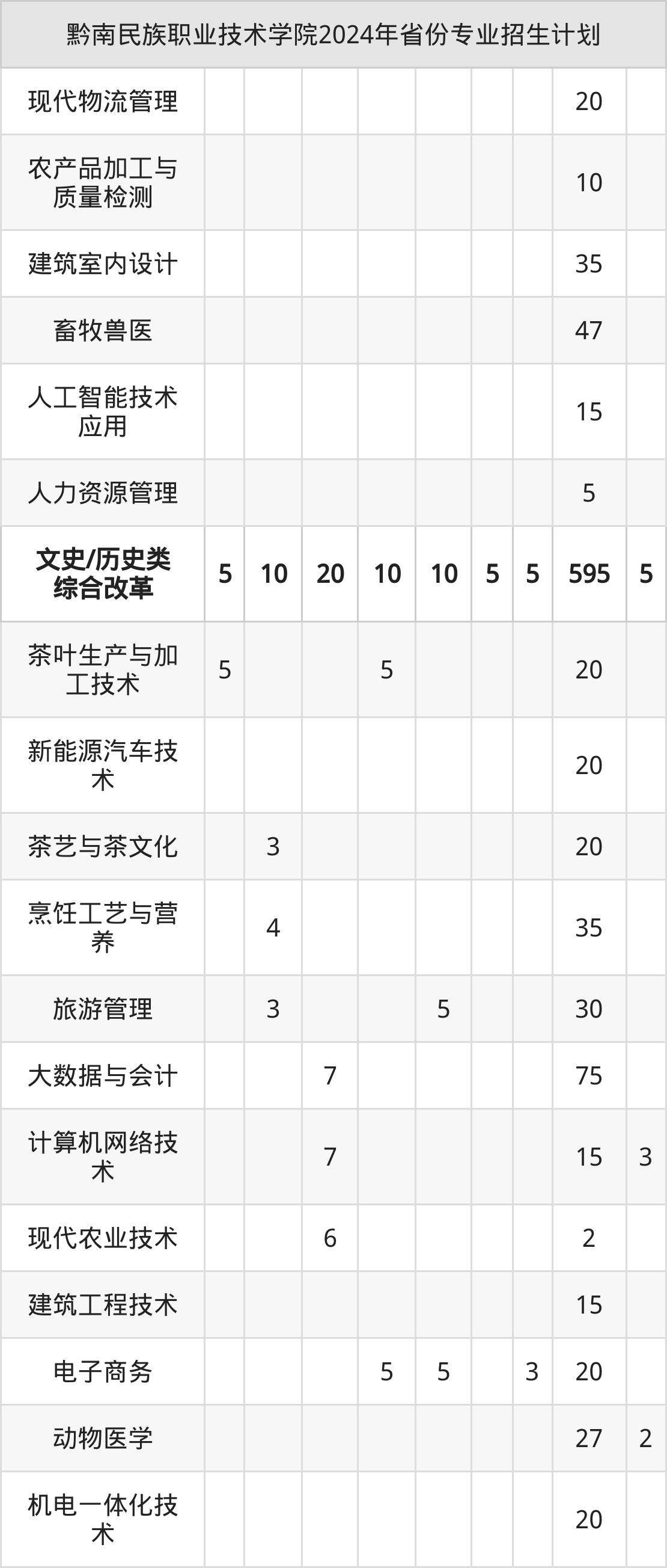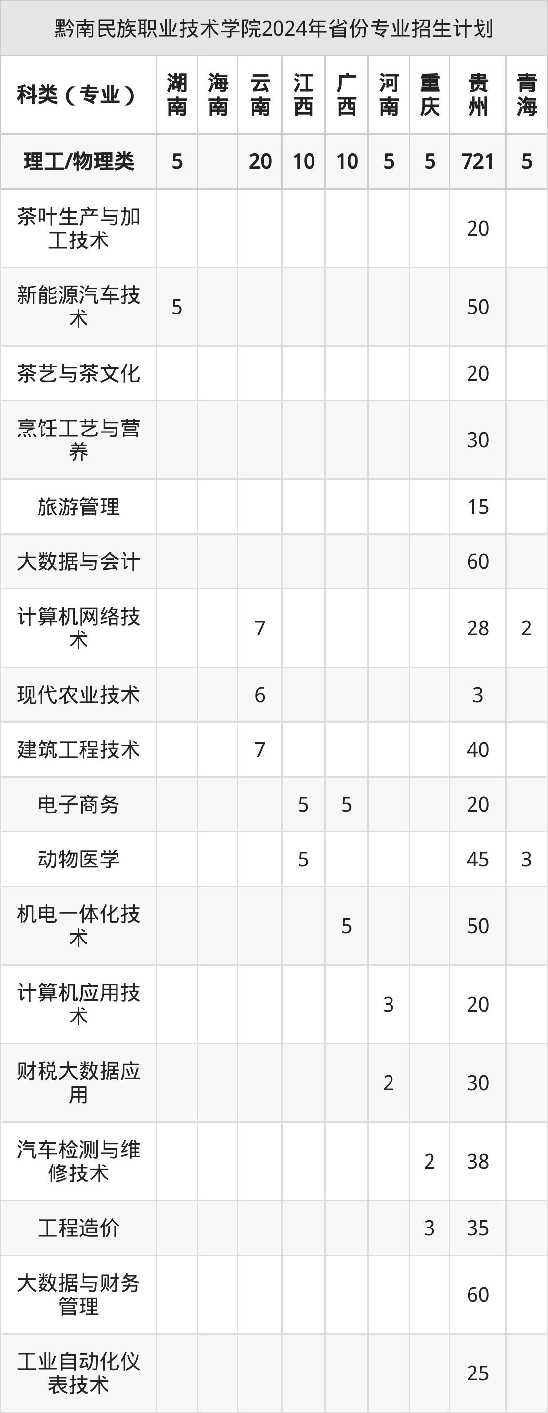 2025年黔南民族职业技术学院专科招生计划待公布,下面附上2024年数据,暂供参考: