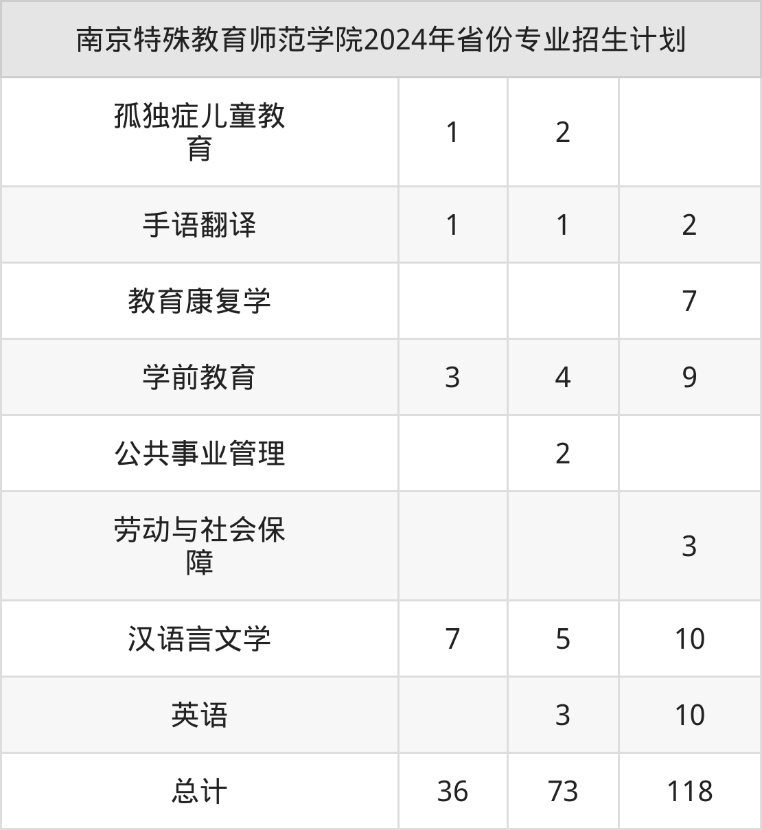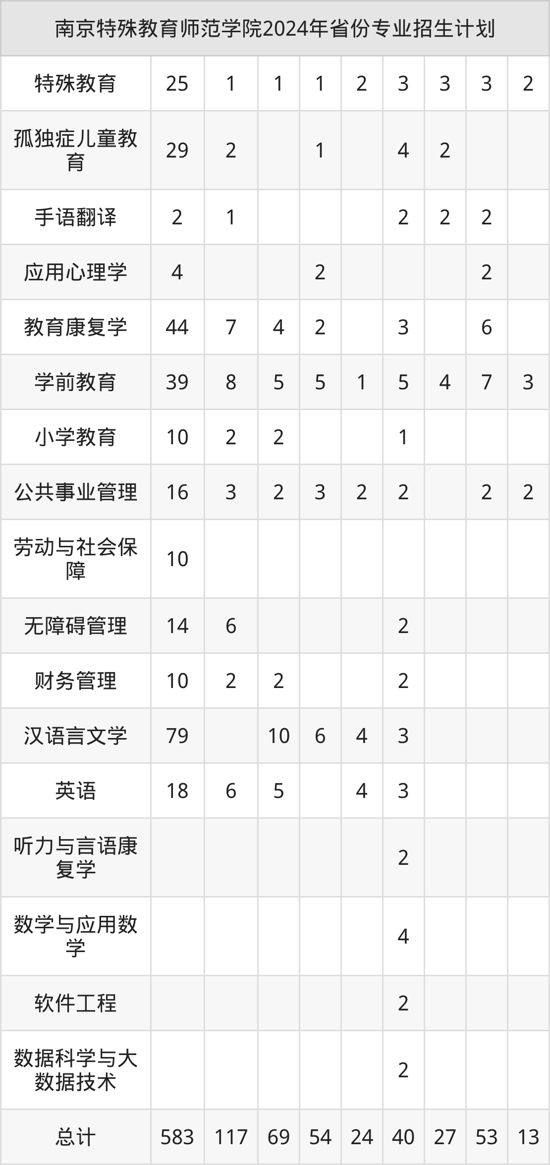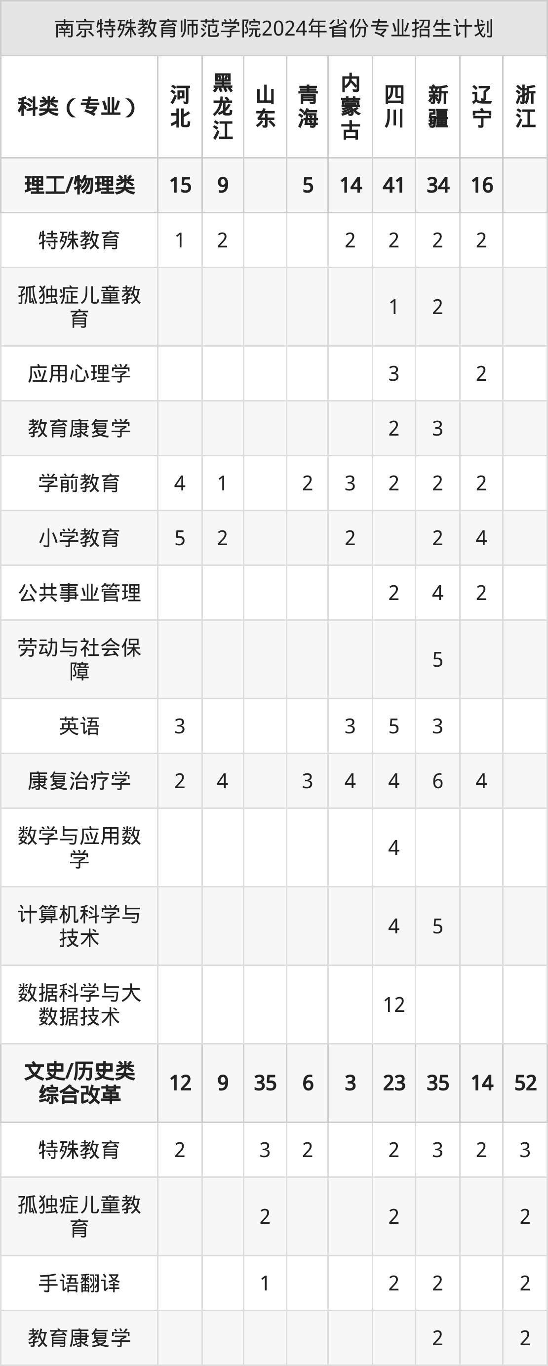 2025年南京特殊教育师范学院本科招生计划待公布,下面附上2024年数据,暂供参考: