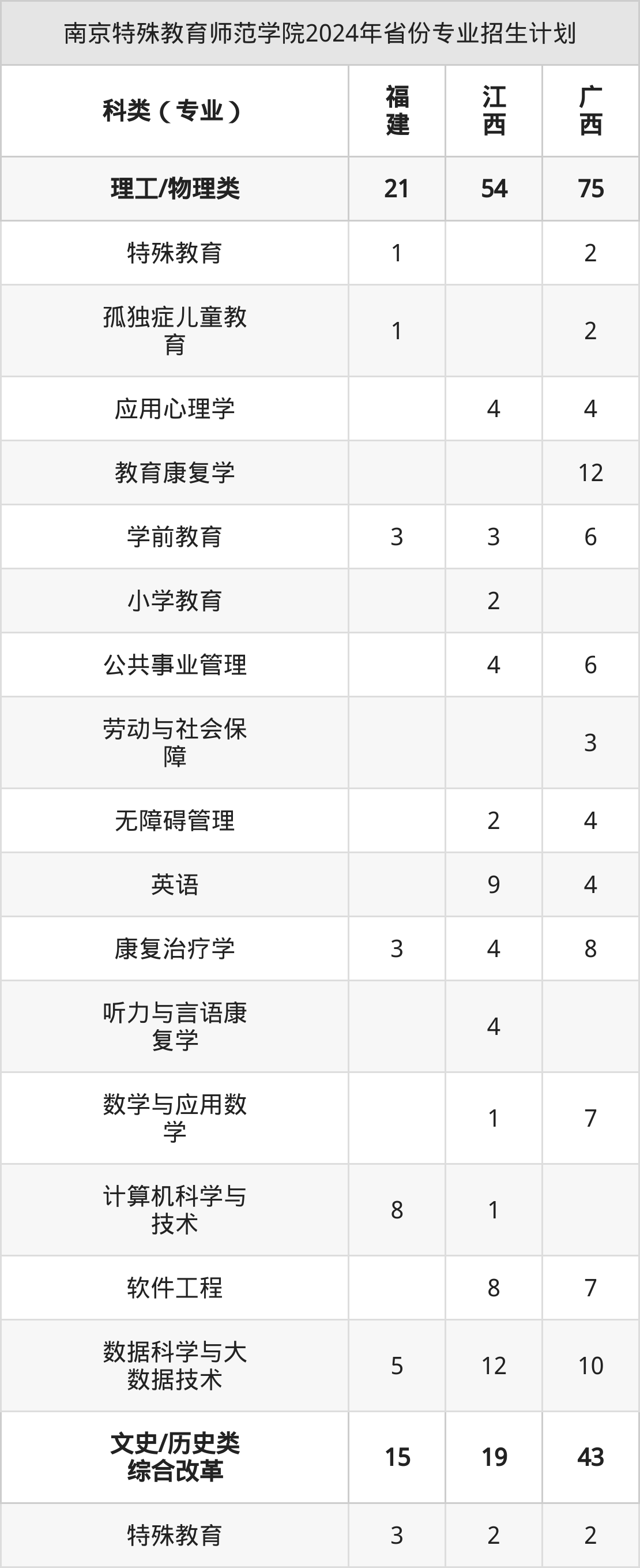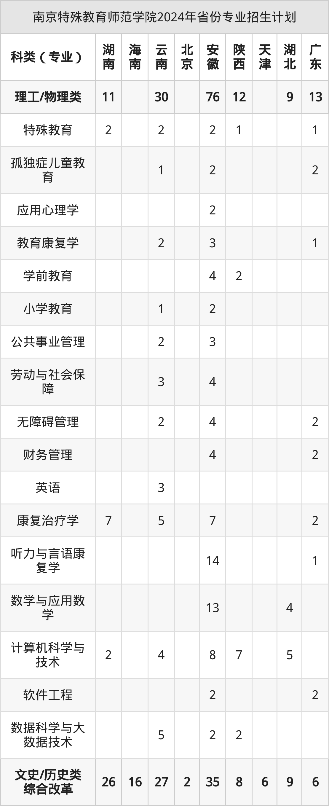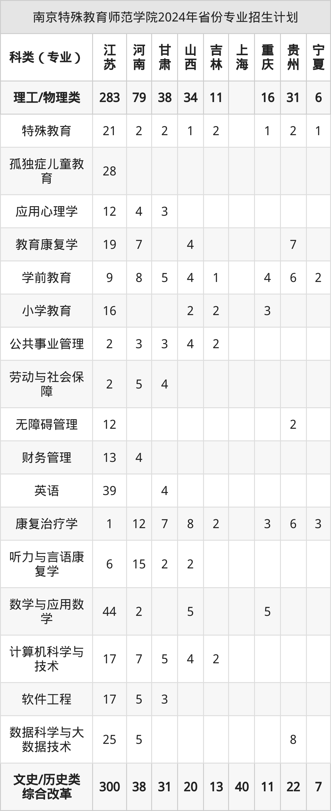 2025年南京特殊教育师范学院本科招生计划待公布,下面附上2024年数据,暂供参考: