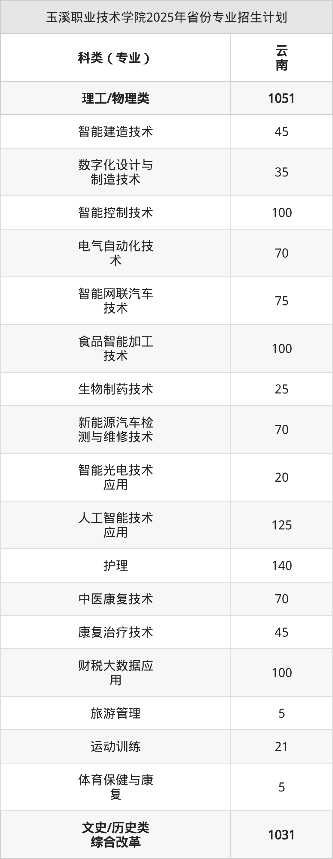 2026年玉溪职业技术学院专科招生计划待公布,下面附上2025年数据,暂供参考: