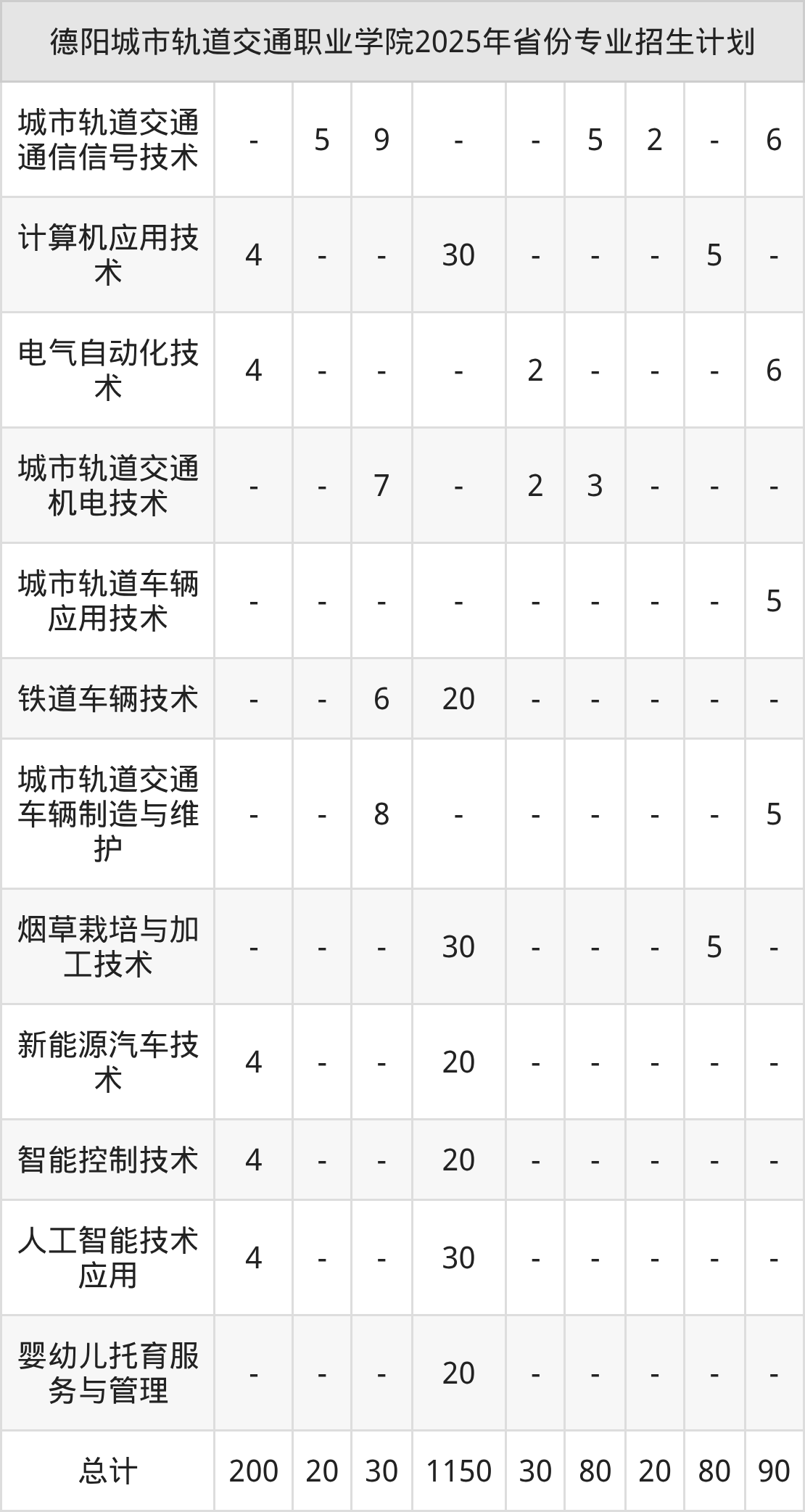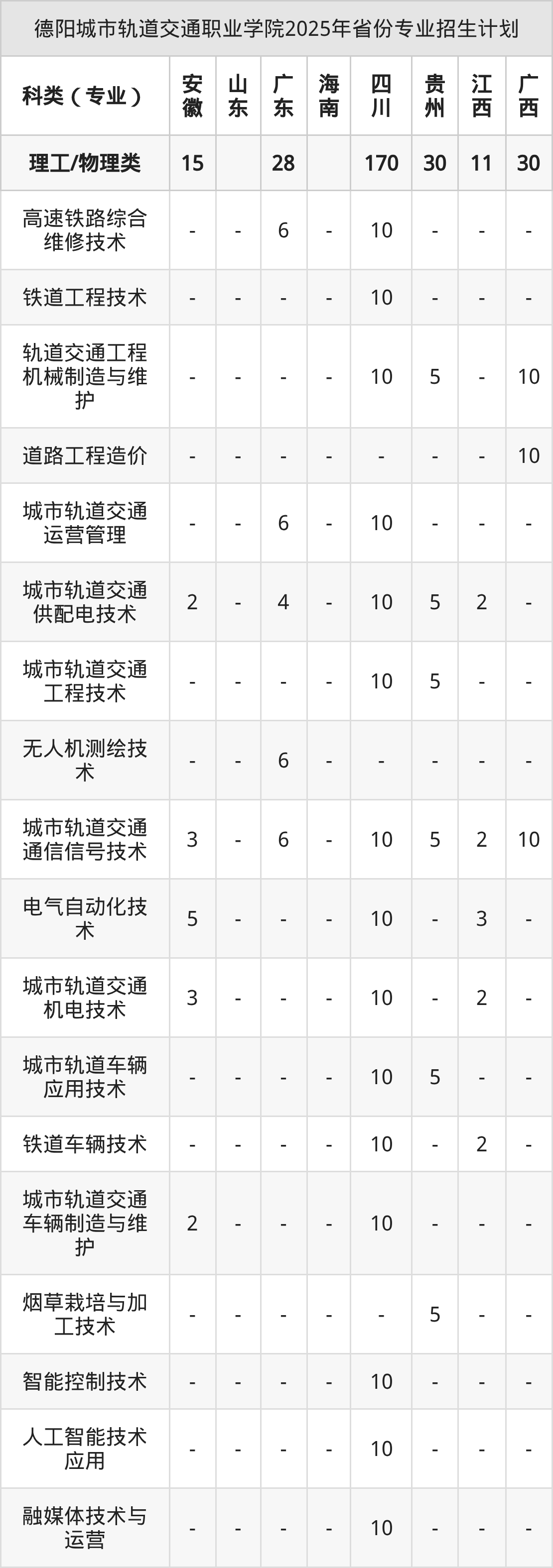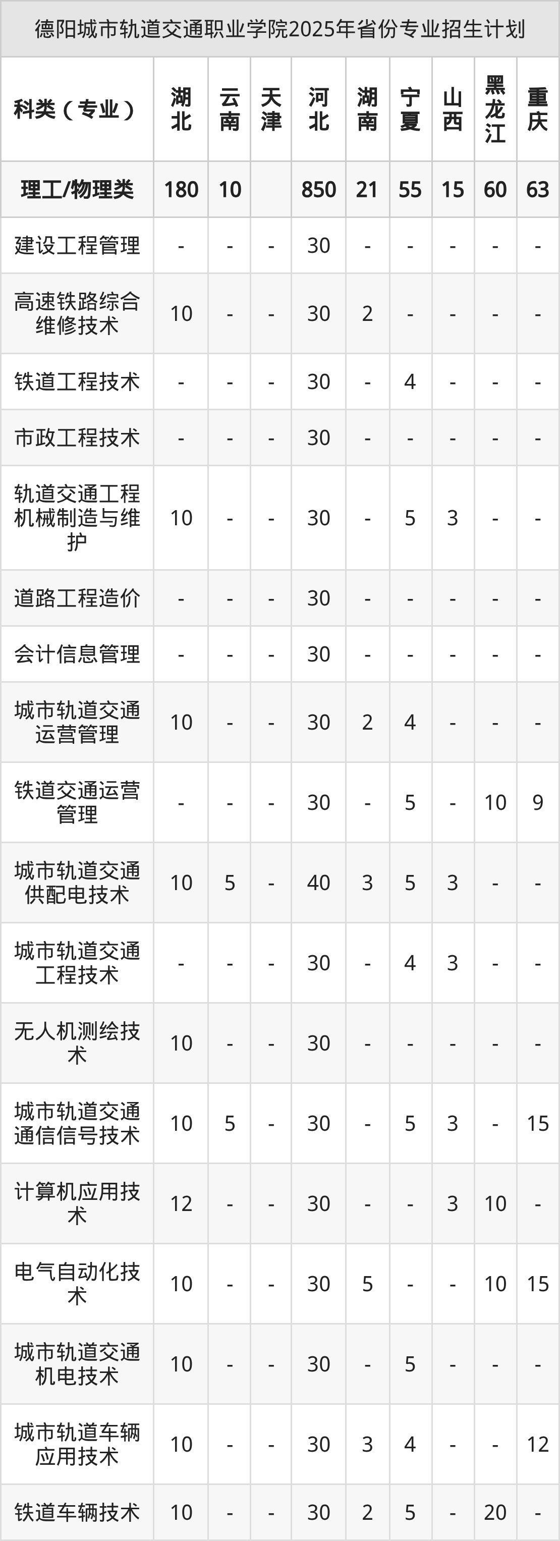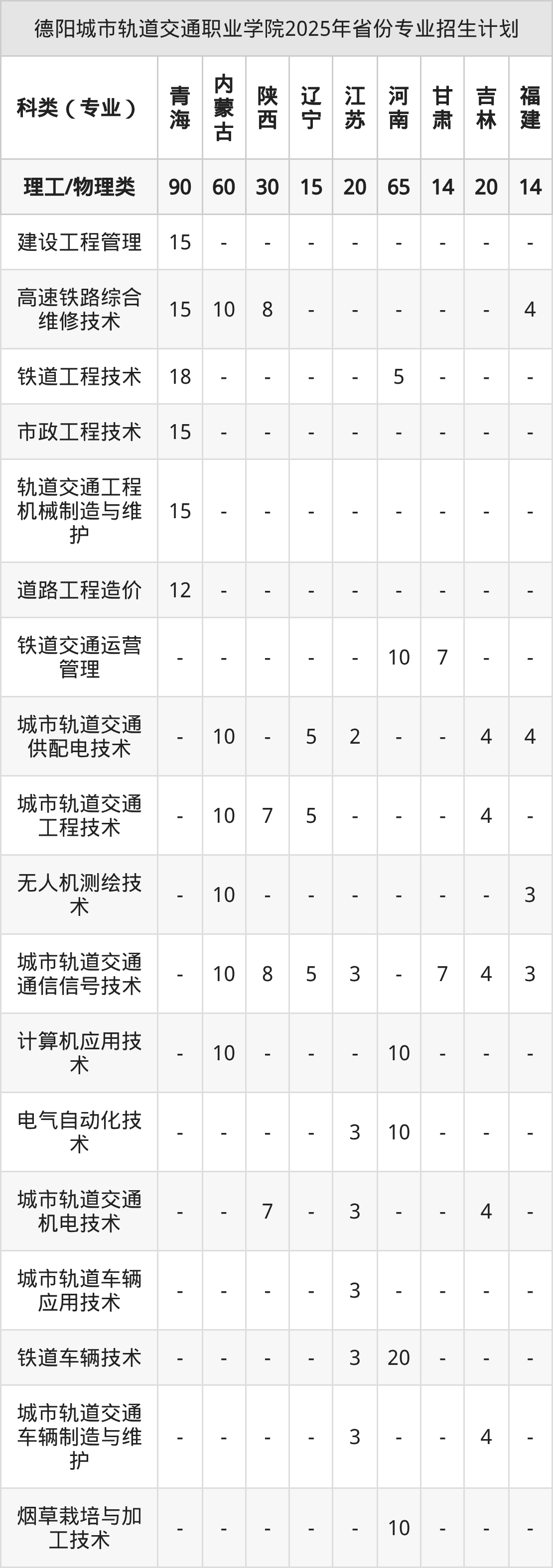 2026年德阳城市轨道交通职业学院专科招生计划待公布,下面附上2025年数据,暂供参考: