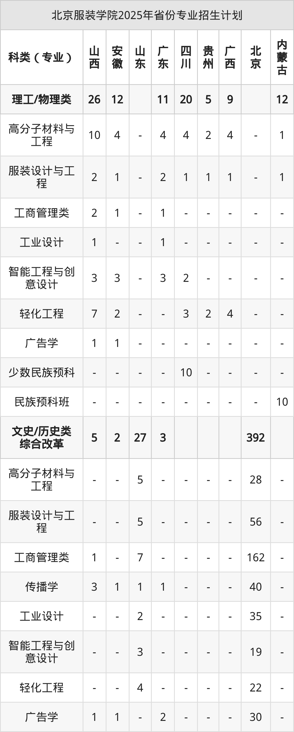 2026年北京服装学院本科招生计划待公布,下面附上2025年数据,暂供参考: