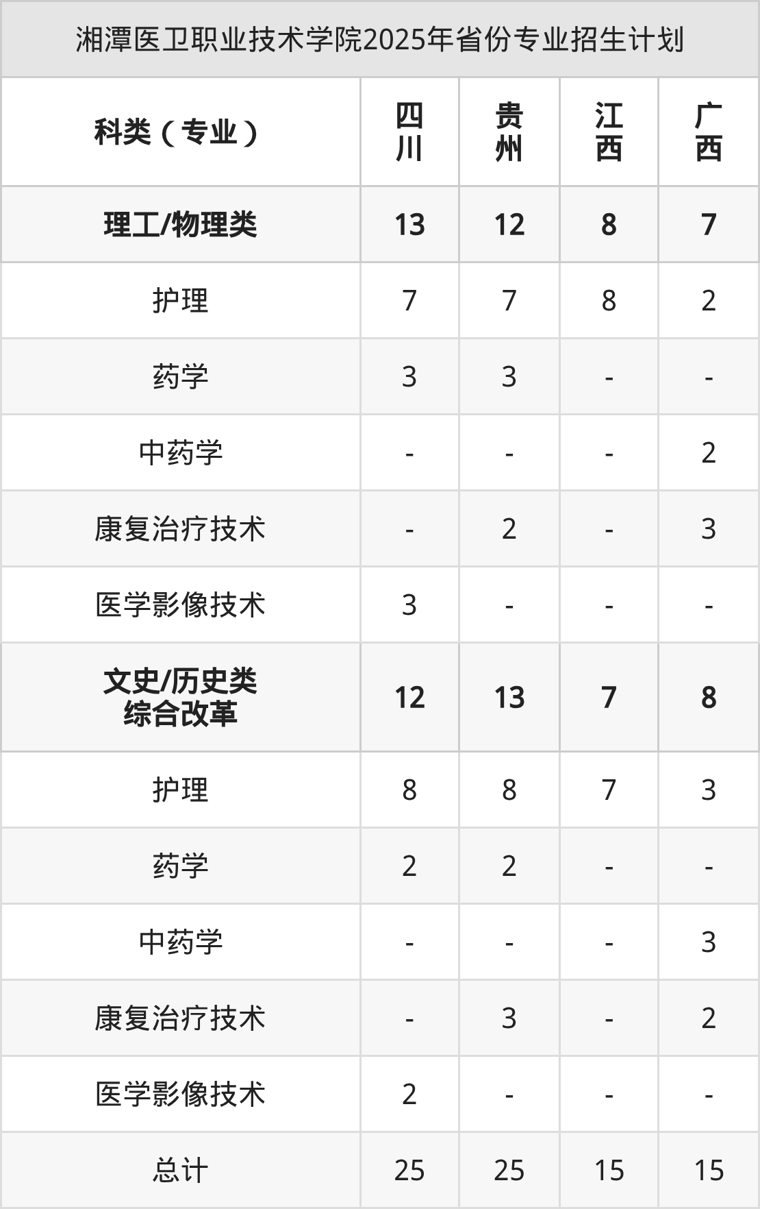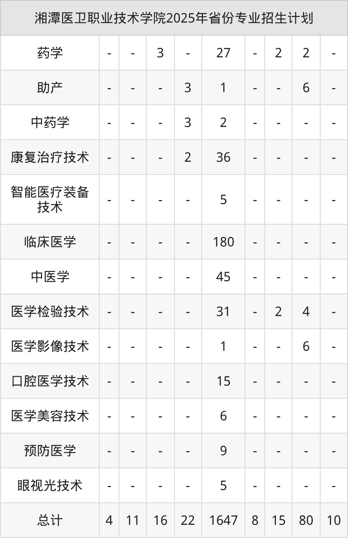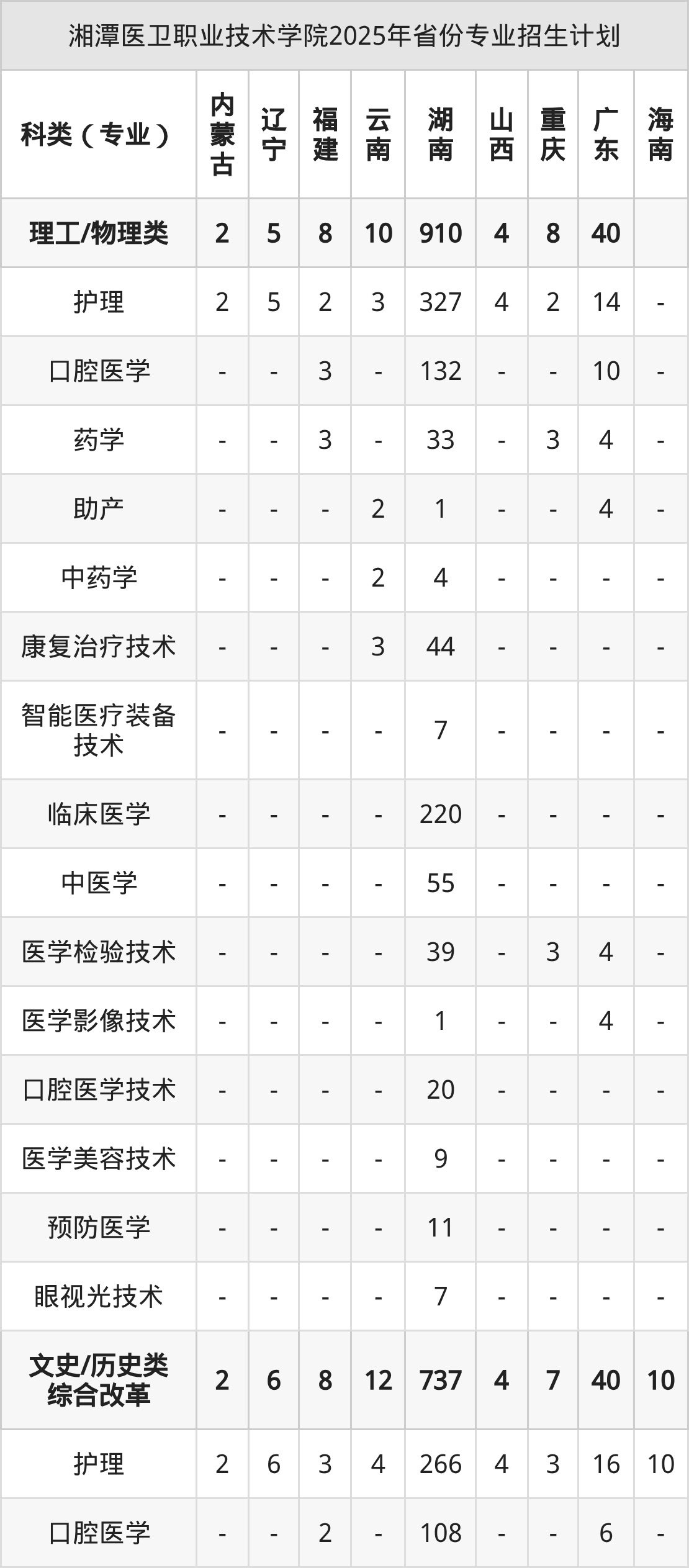 2026年湘潭医卫职业技术学院专科招生计划待公布,下面附上2025年数据,暂供参考:
