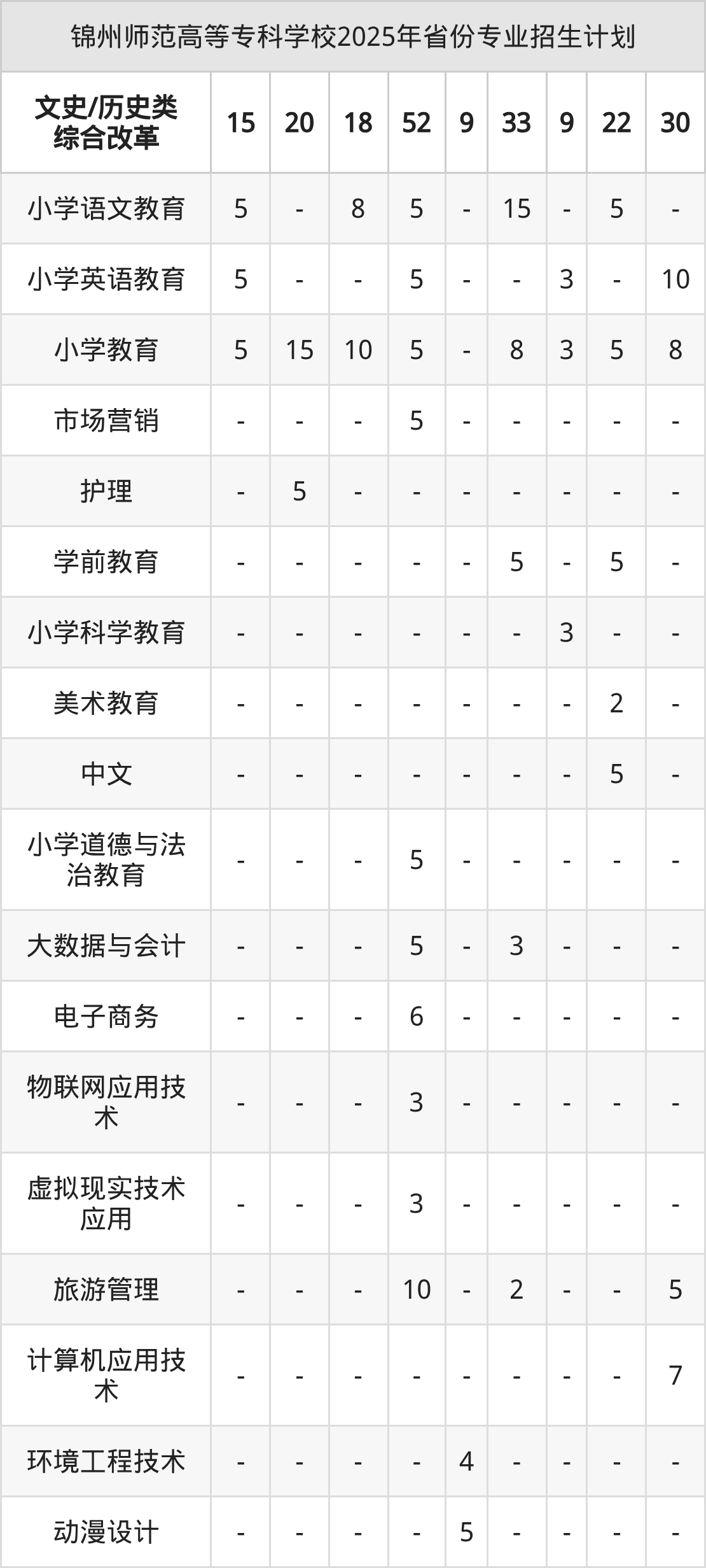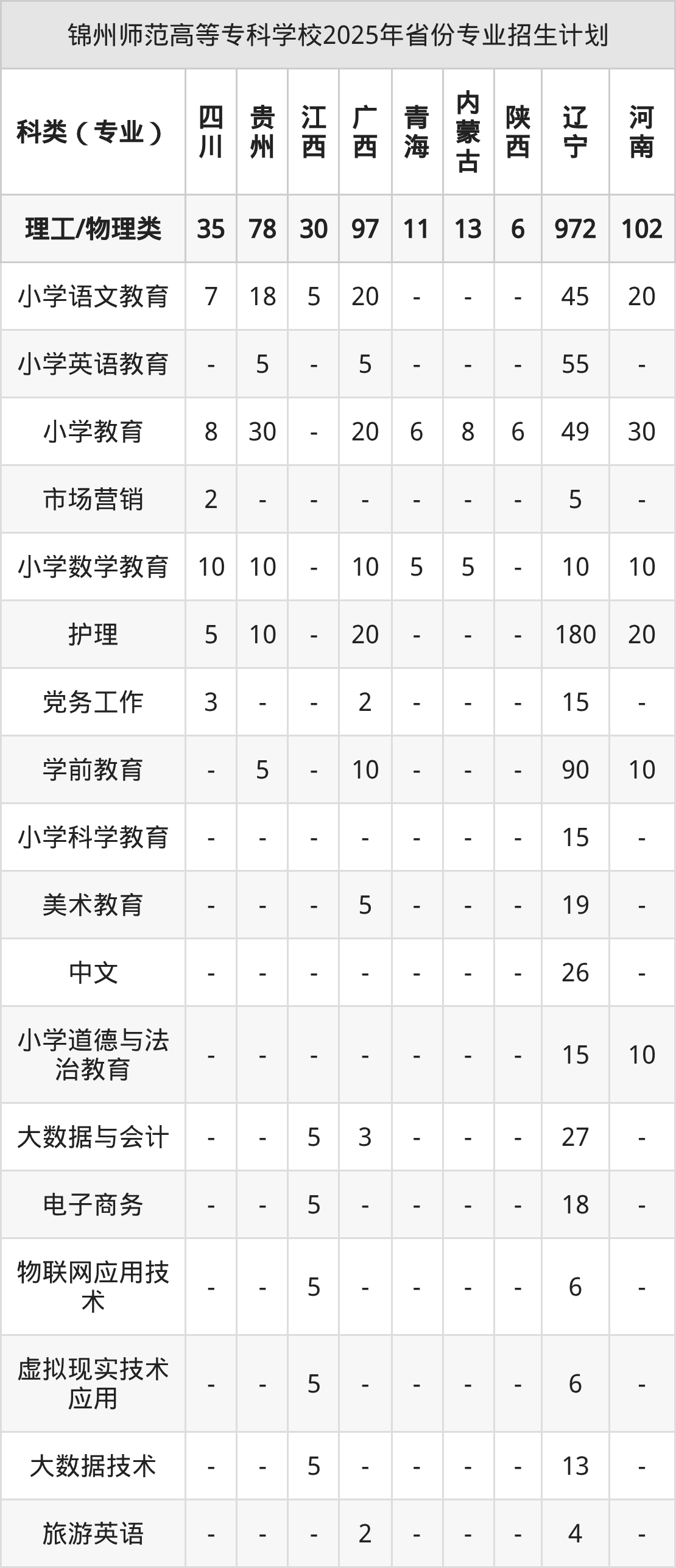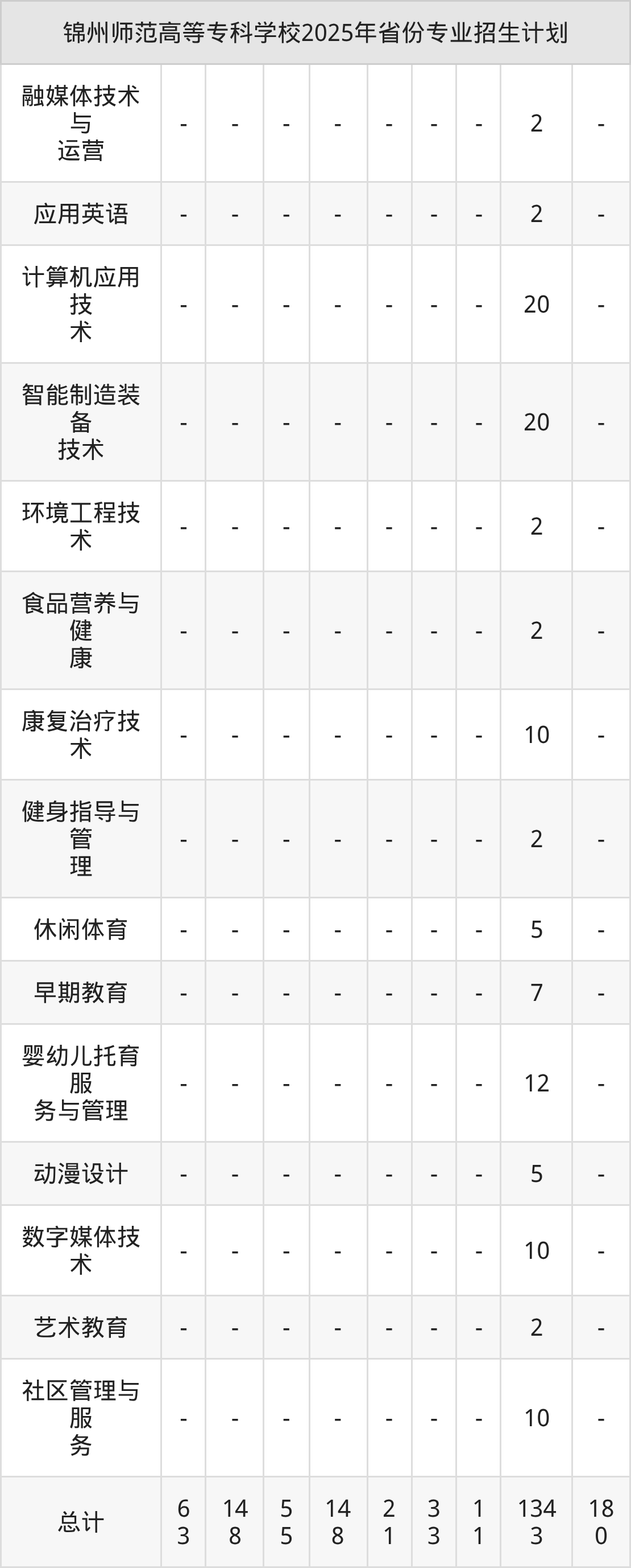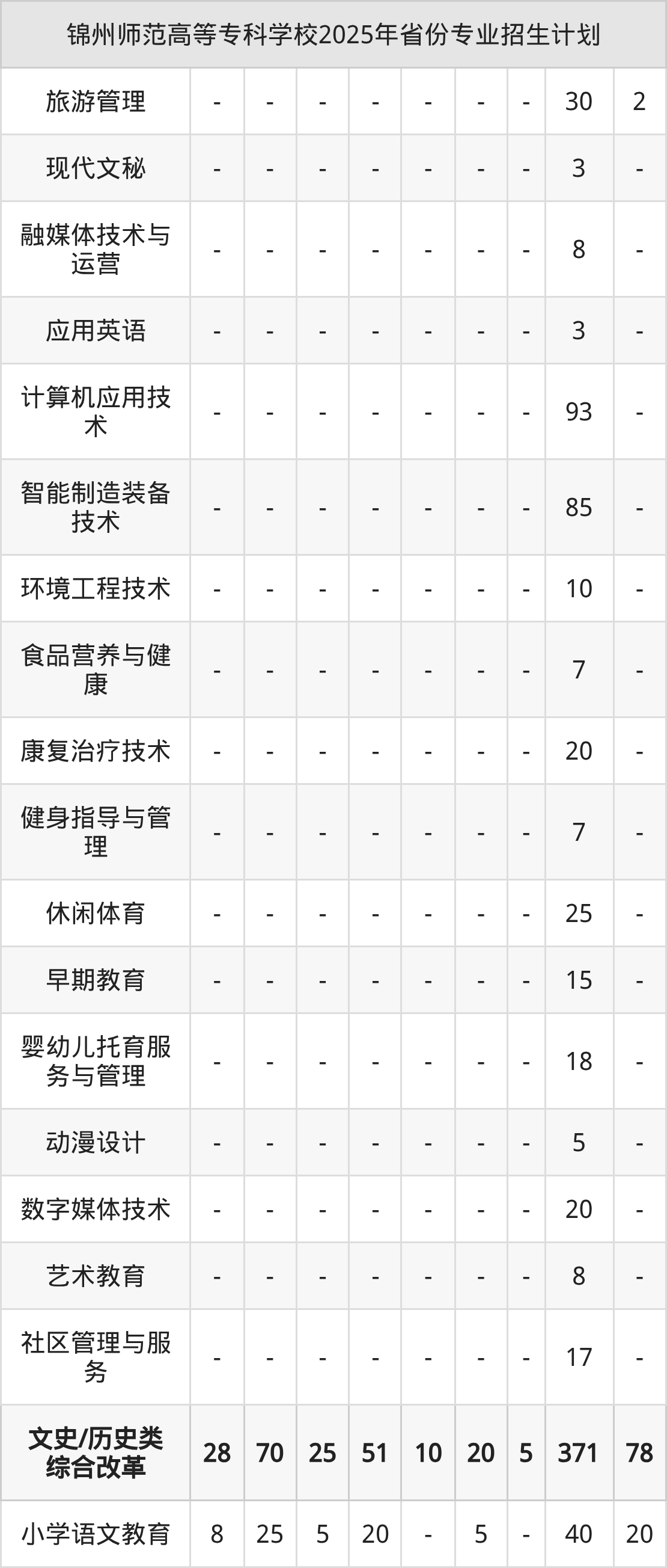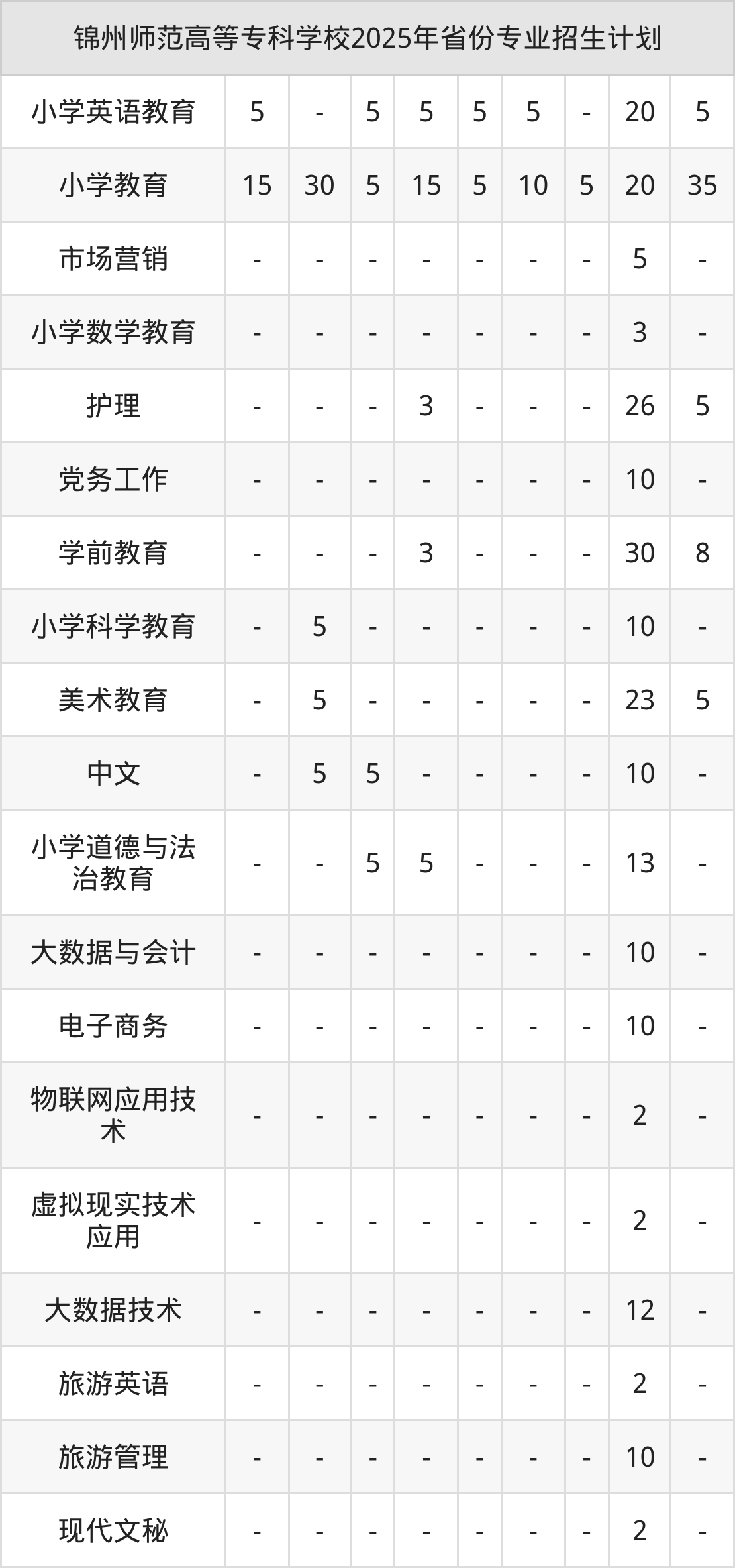 2026年锦州师范高等专科学校专科招生计划待公布,下面附上2025年数据,暂供参考: