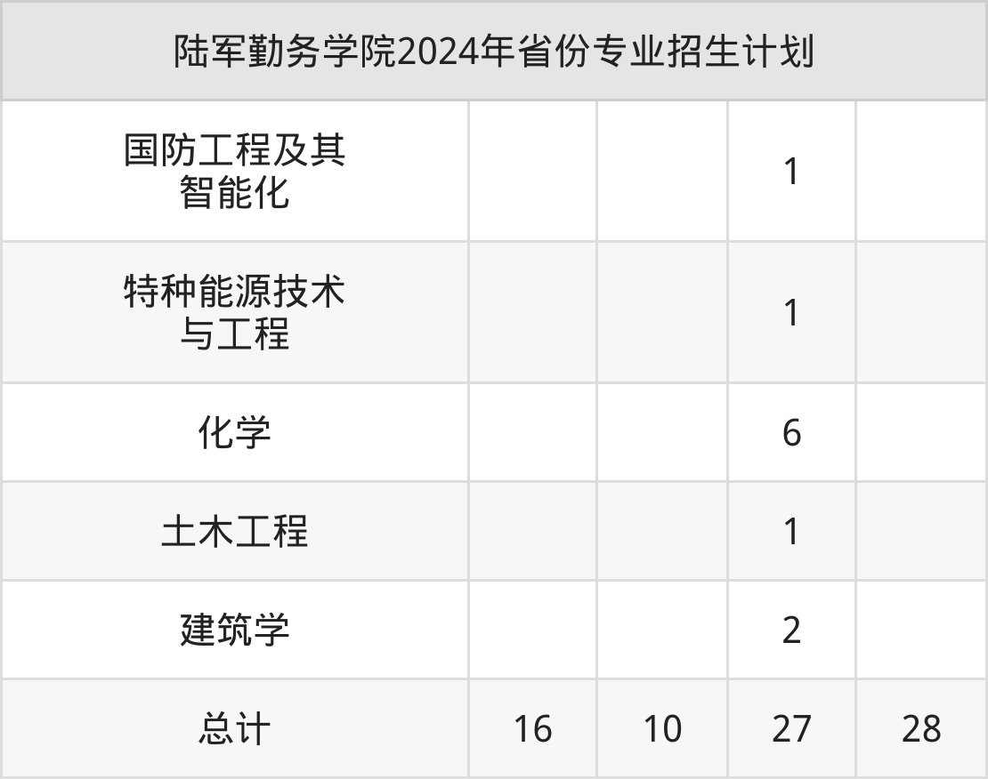 2025年陆军勤务学院本科招生计划待公布,下面附上2024年数据,暂供参考: