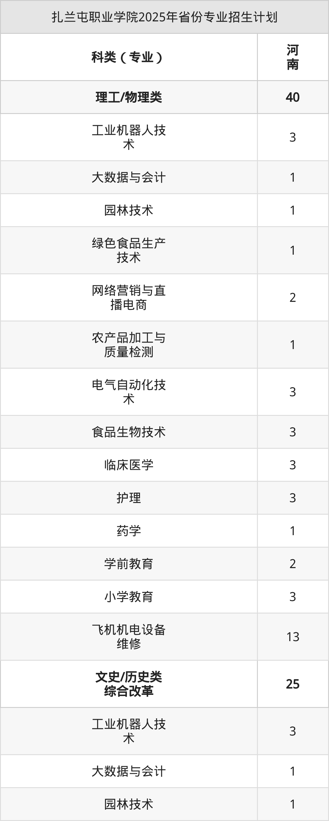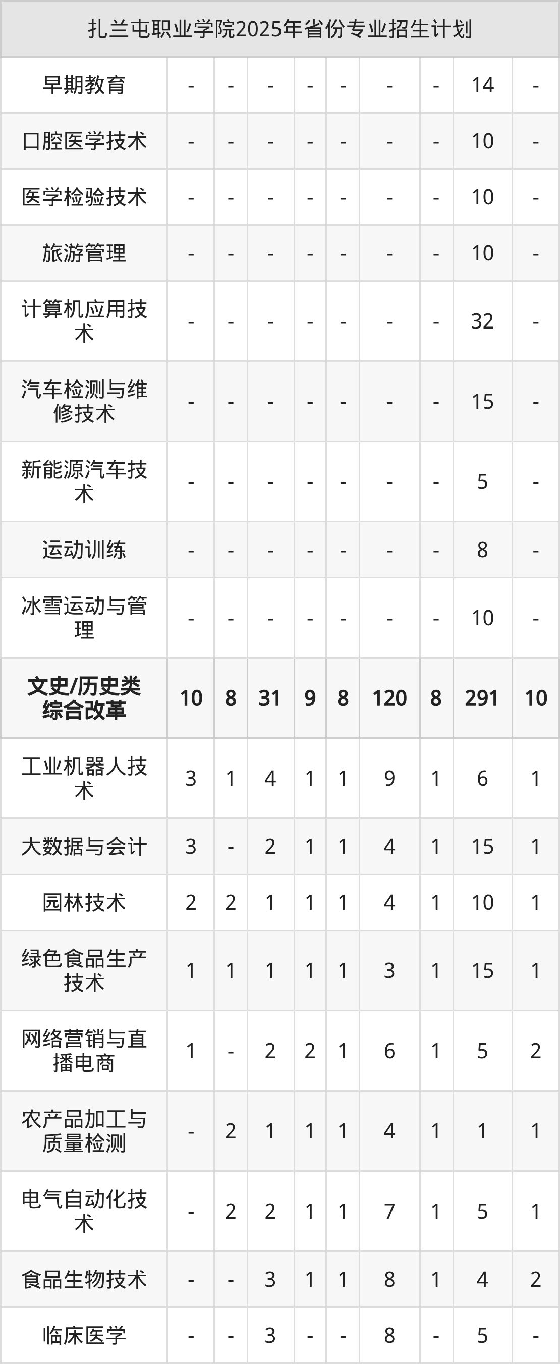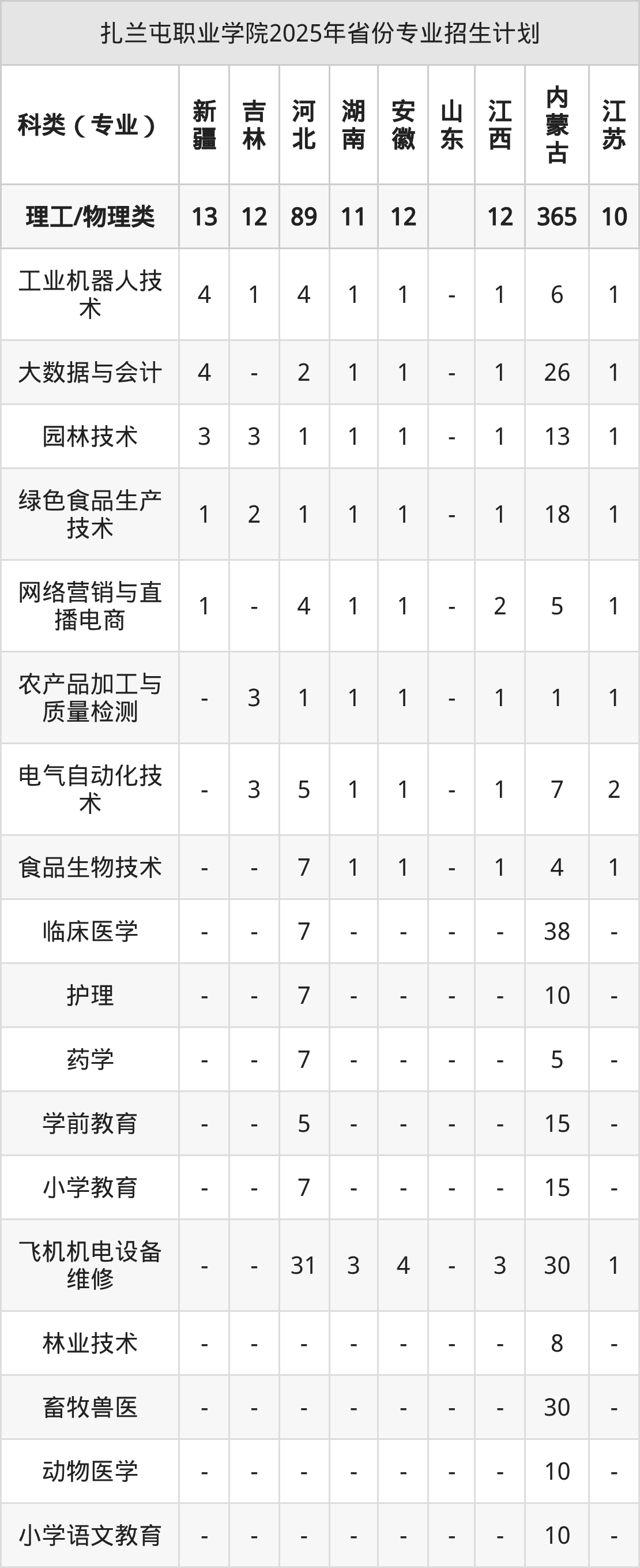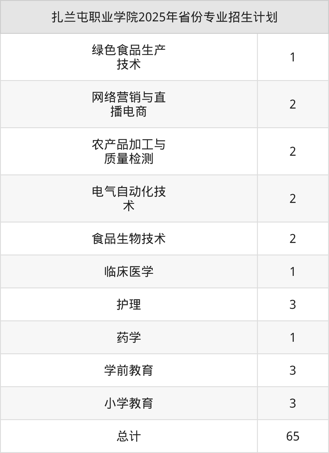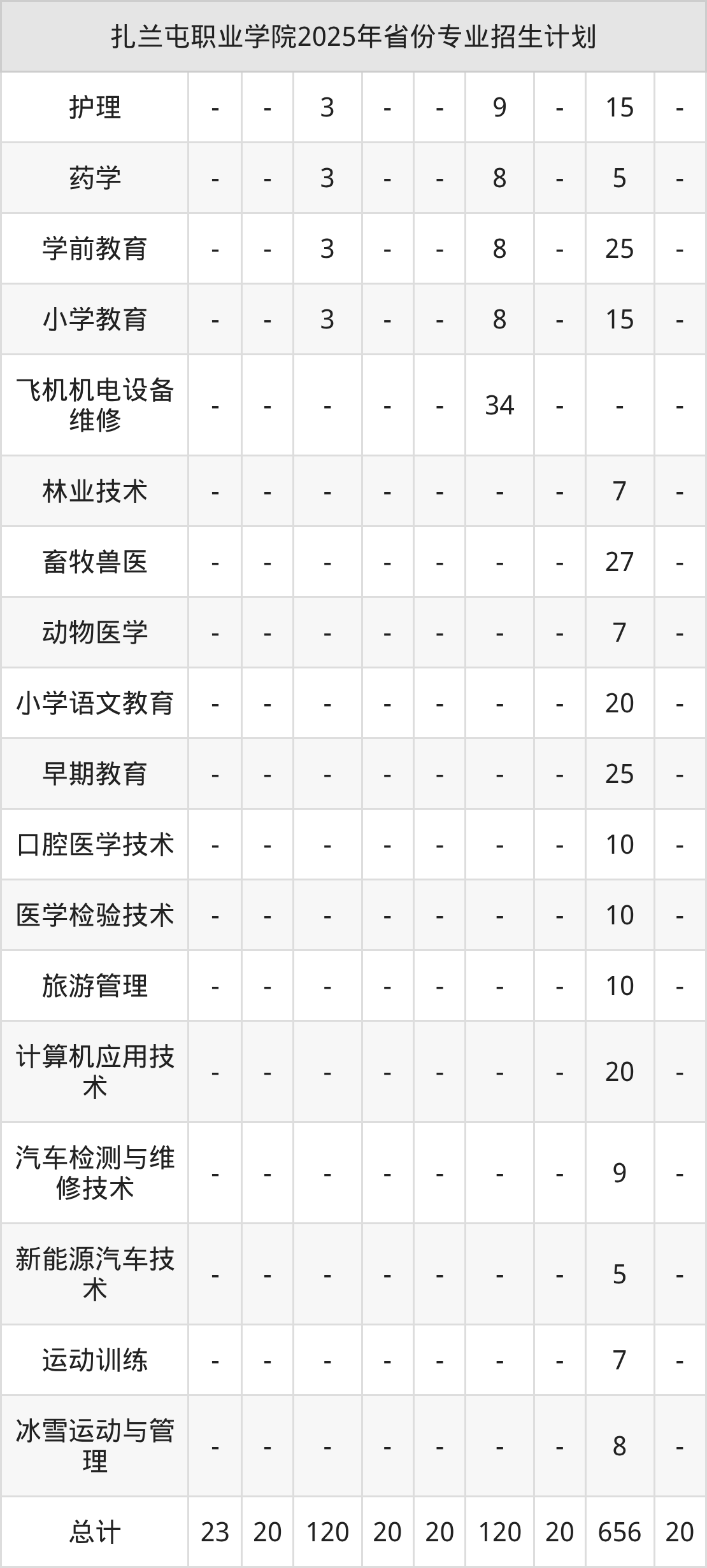 2026年扎兰屯职业学院专科招生计划待公布,下面附上2025年数据,暂供参考: