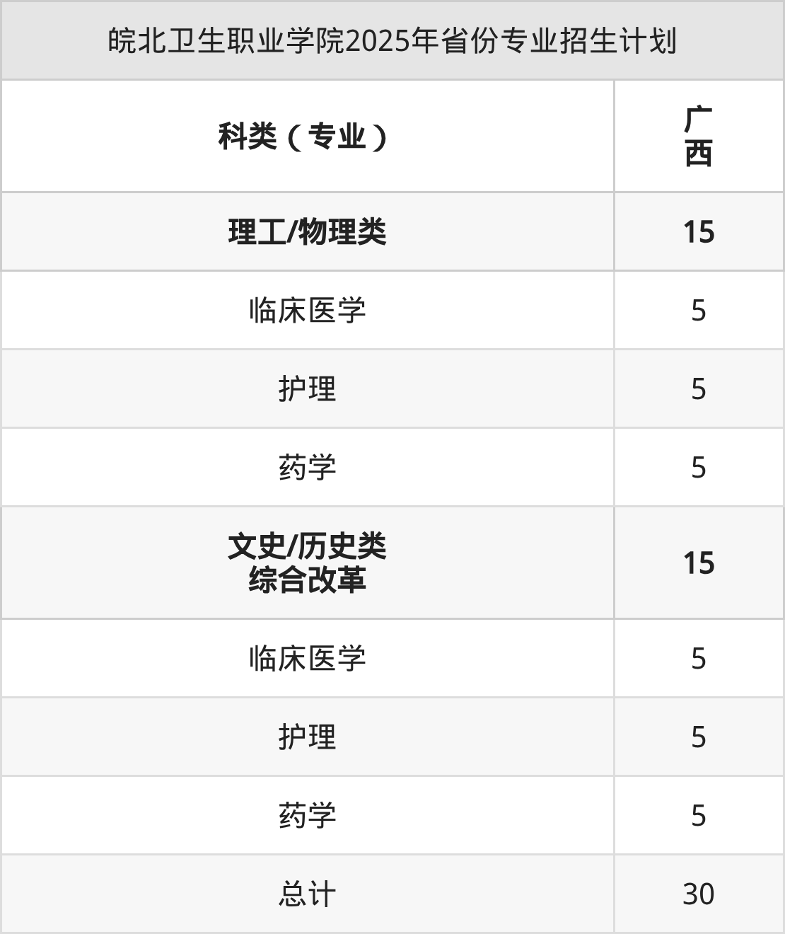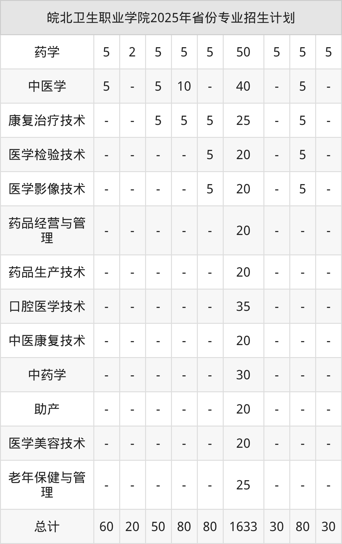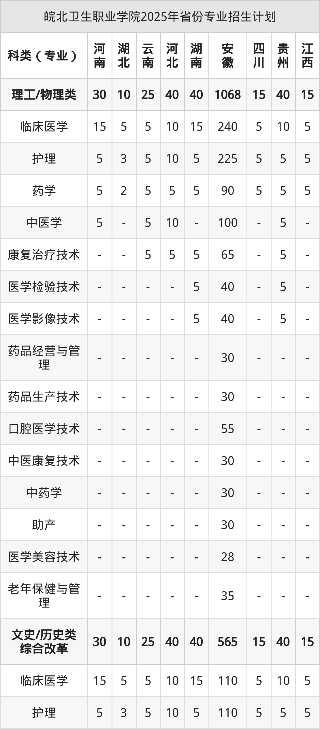 2026年皖北卫生职业学院专科招生计划待公布,下面附上2025年数据,暂供参考: