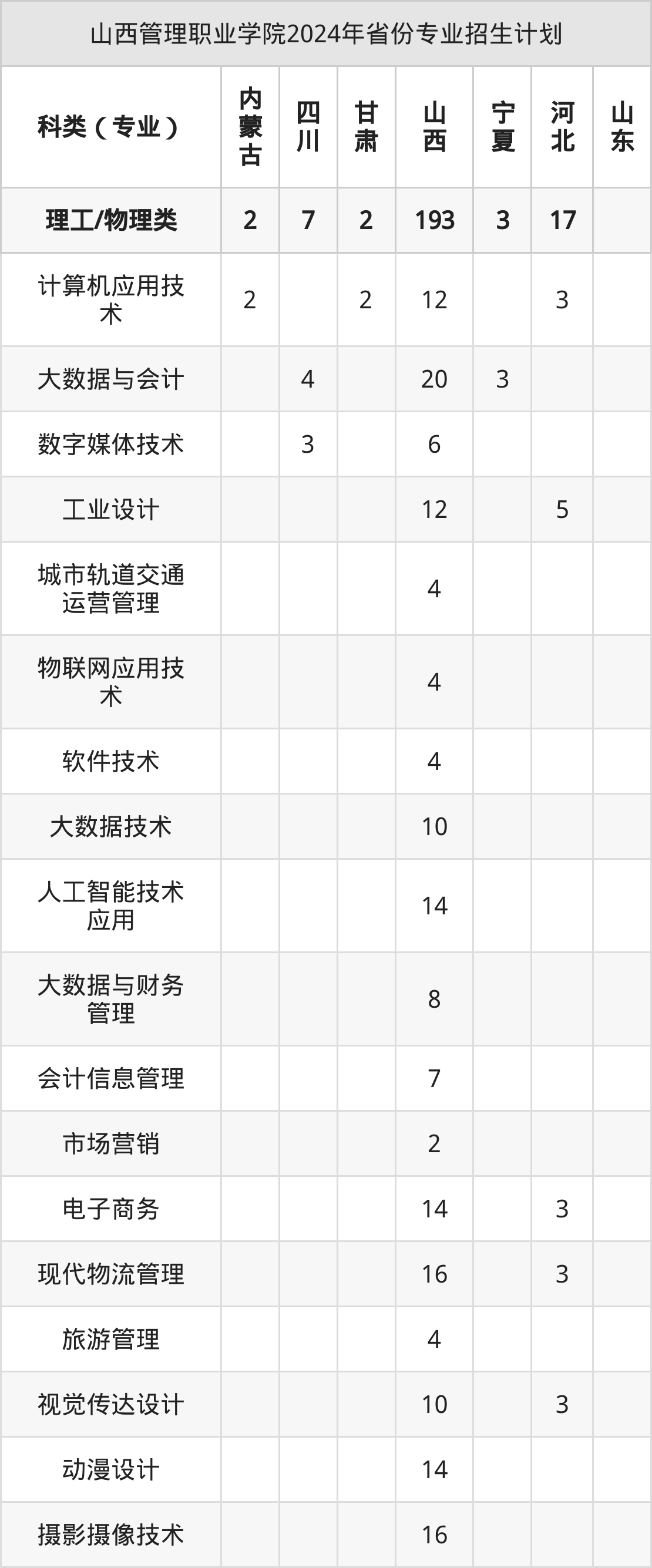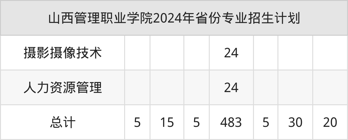 2025年山西管理职业学院专科招生计划待公布,下面附上2024年数据,暂供参考: