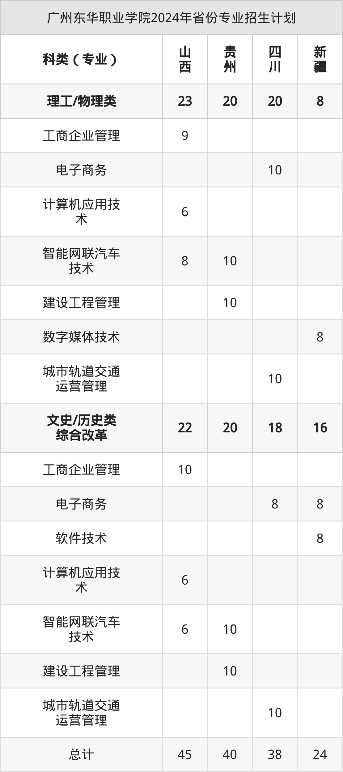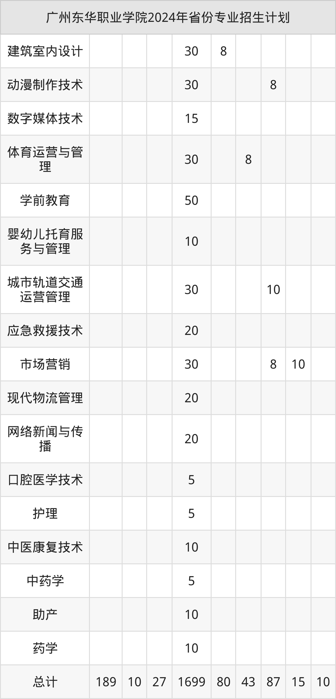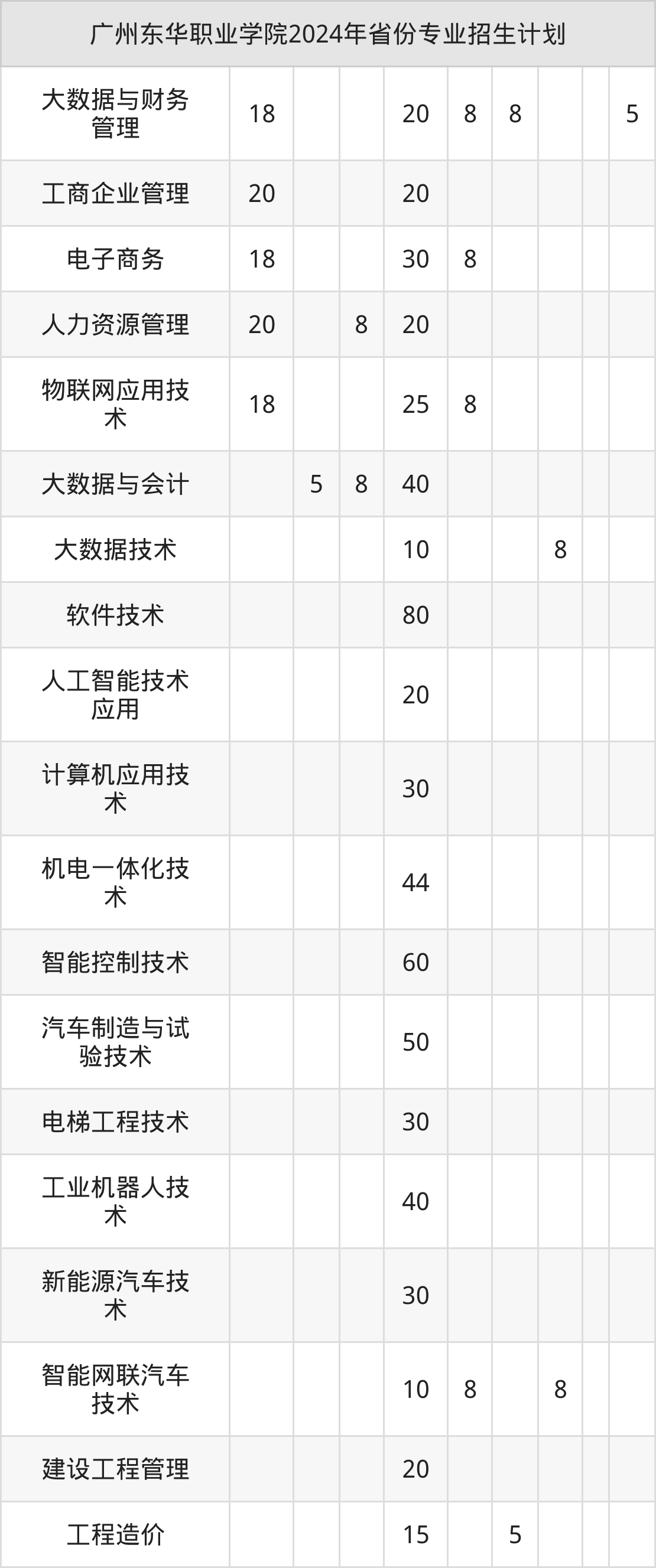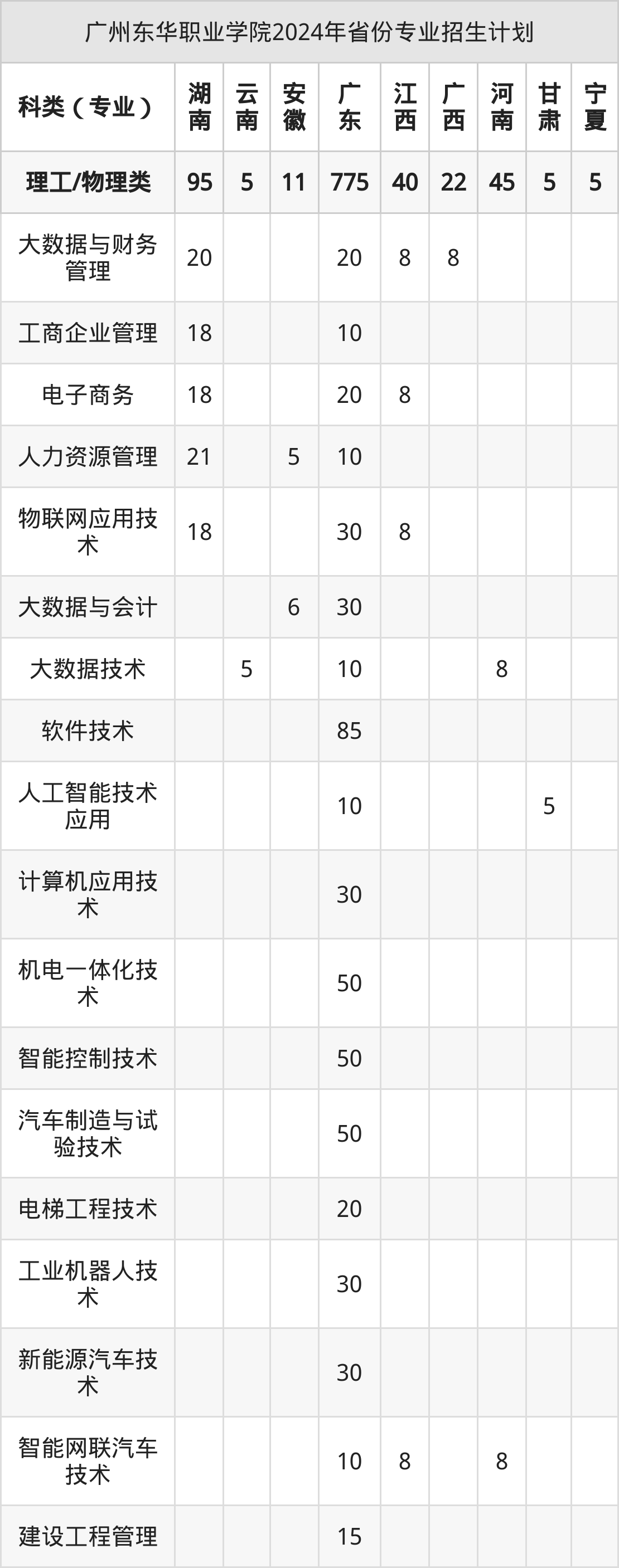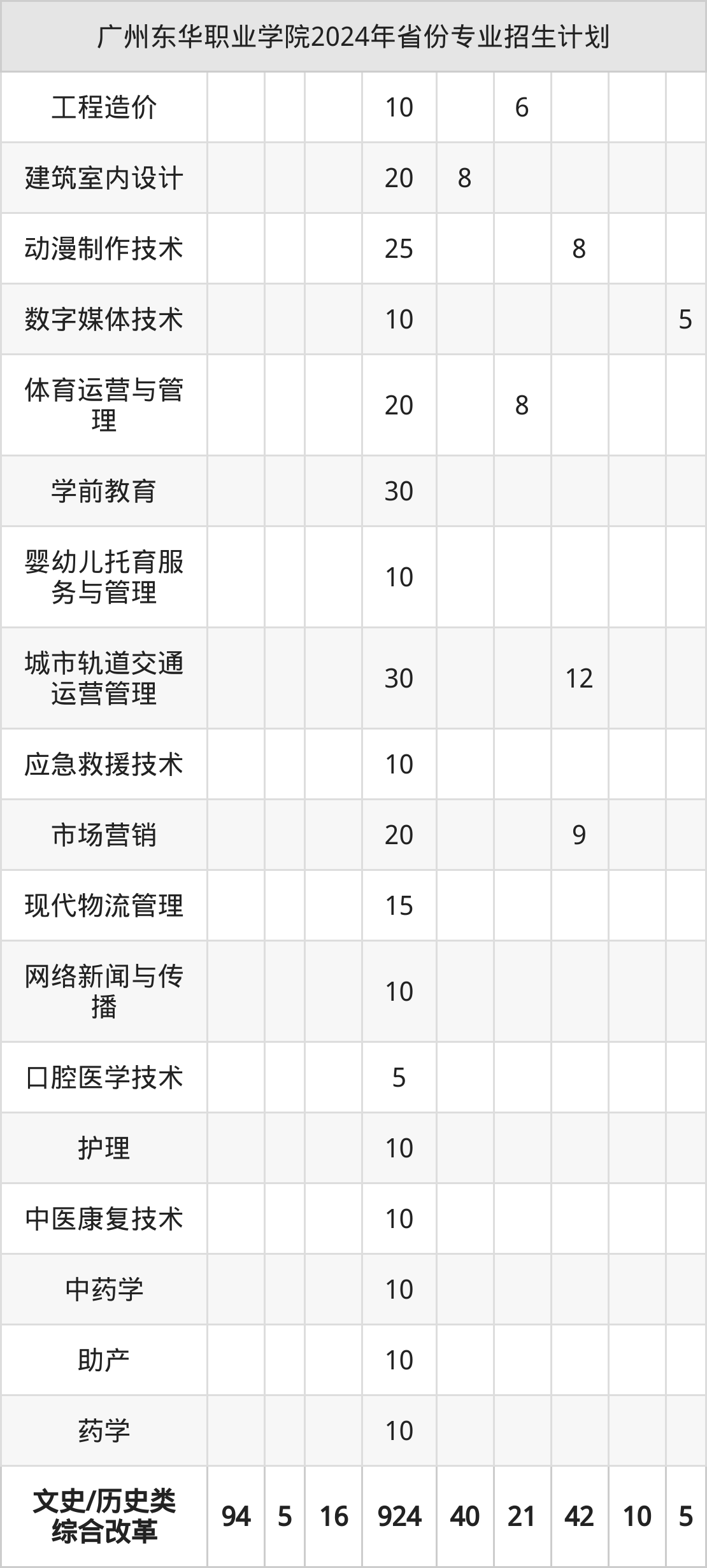 2025年广州东华职业学院专科招生计划待公布,下面附上2024年数据,暂供参考: