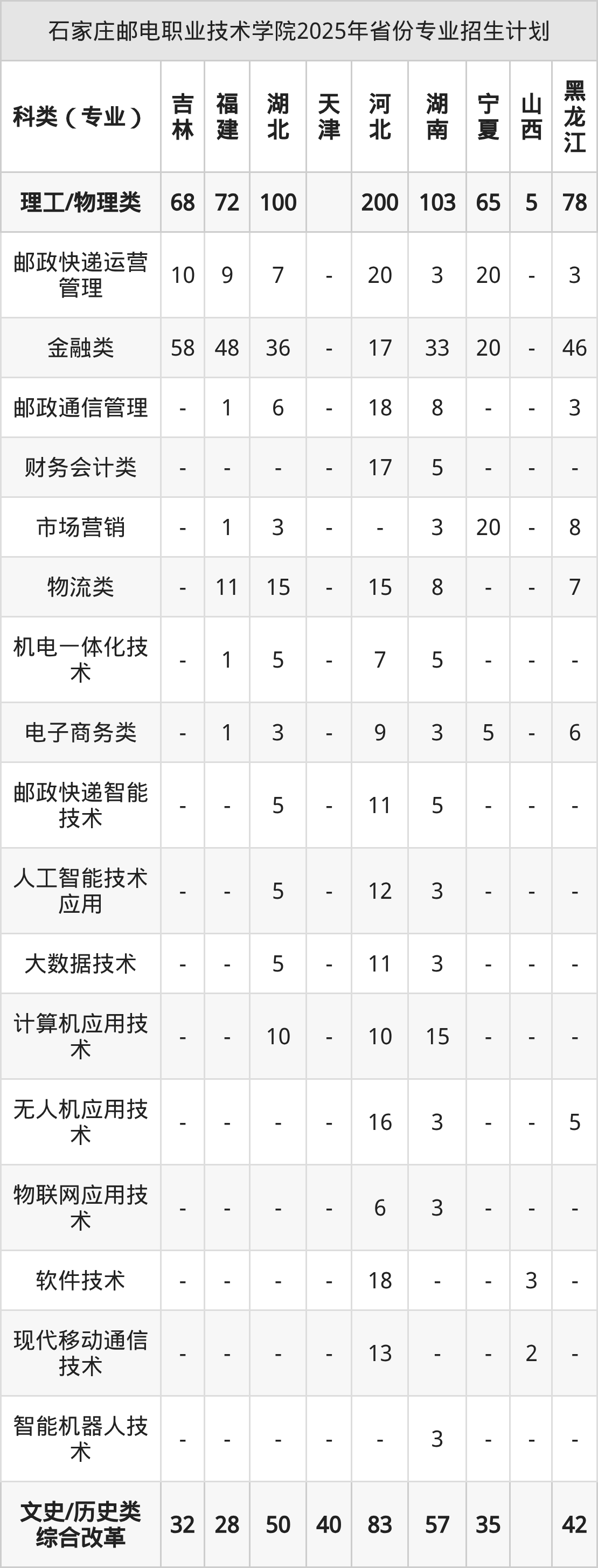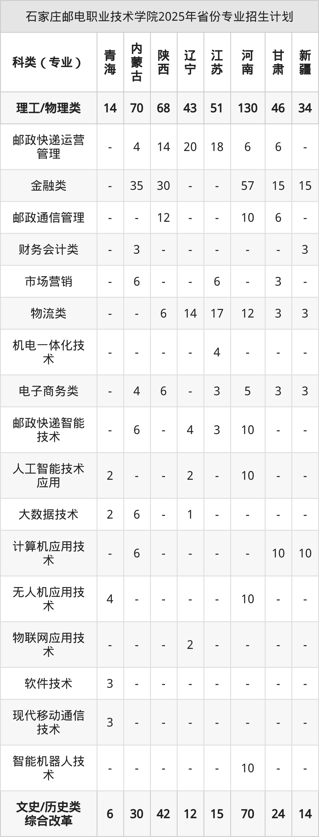 2026年石家庄邮电职业技术学院专科招生计划待公布,下面附上2025年数据,暂供参考: