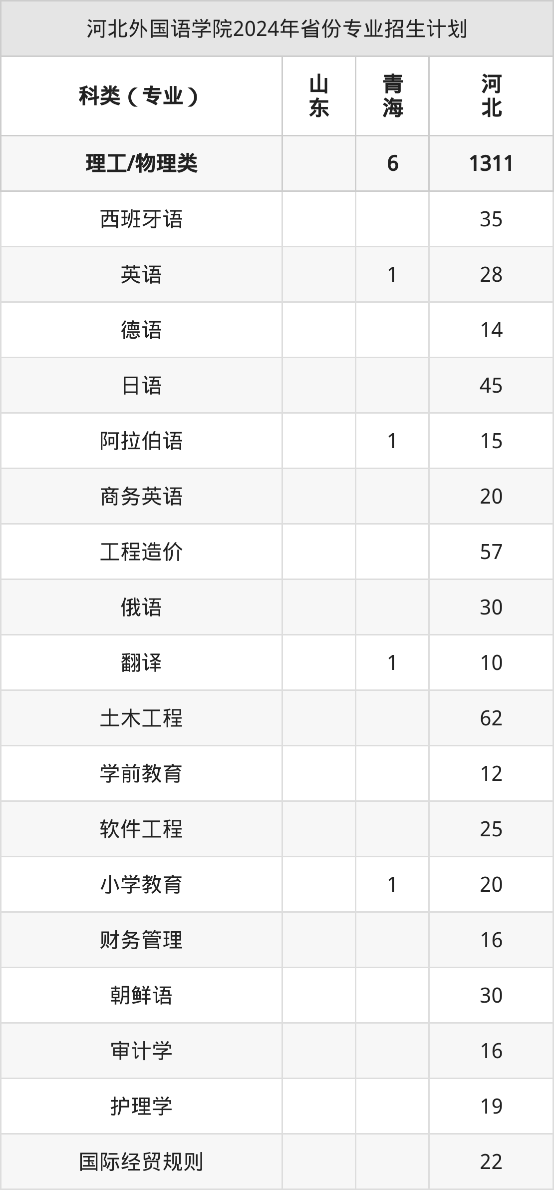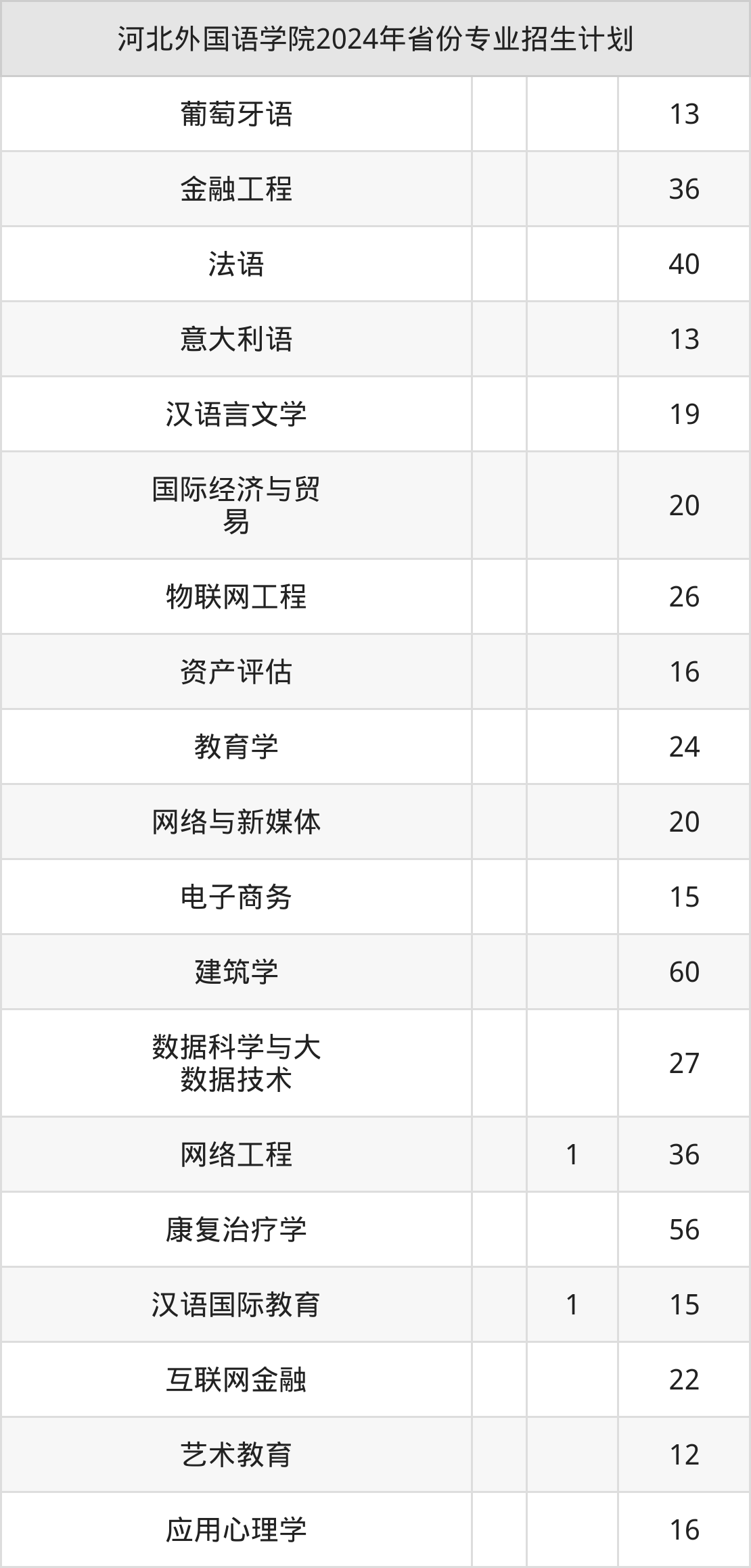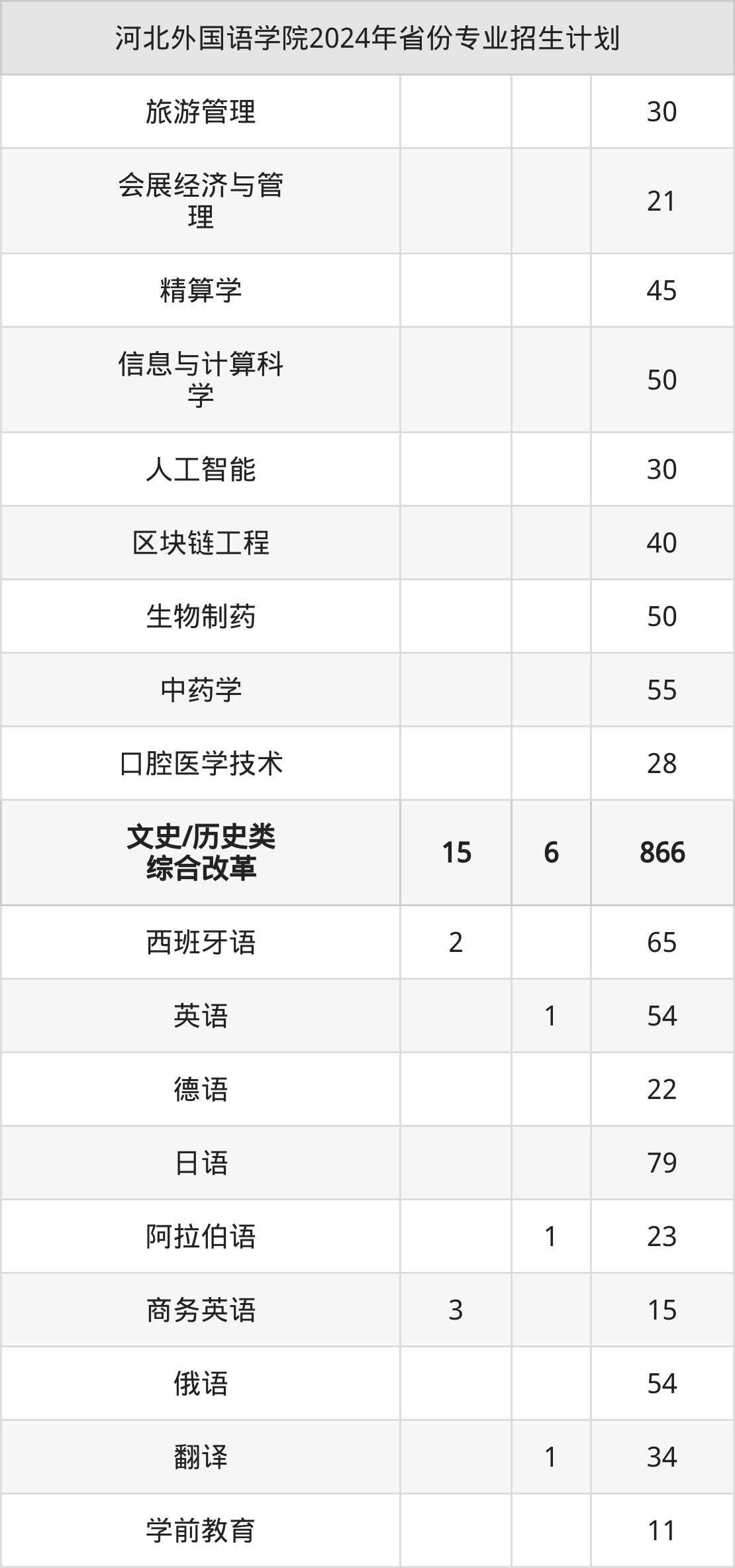 2025年河北外国语学院本科招生计划待公布,下面附上2024年数据,暂供参考: