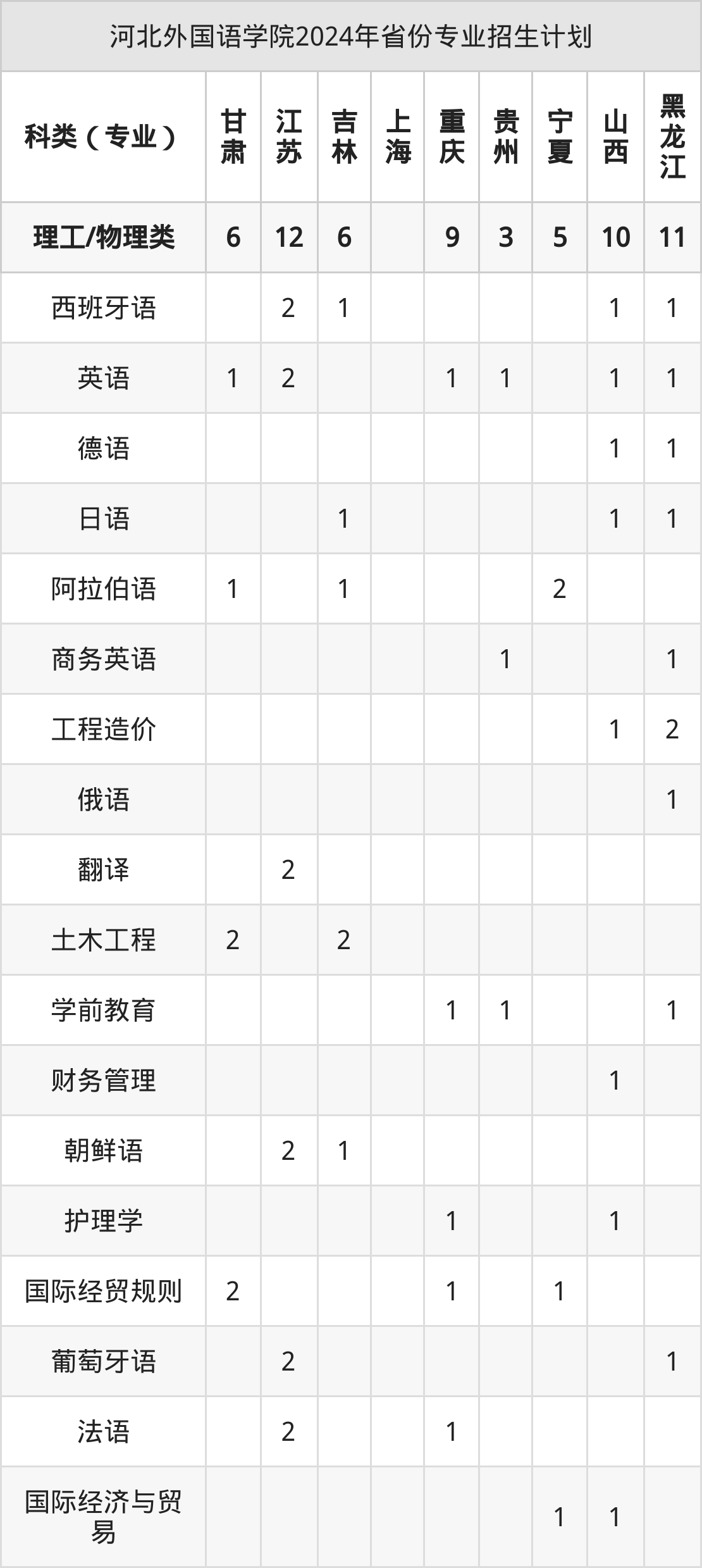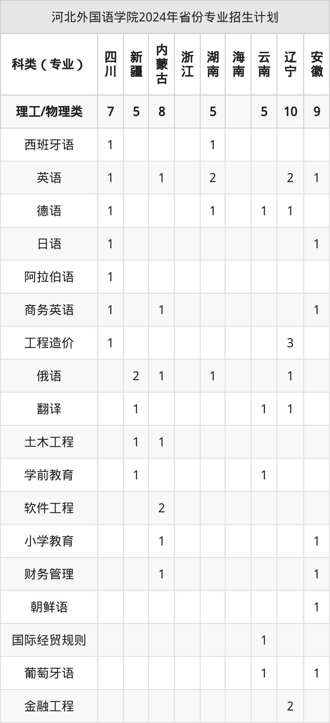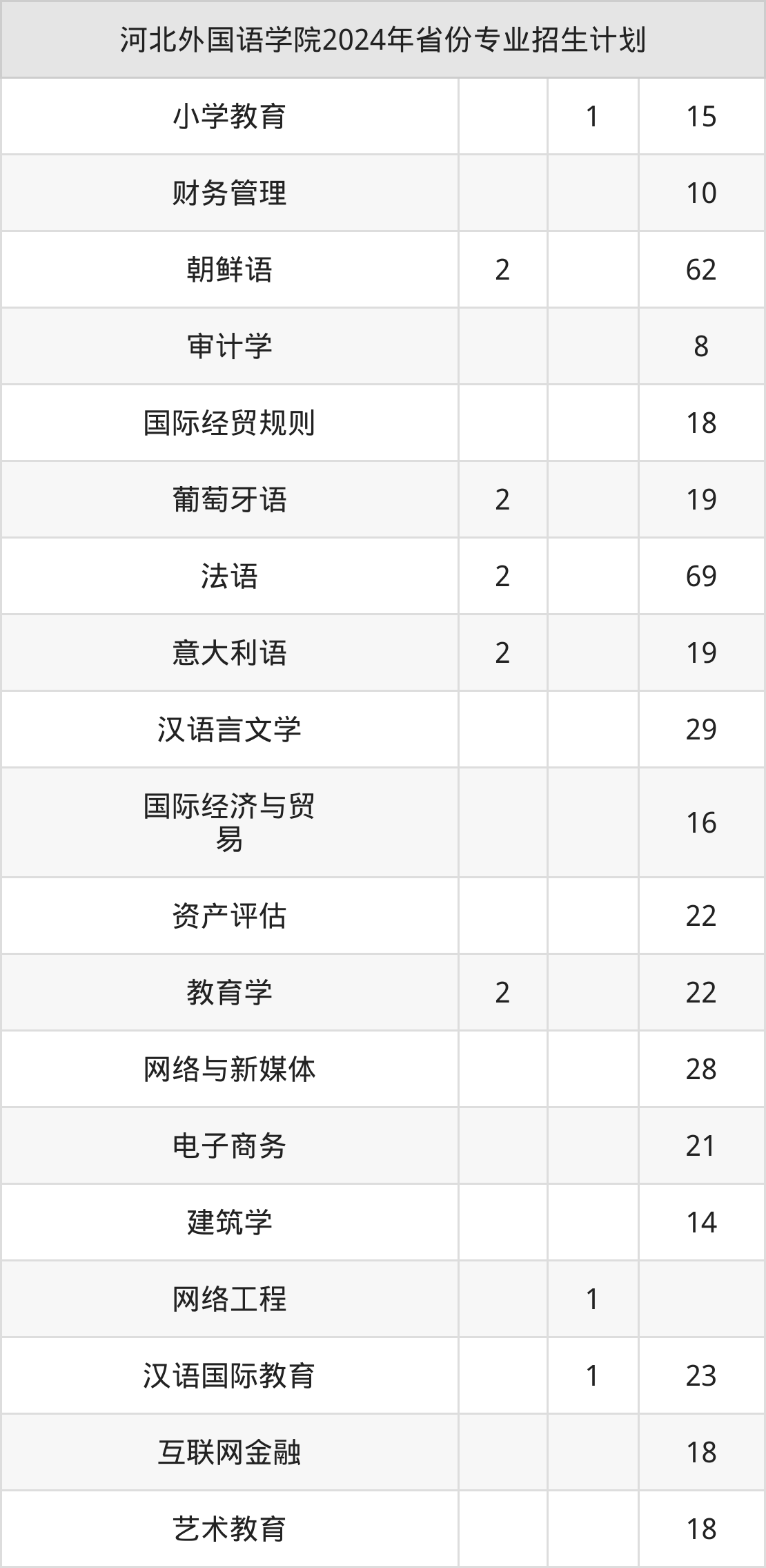 2025年河北外国语学院本科招生计划待公布,下面附上2024年数据,暂供参考:
