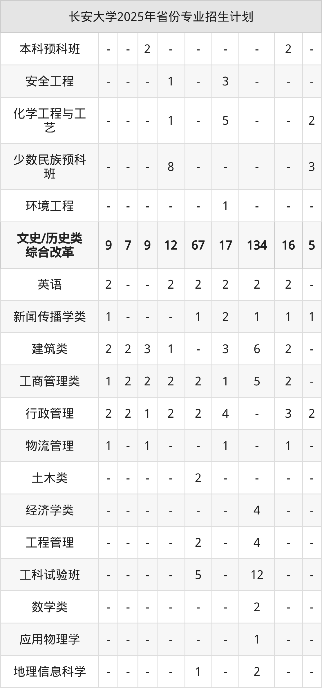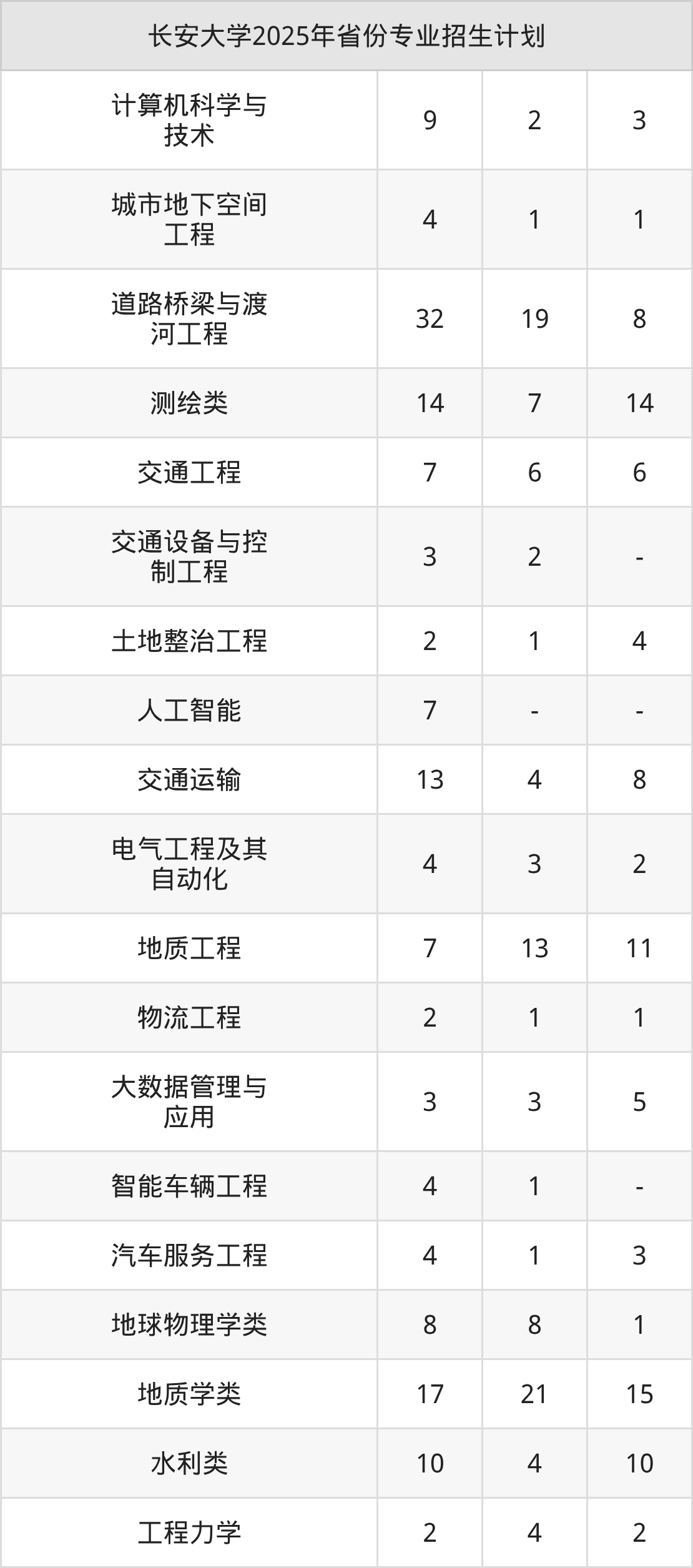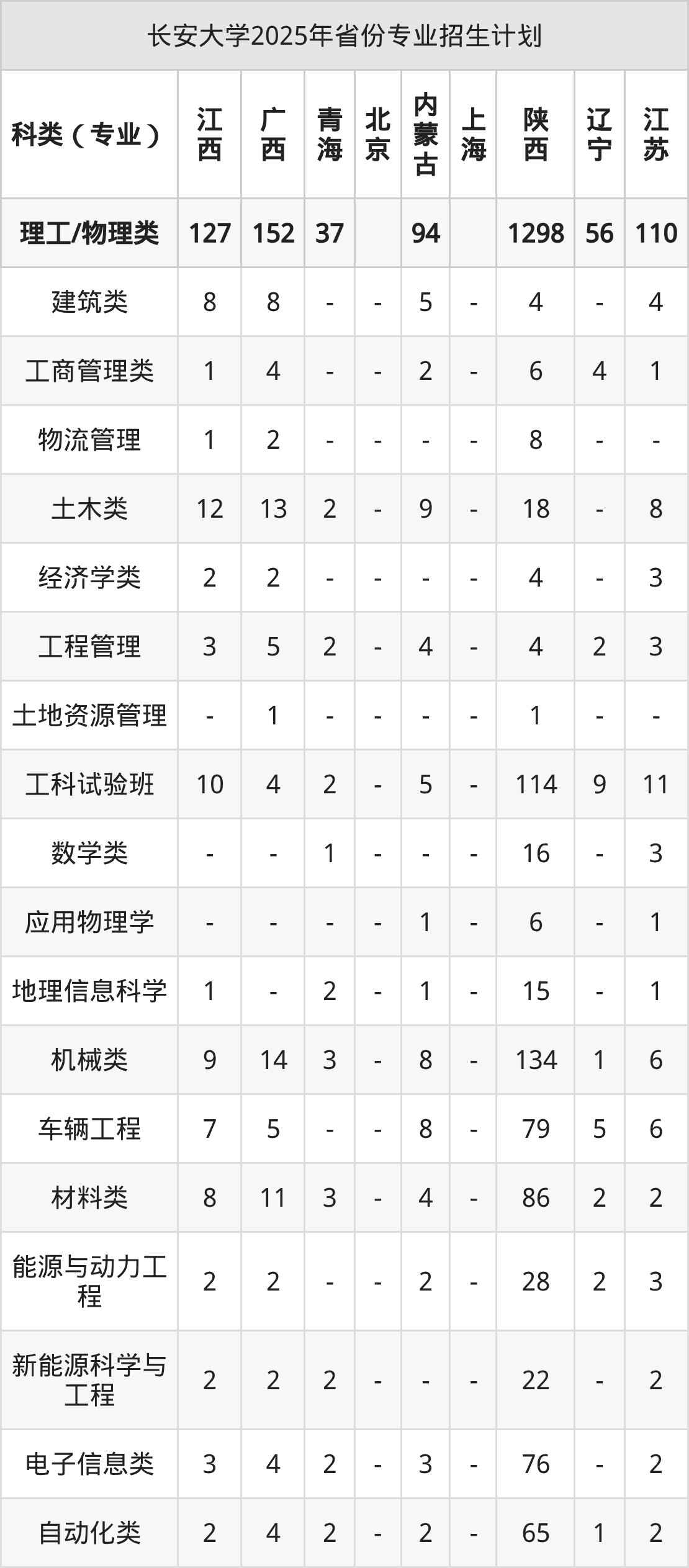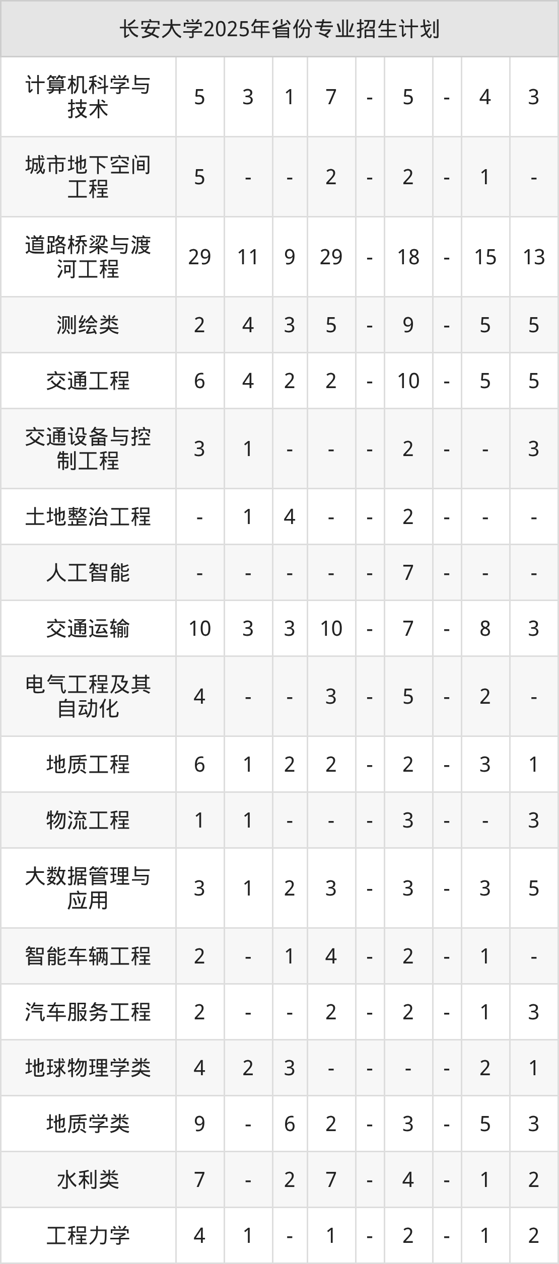 2026年长安大学本科招生计划待公布,下面附上2025年数据,暂供参考: