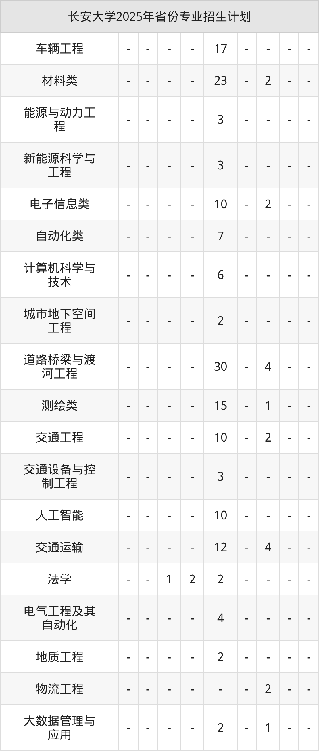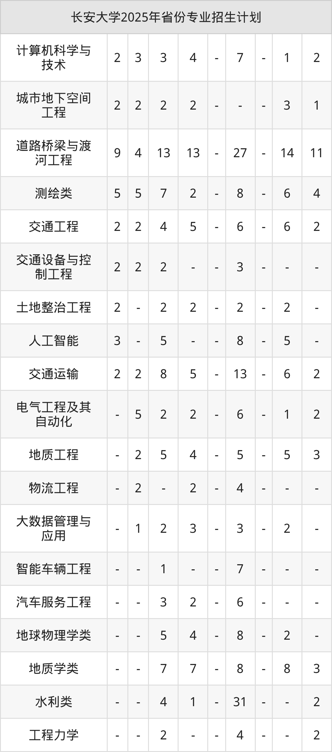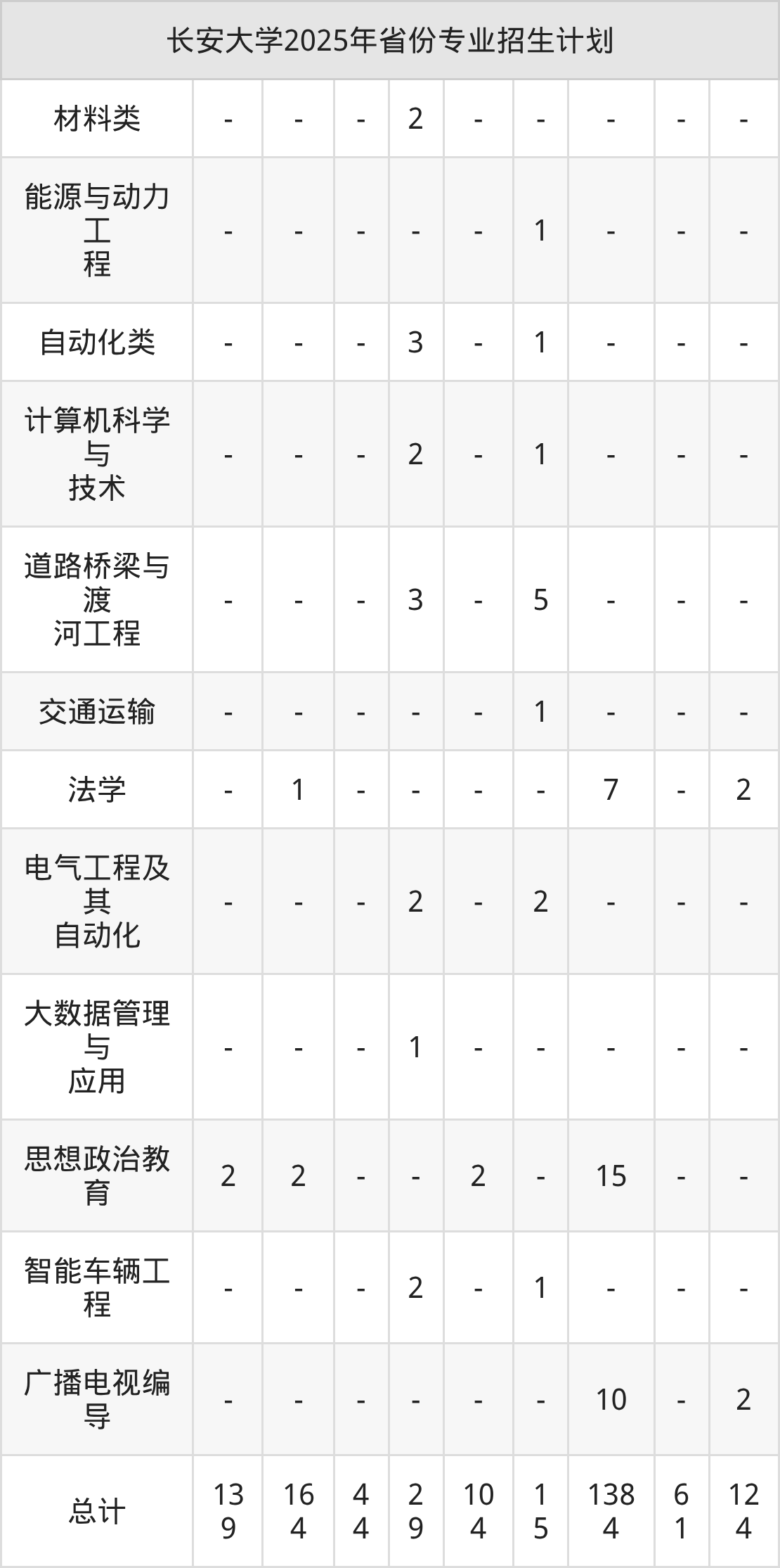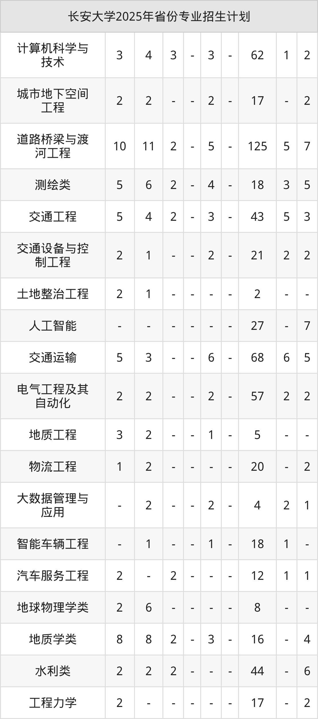 2026年长安大学本科招生计划待公布,下面附上2025年数据,暂供参考: