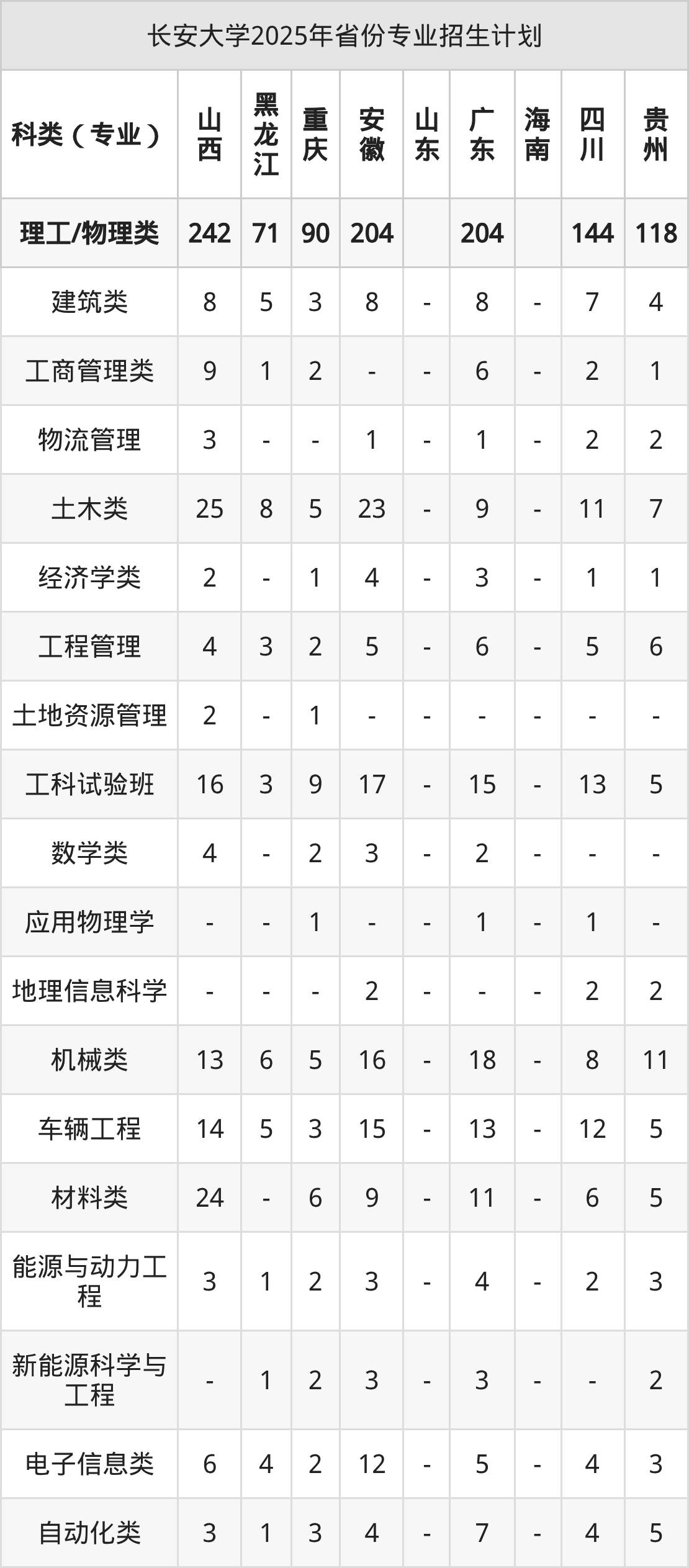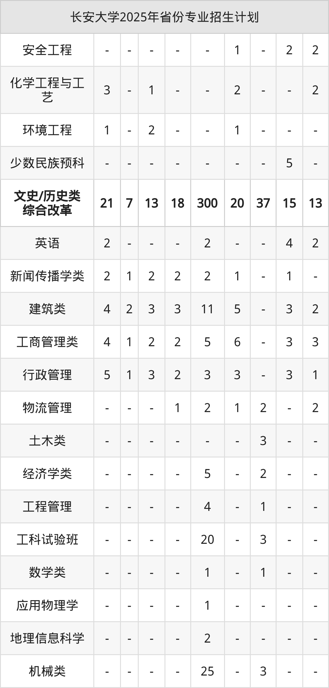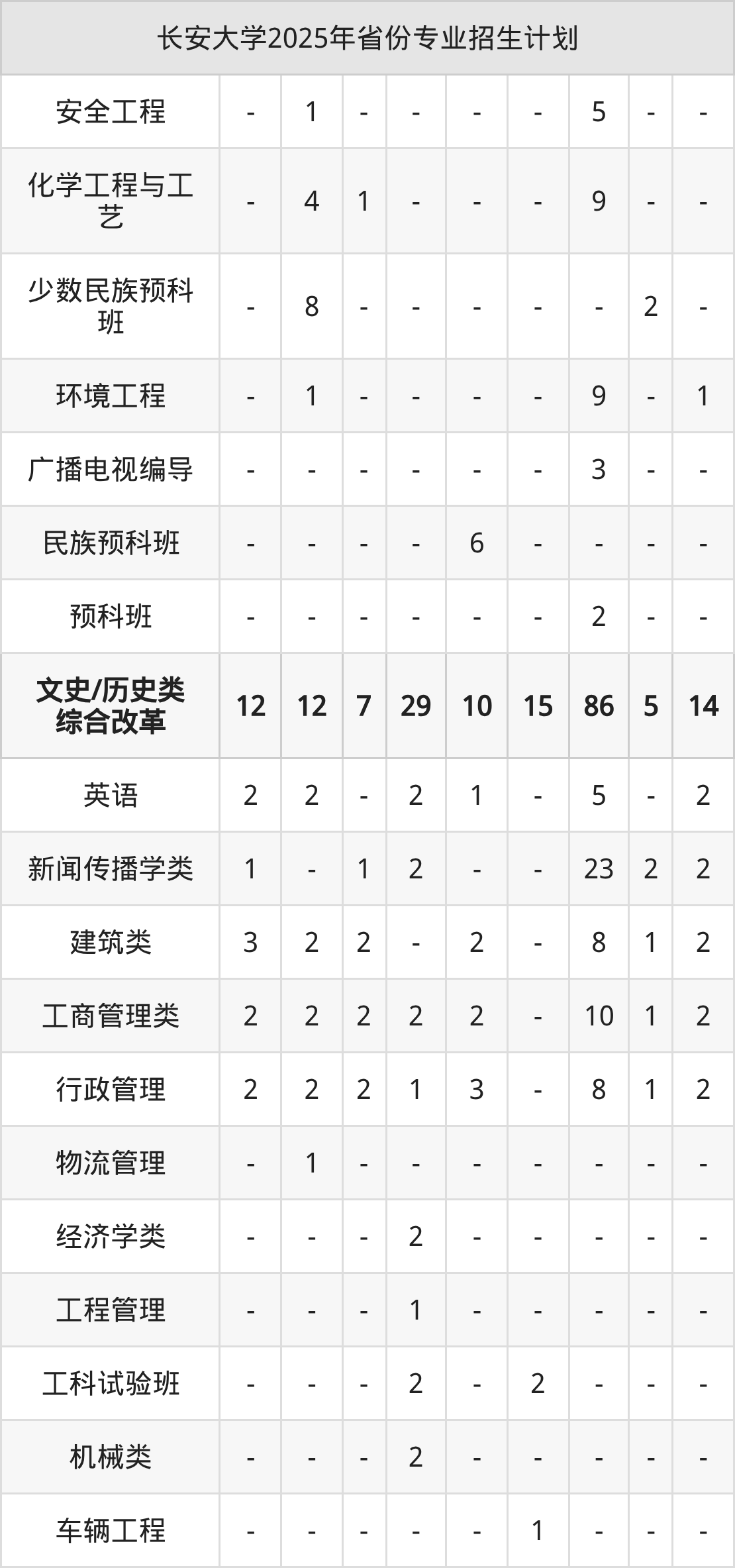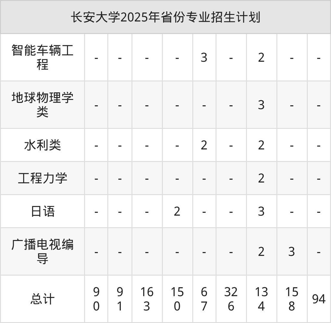 2026年长安大学本科招生计划待公布,下面附上2025年数据,暂供参考: