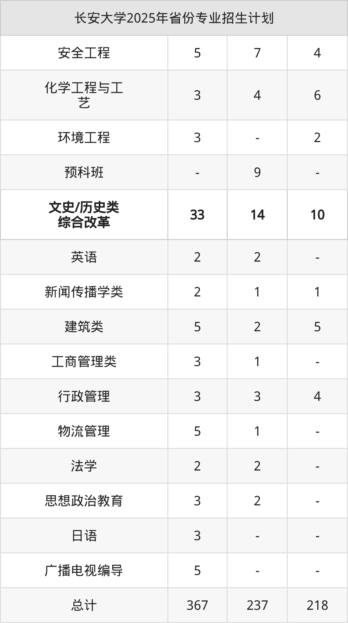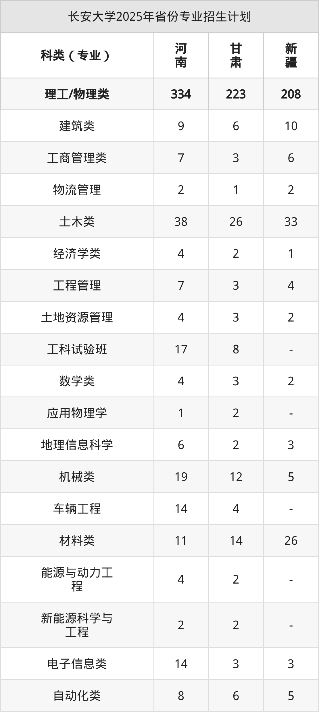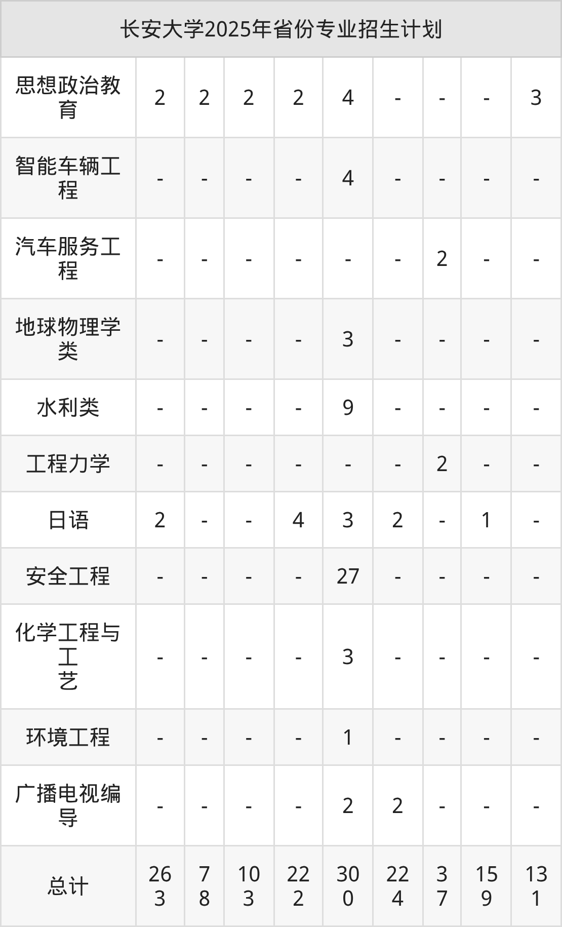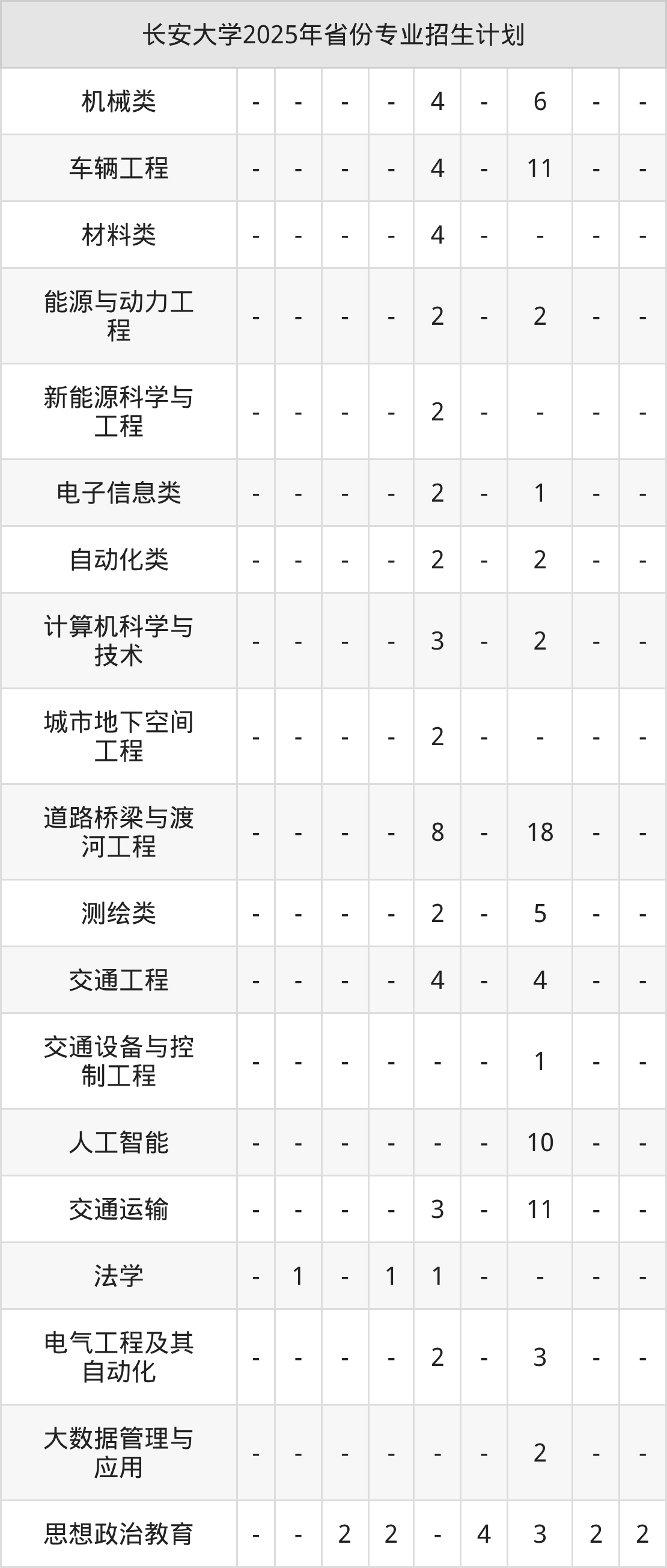 2026年长安大学本科招生计划待公布,下面附上2025年数据,暂供参考: