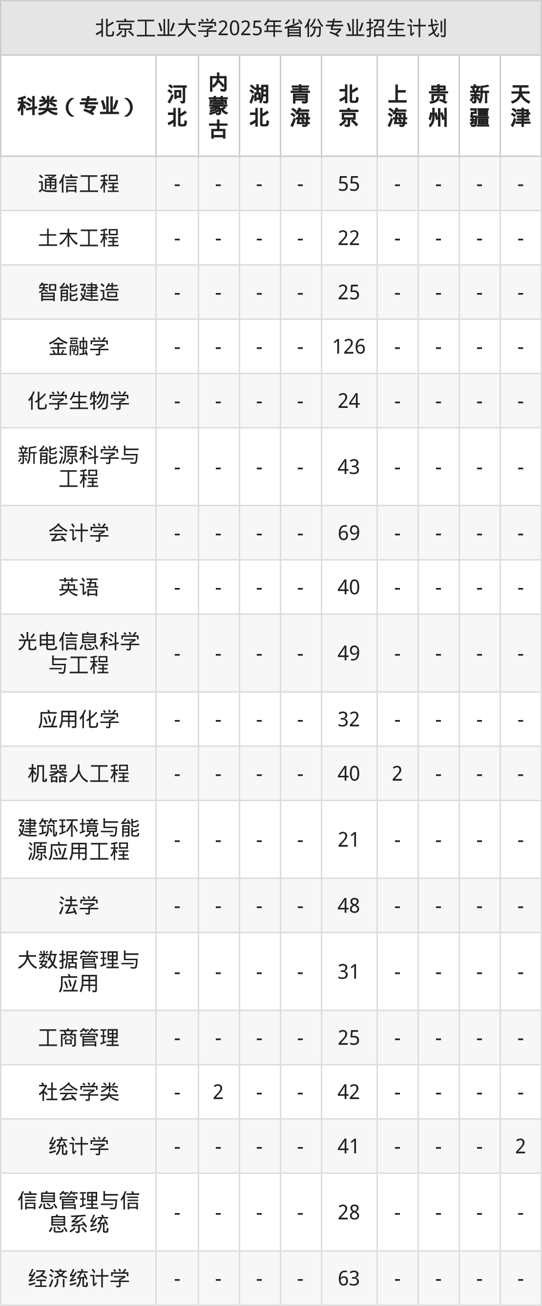 2026年北京工业大学本科招生计划待公布,下面附上2025年数据,暂供参考: