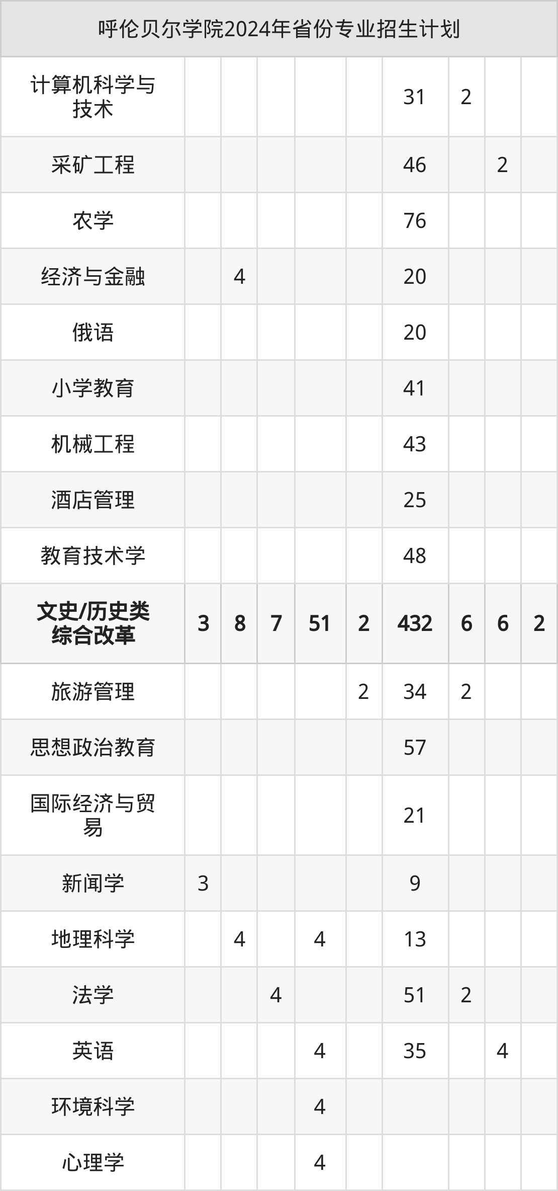 二、呼伦贝尔学院2025年招生计划
