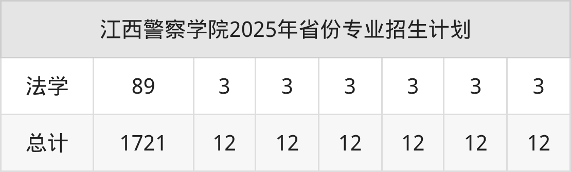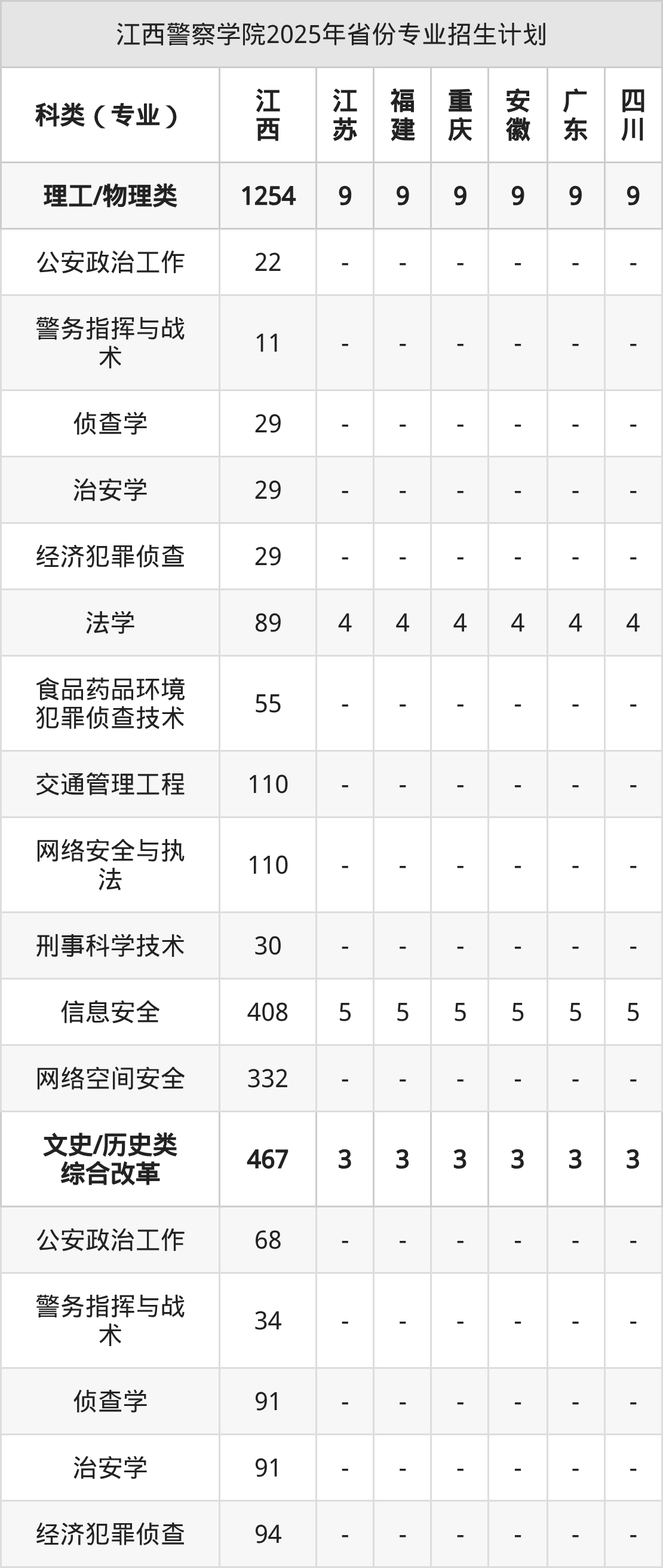 2026年江西警察学院本科招生计划待公布,下面附上2025年数据,暂供参考:
