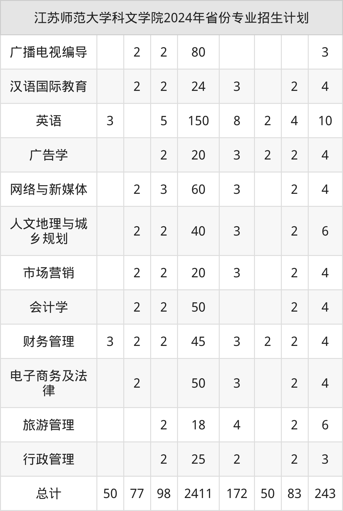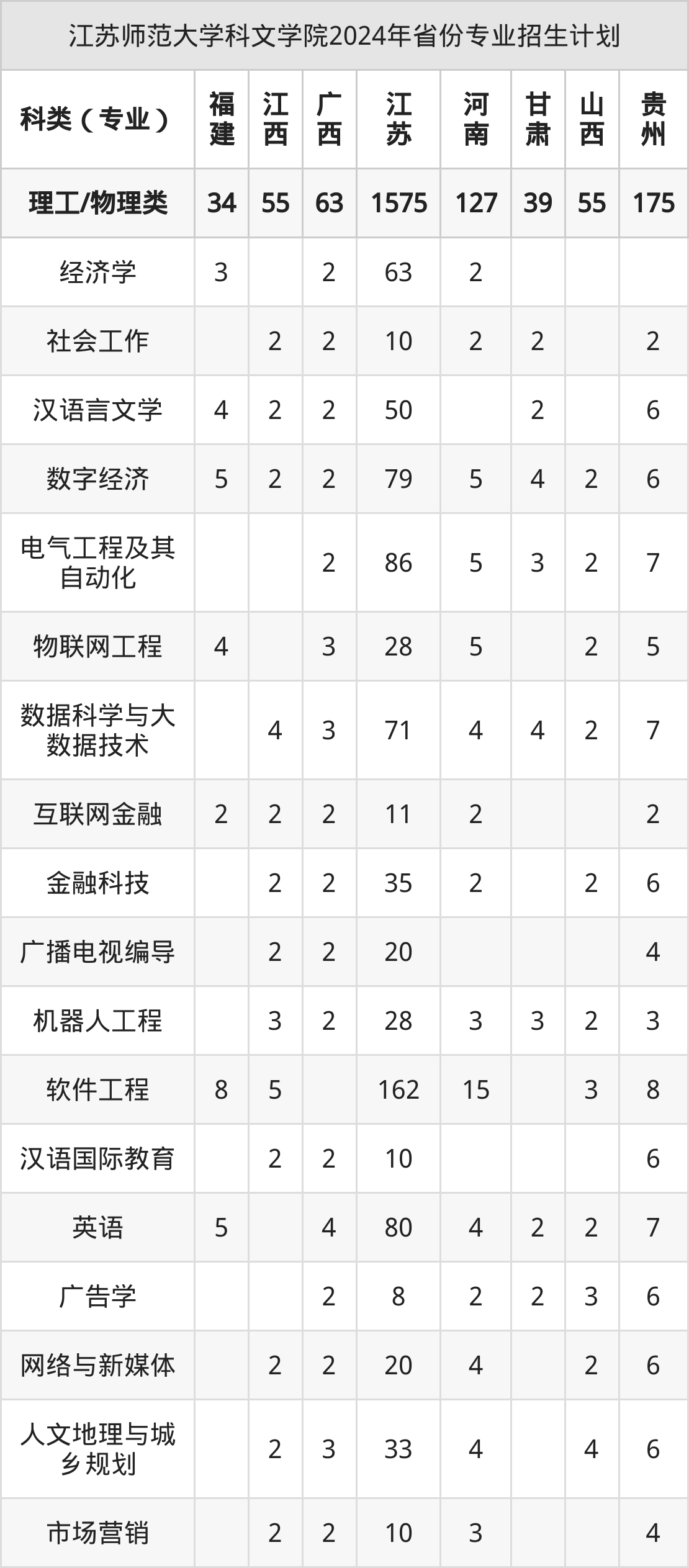 2025年江苏师范大学科文学院本科招生计划待公布,下面附上2024年数据,暂供参考:
