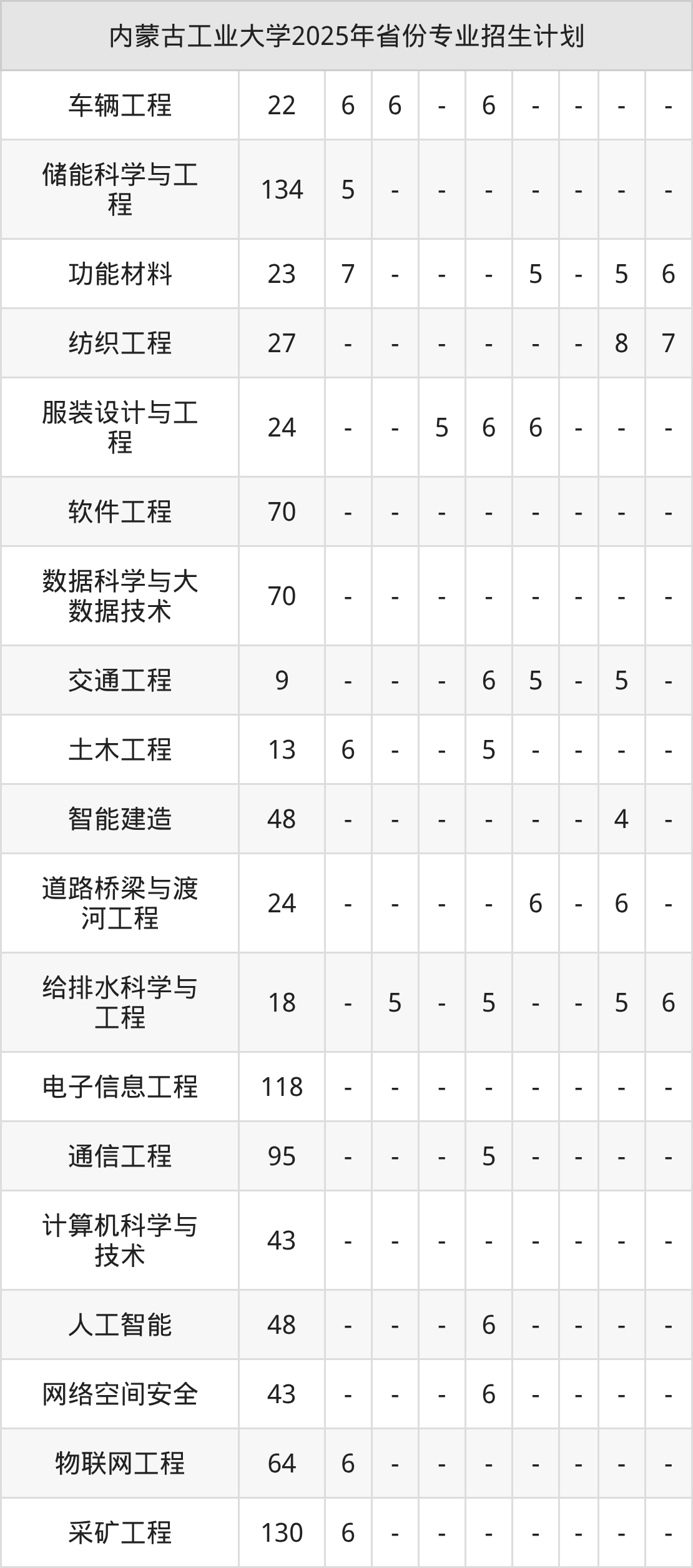 2026年内蒙古工业大学本科招生计划待公布,下面附上2025年数据,暂供参考: