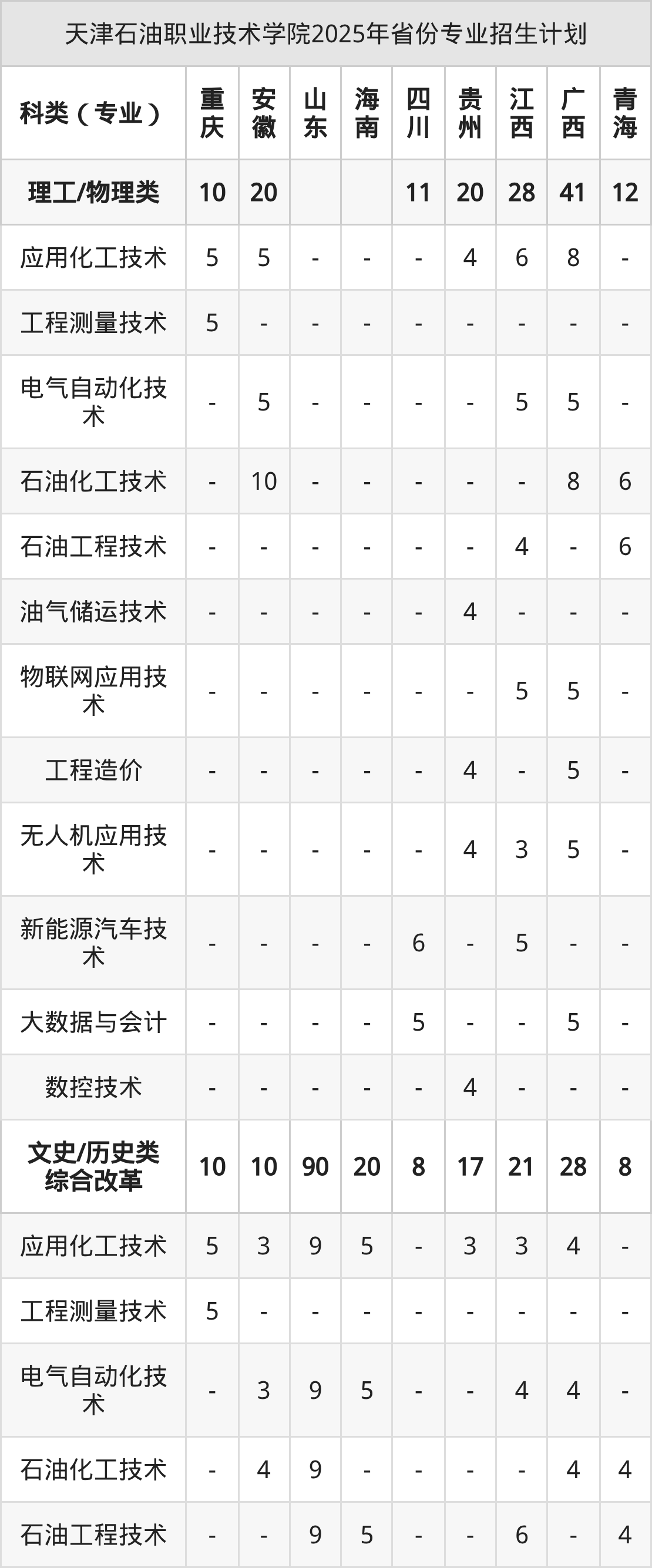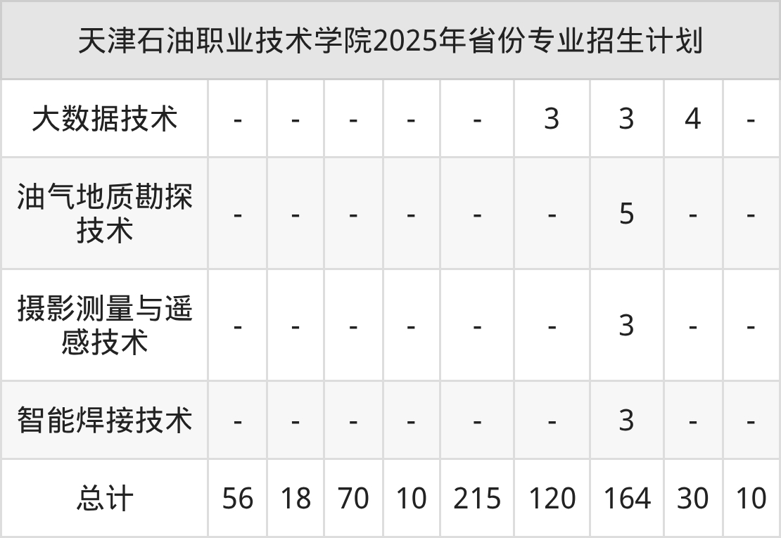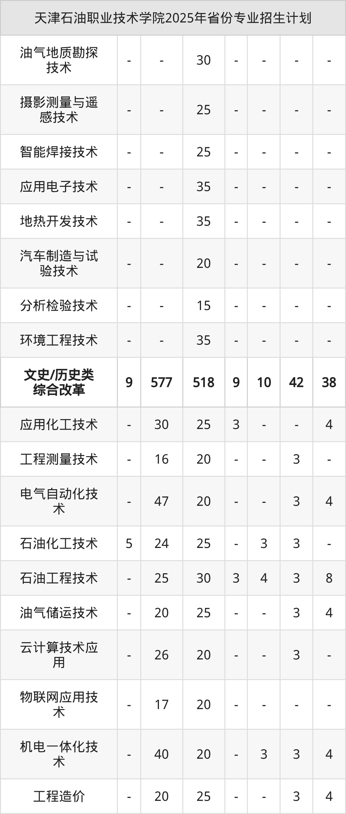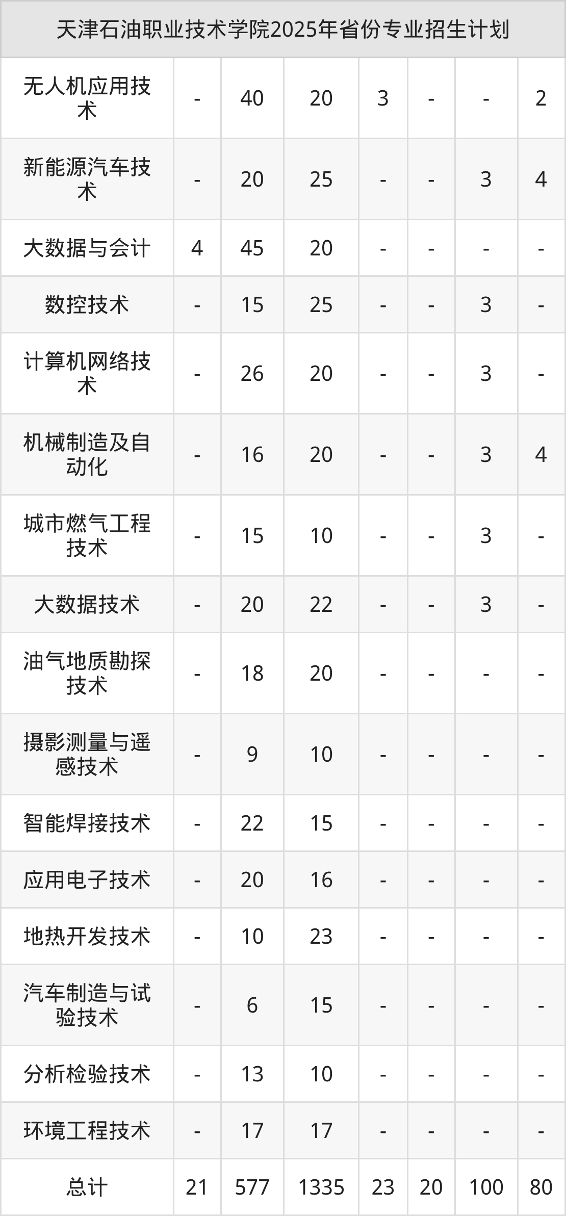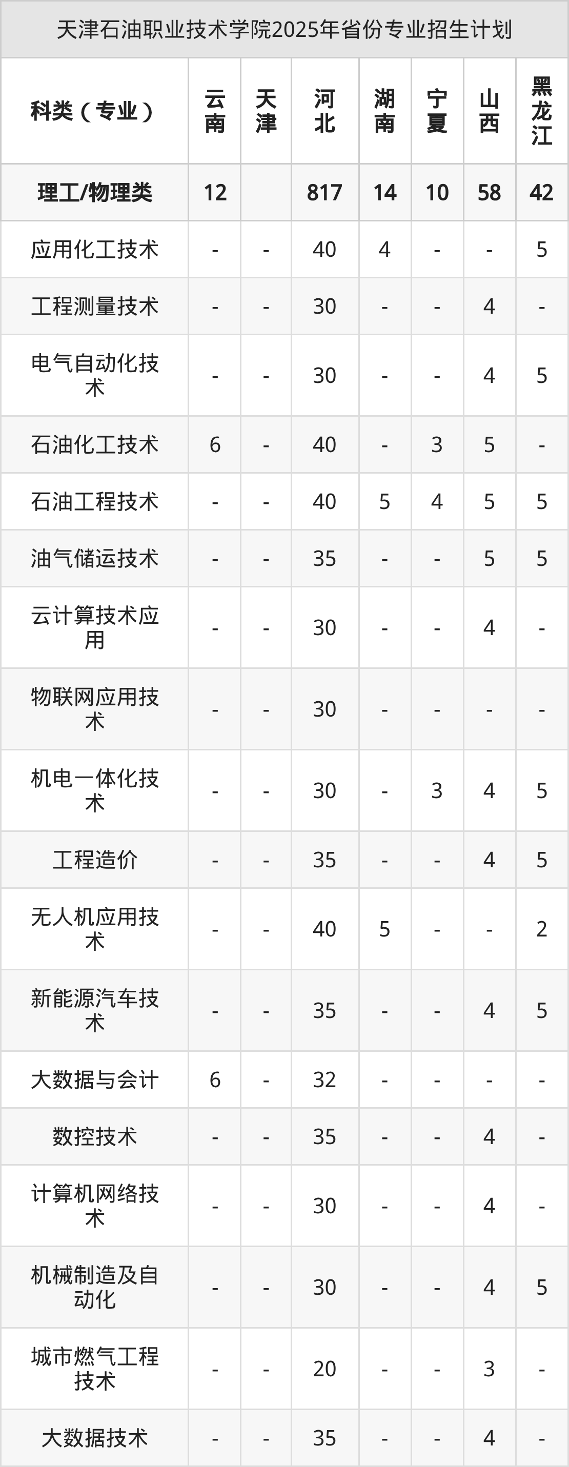 2026年天津石油职业技术学院专科招生计划待公布,下面附上2025年数据,暂供参考: