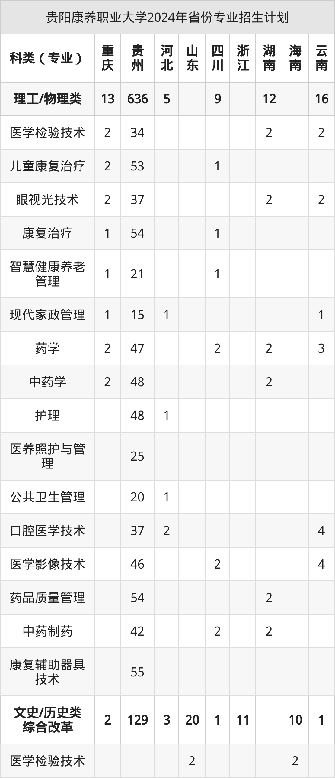 2025年贵阳康养职业大学本科招生计划待公布,下面附上2024年数据,暂供参考: