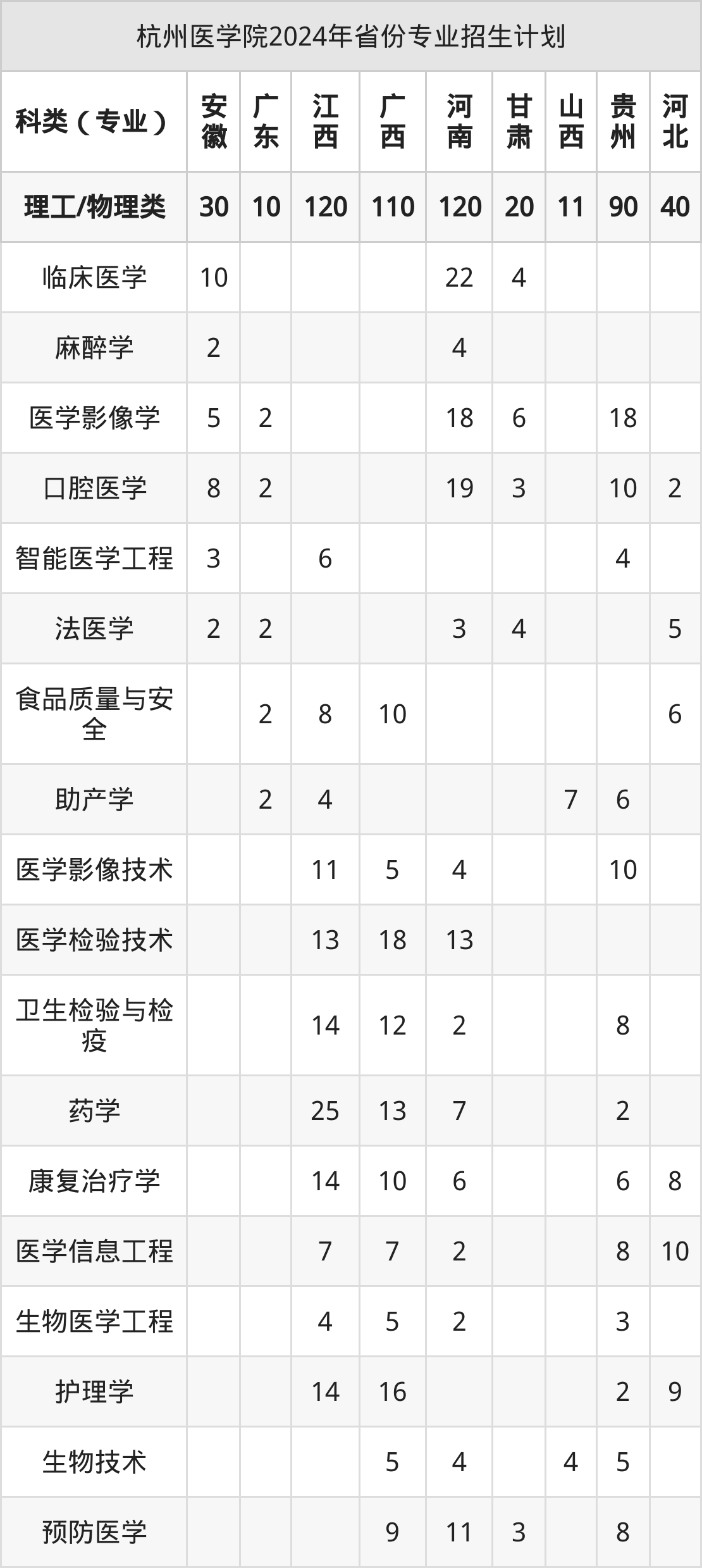 2025年杭州医学院本科招生计划待公布,下面附上2024年数据,暂供参考: