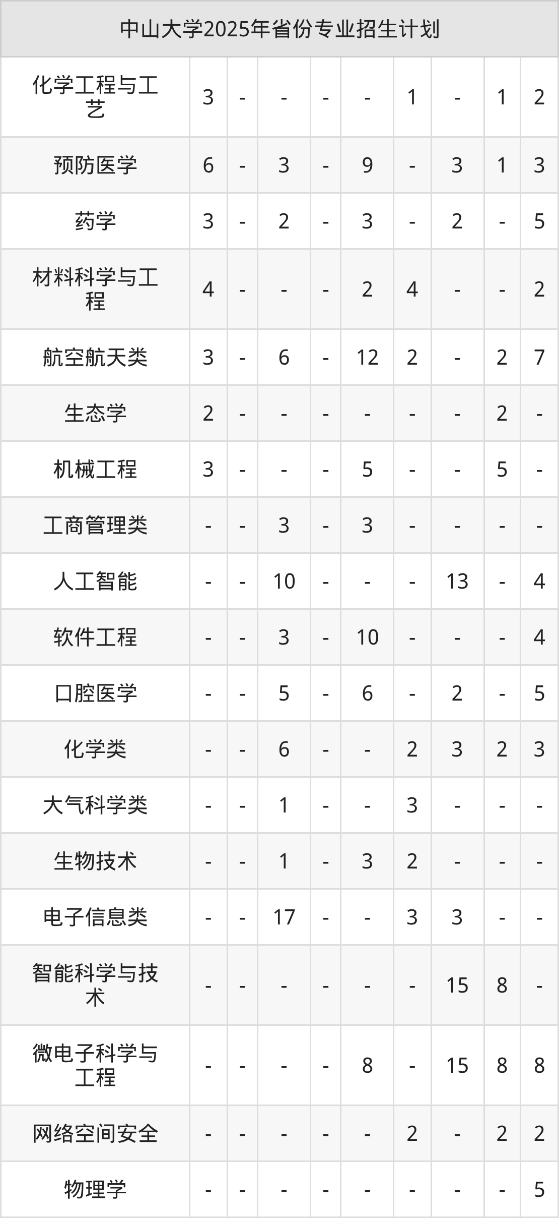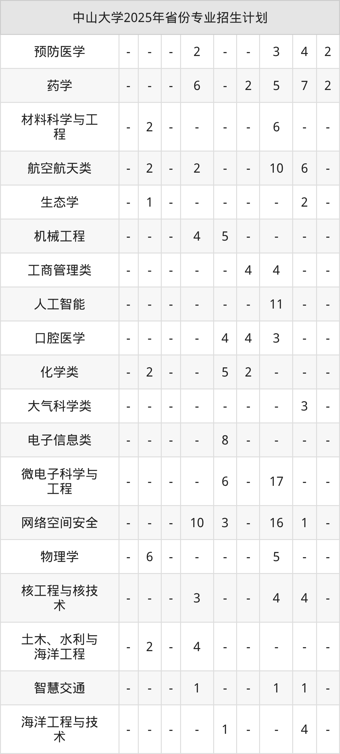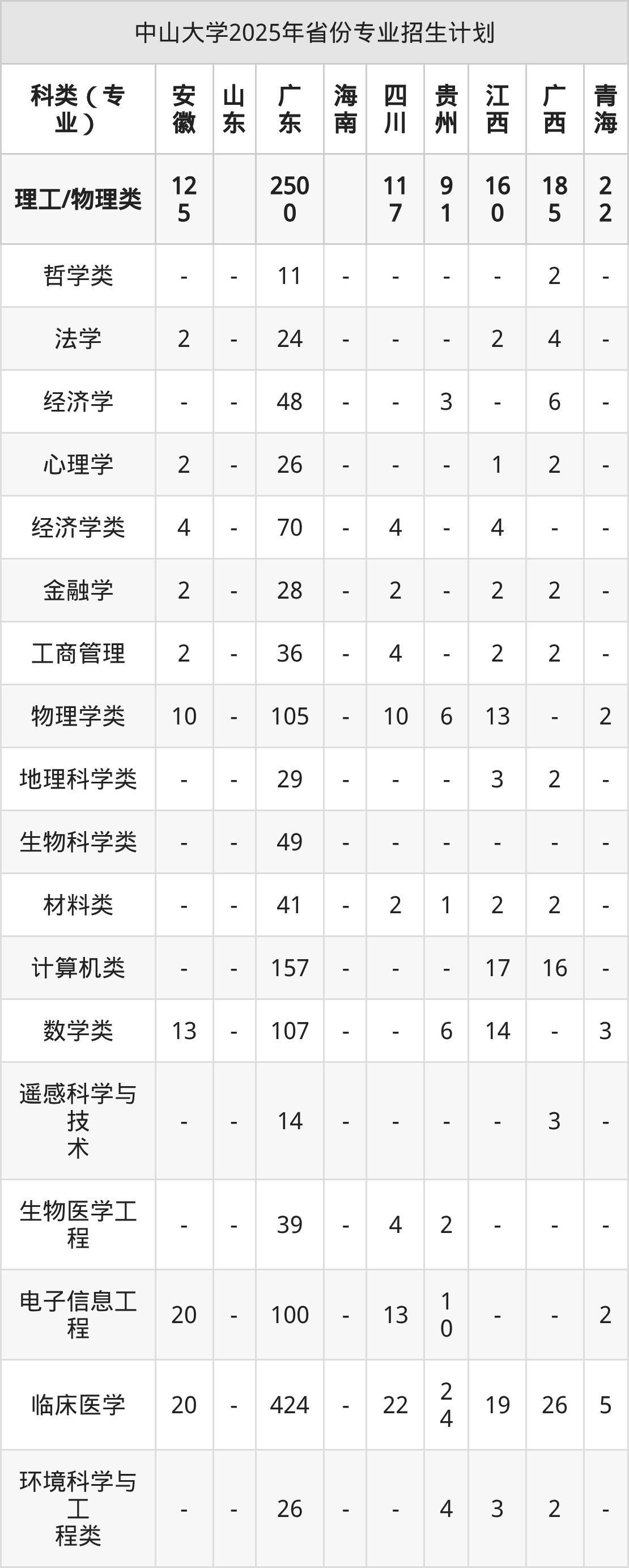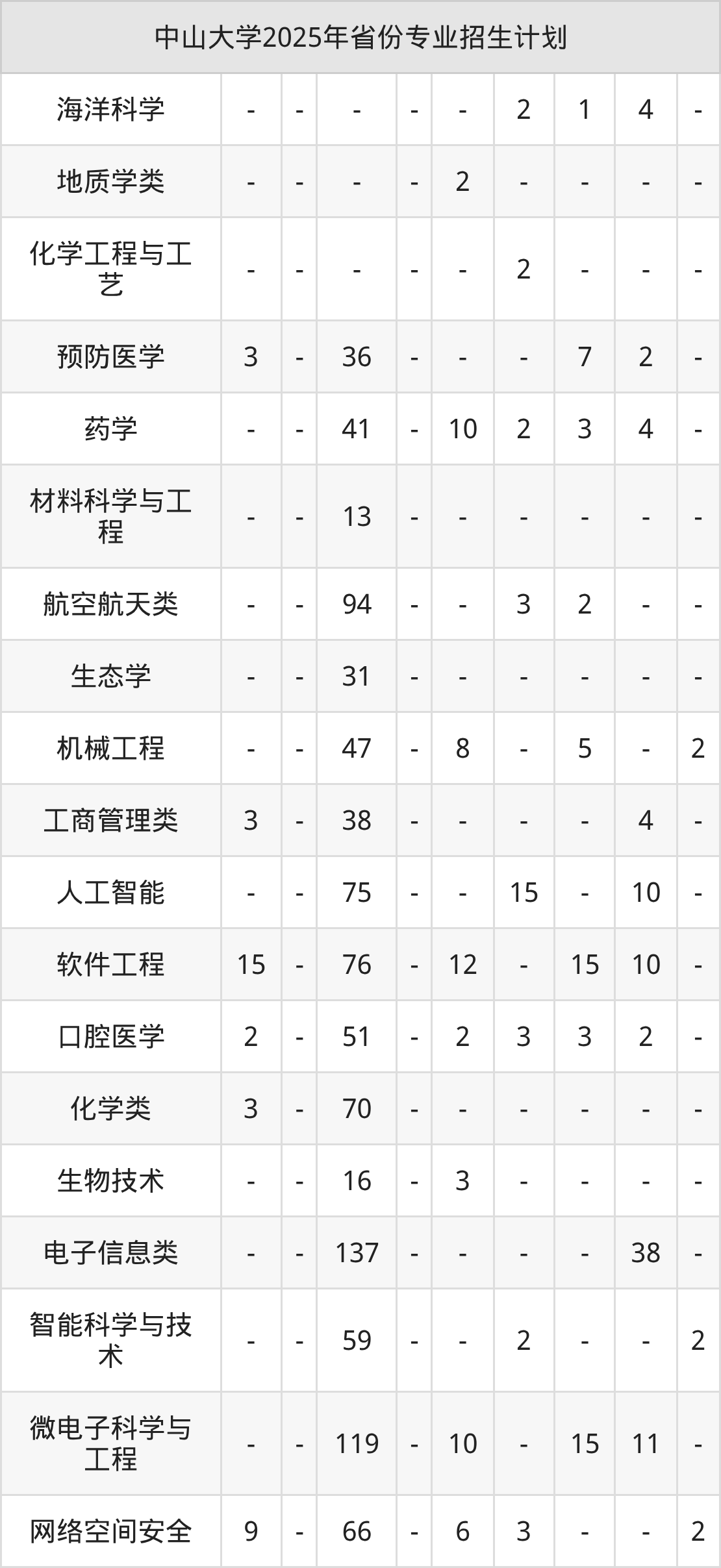 2026年中山大学本科招生计划待公布,下面附上2025年数据,暂供参考: