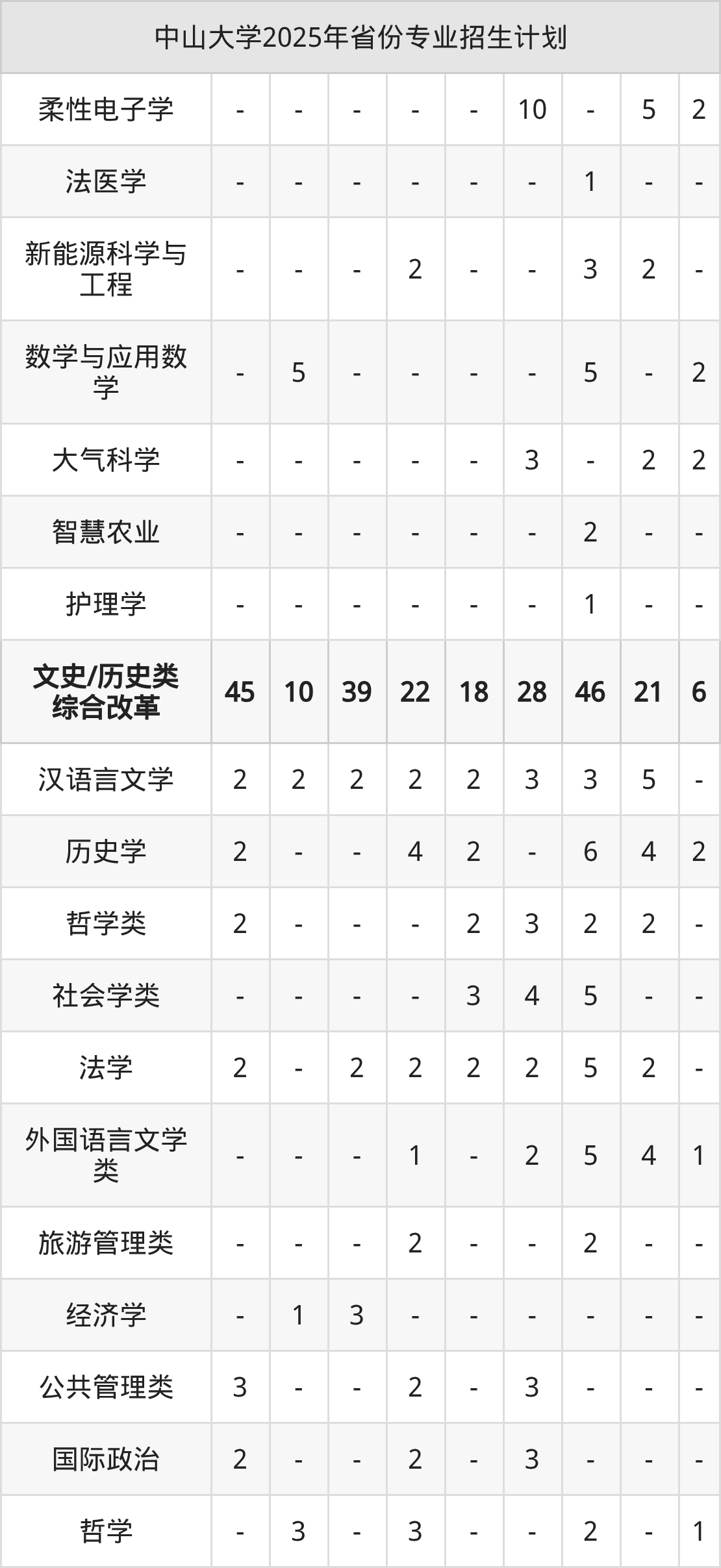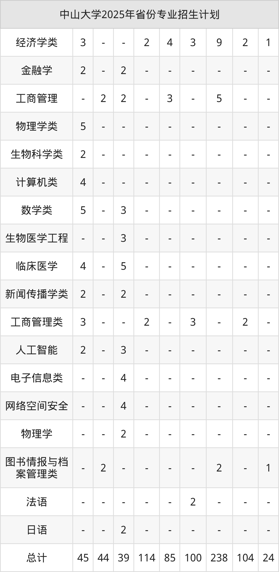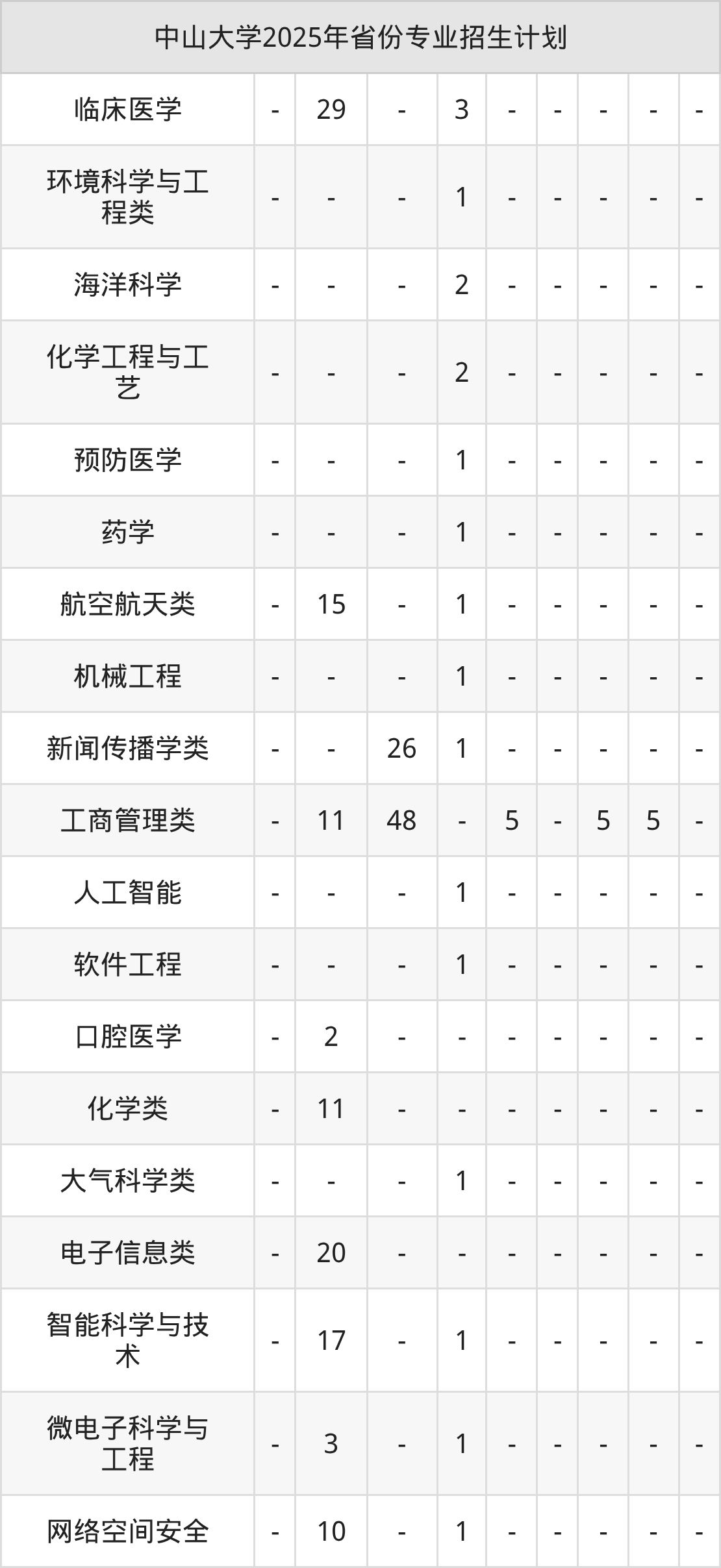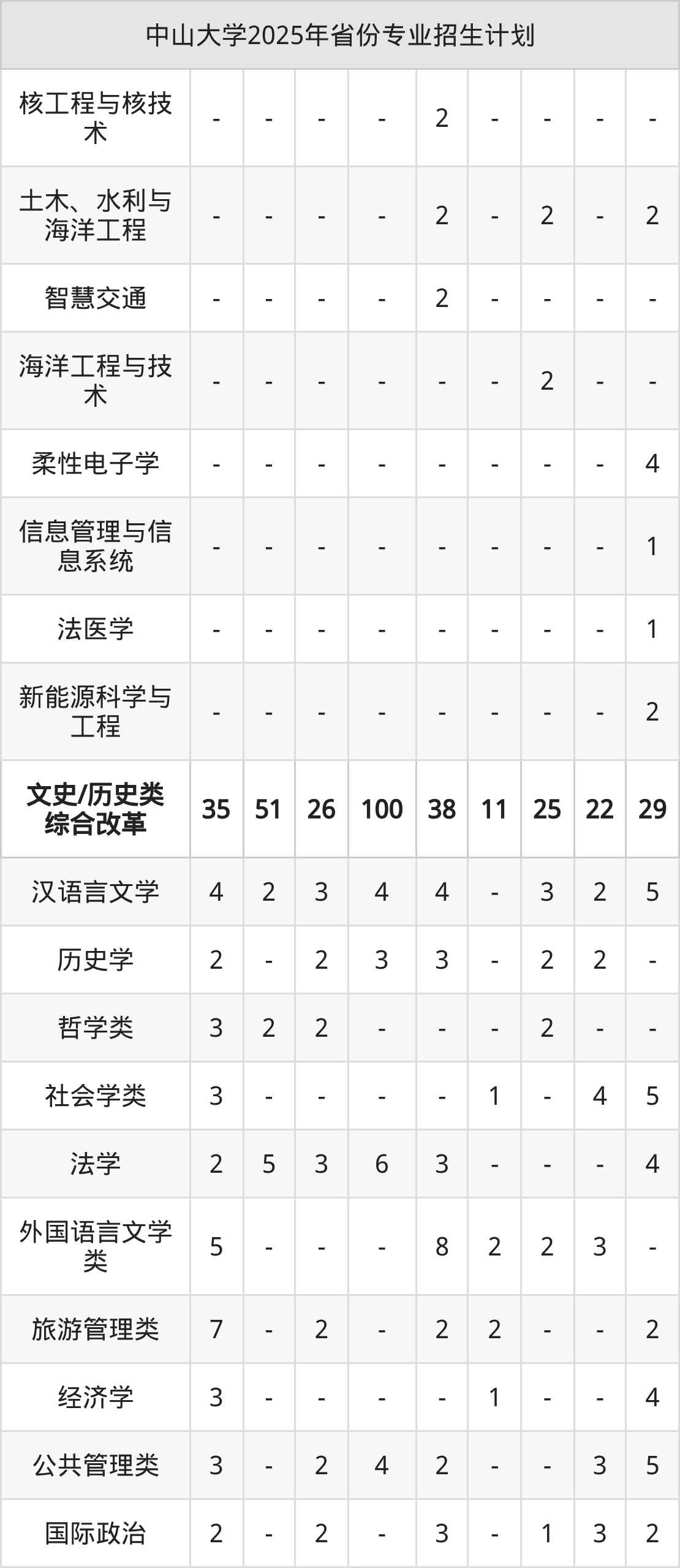 2026年中山大学本科招生计划待公布,下面附上2025年数据,暂供参考: