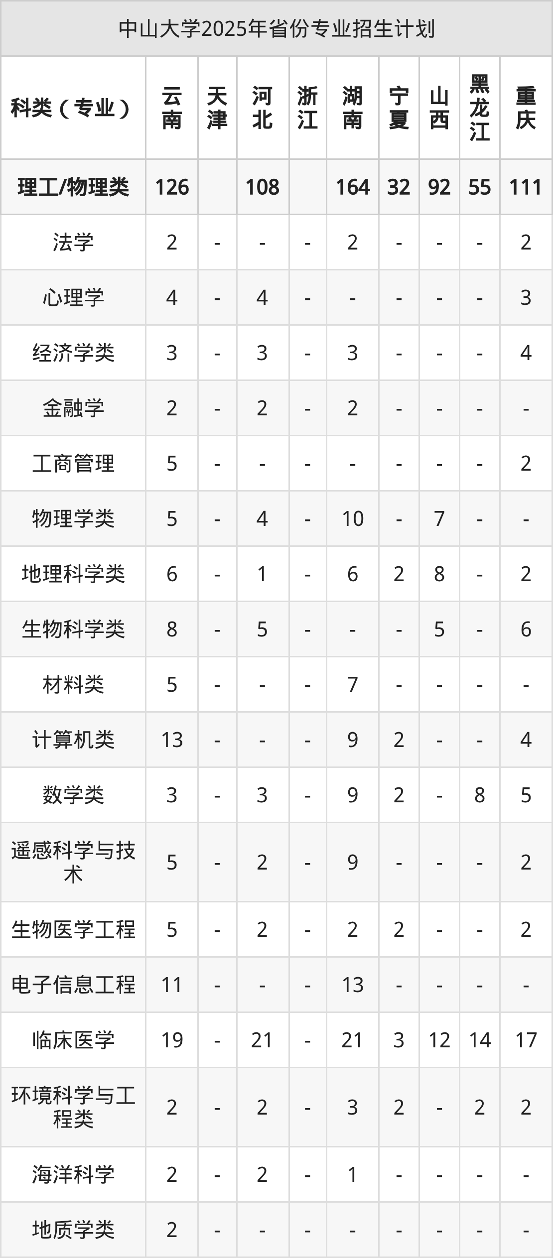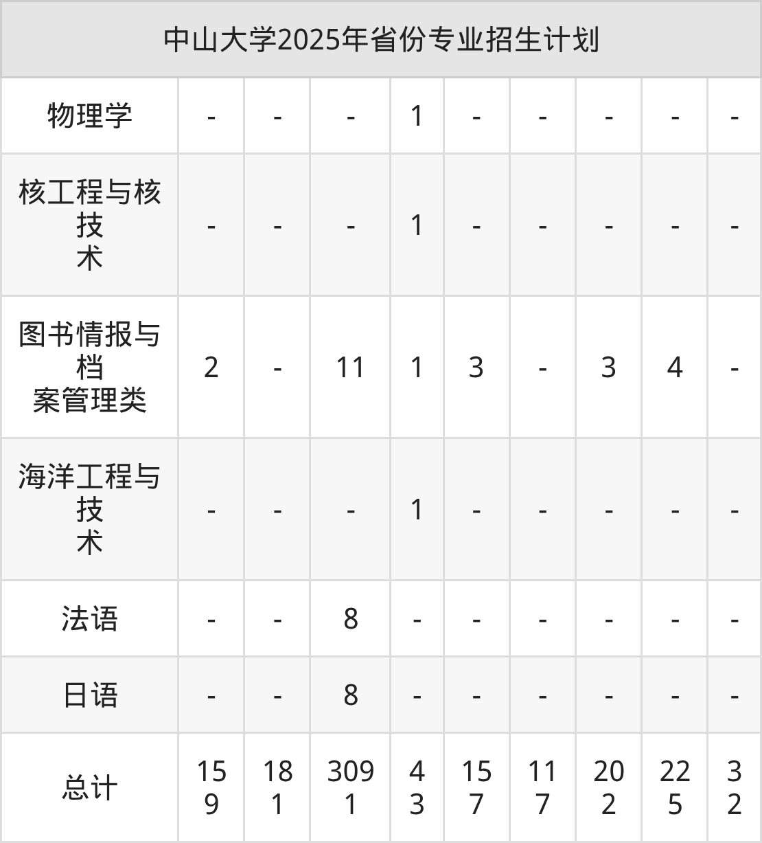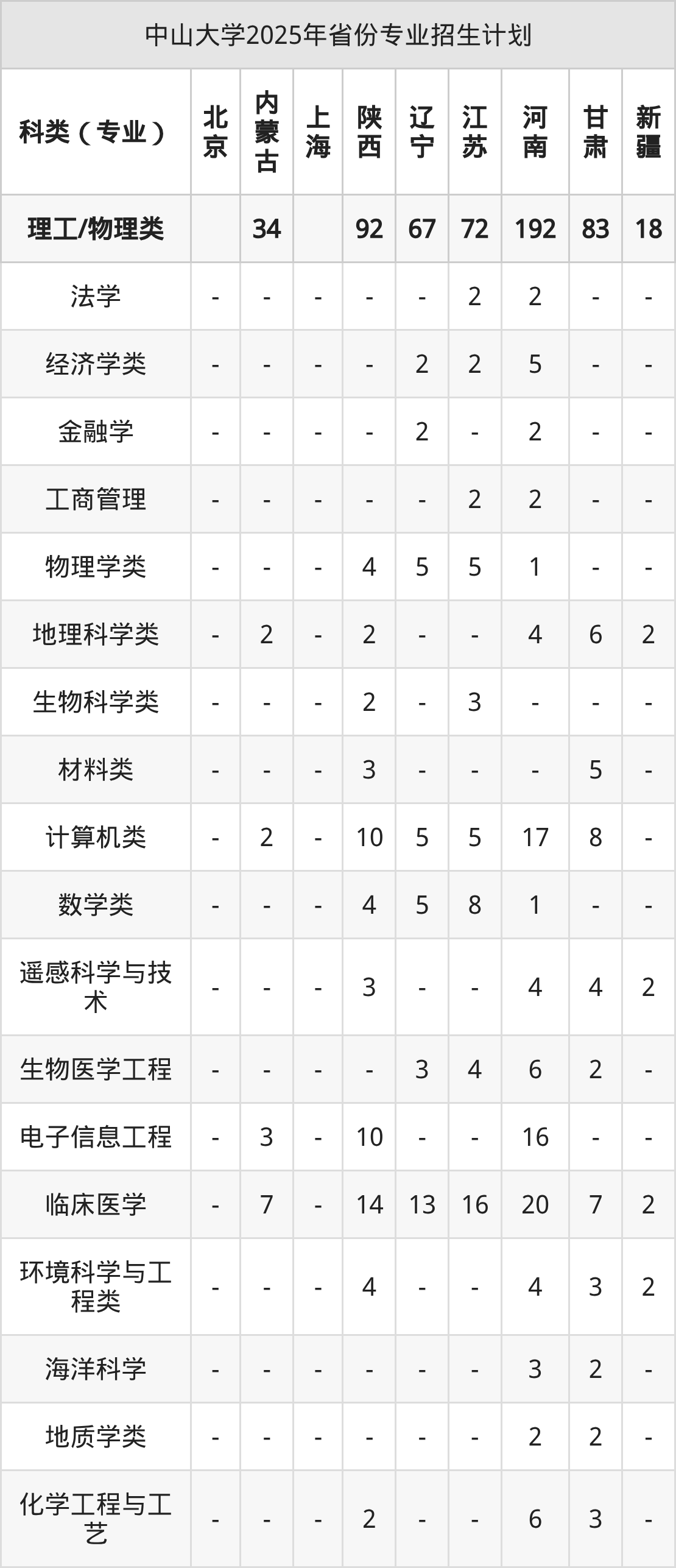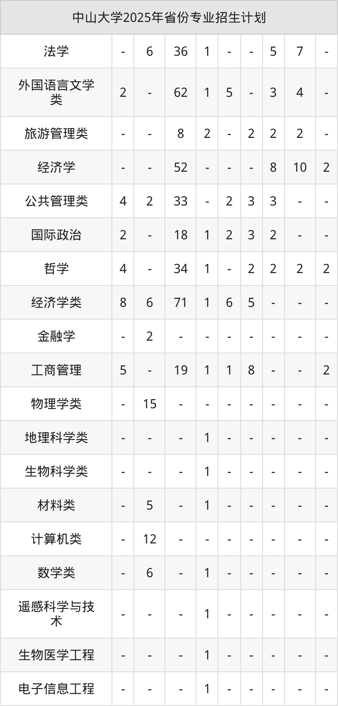 2026年中山大学本科招生计划待公布,下面附上2025年数据,暂供参考: