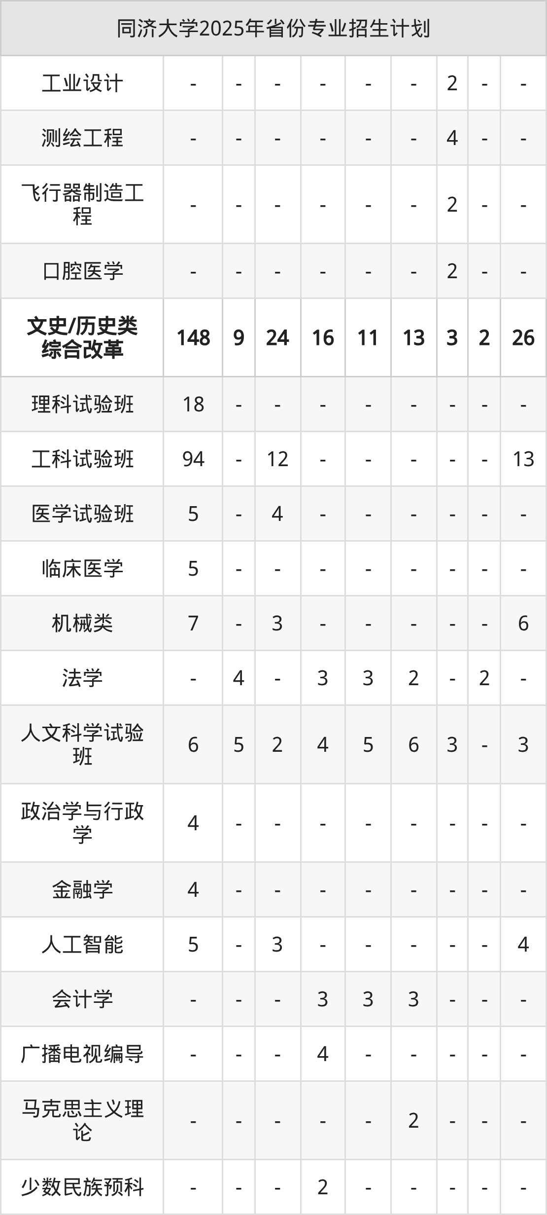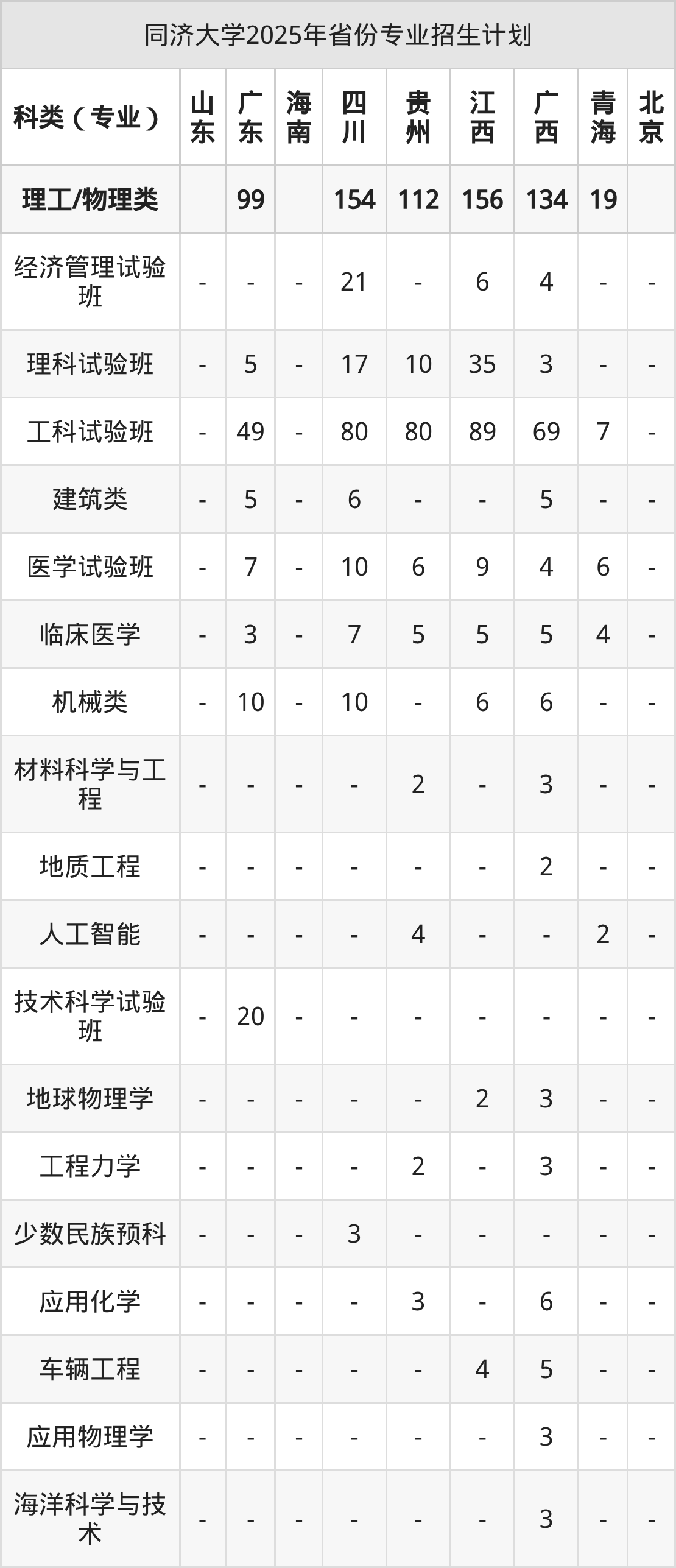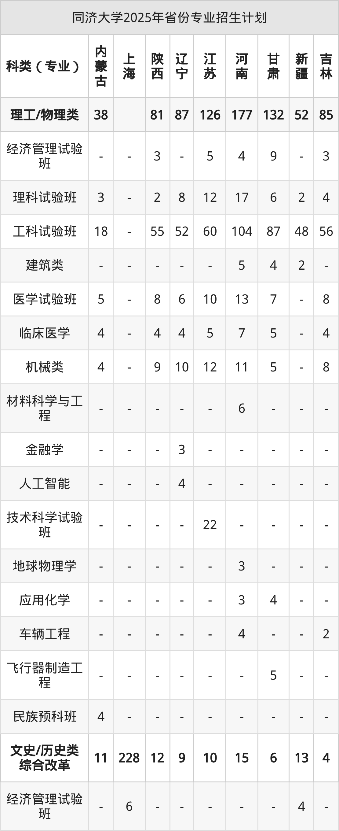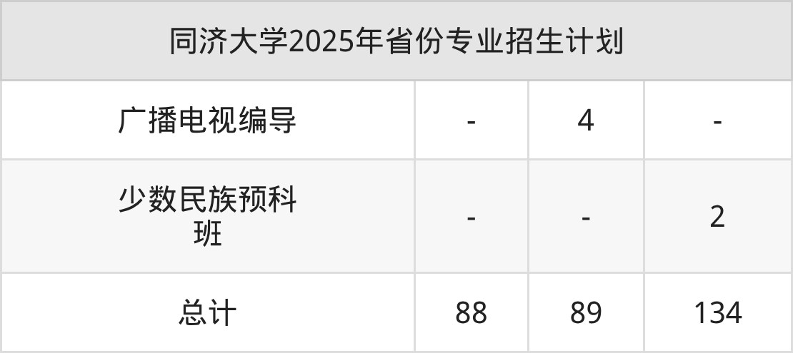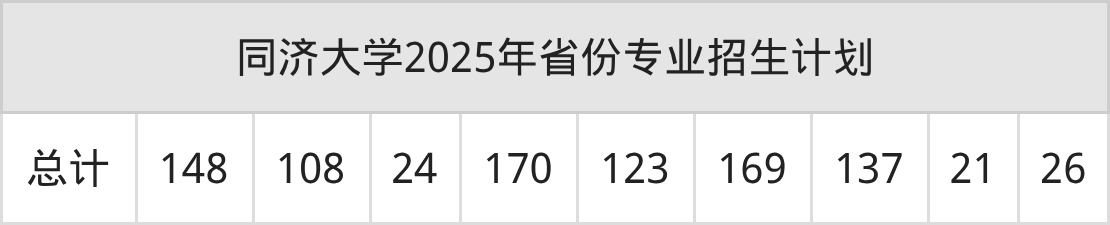 2026年同济大学本科招生计划待公布,下面附上2025年数据,暂供参考:
