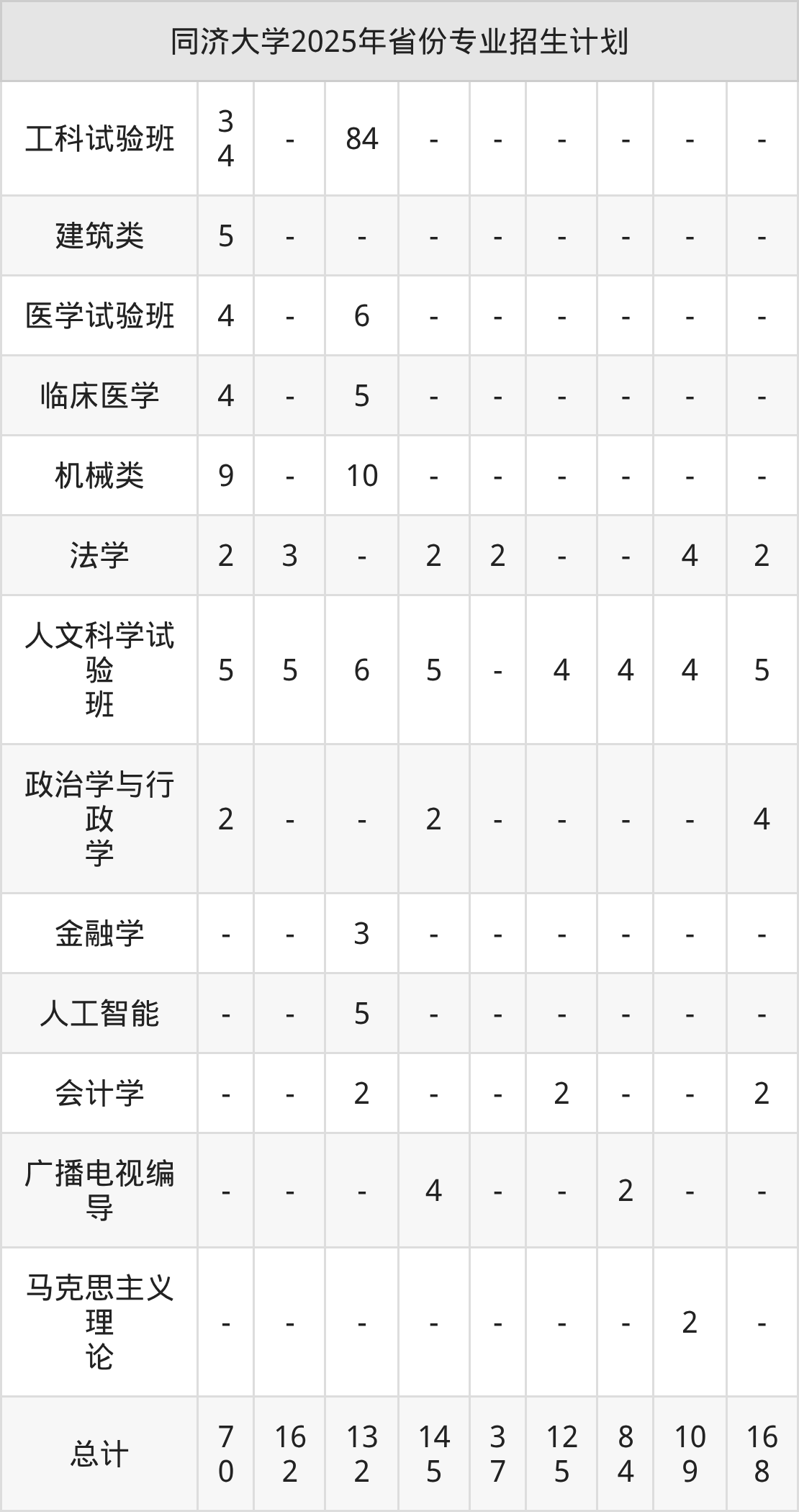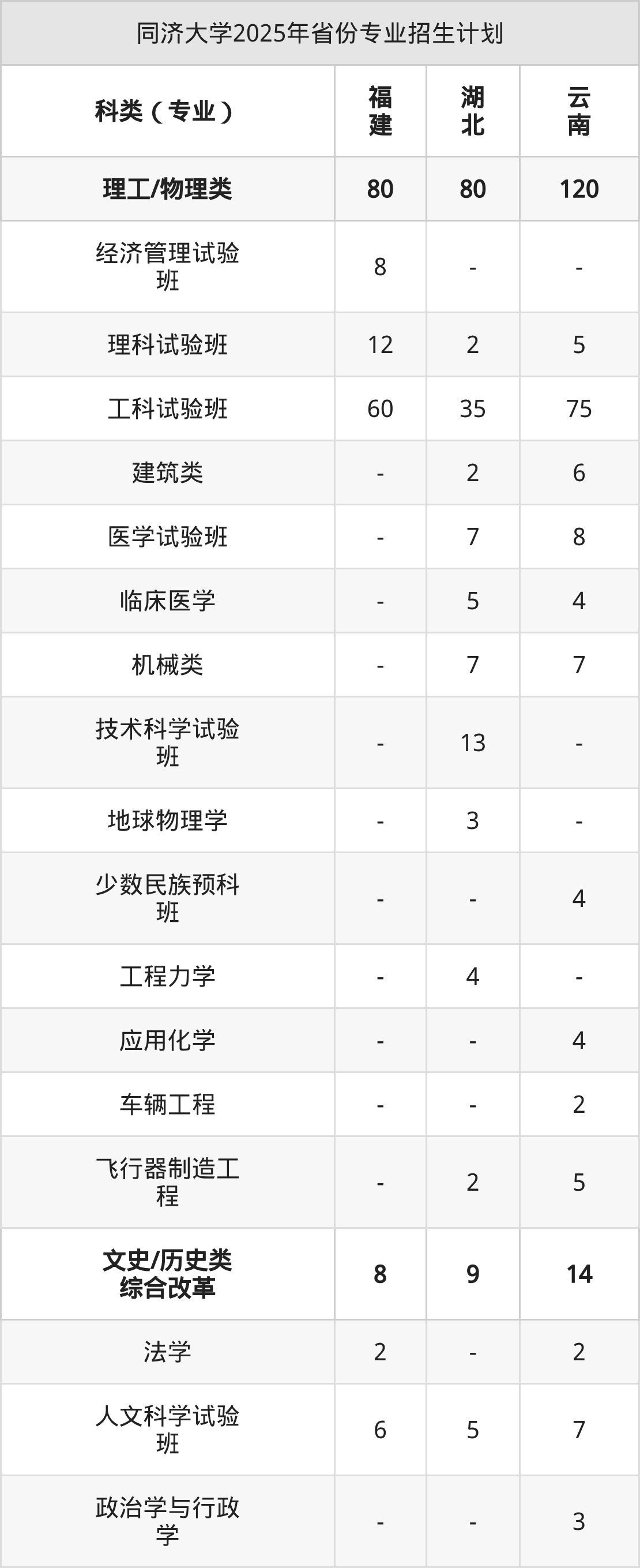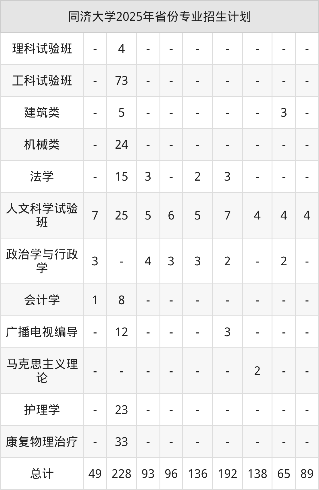 2026年同济大学本科招生计划待公布,下面附上2025年数据,暂供参考: