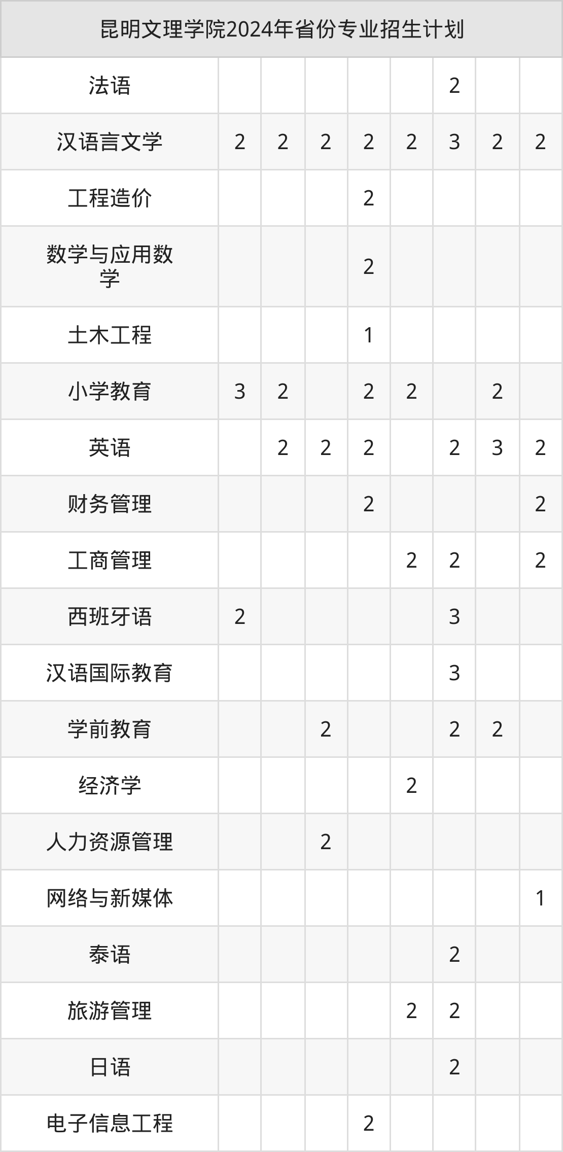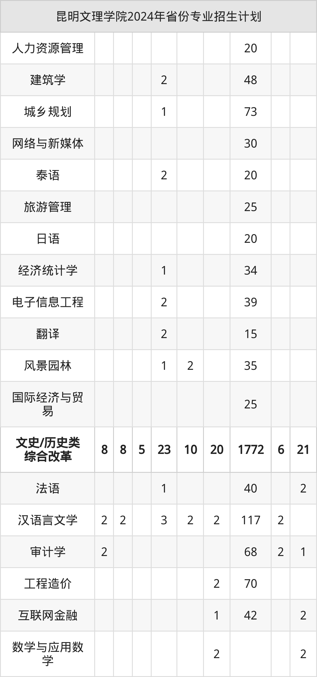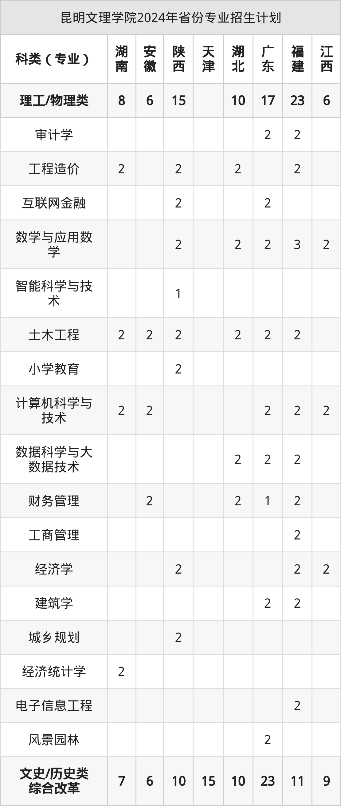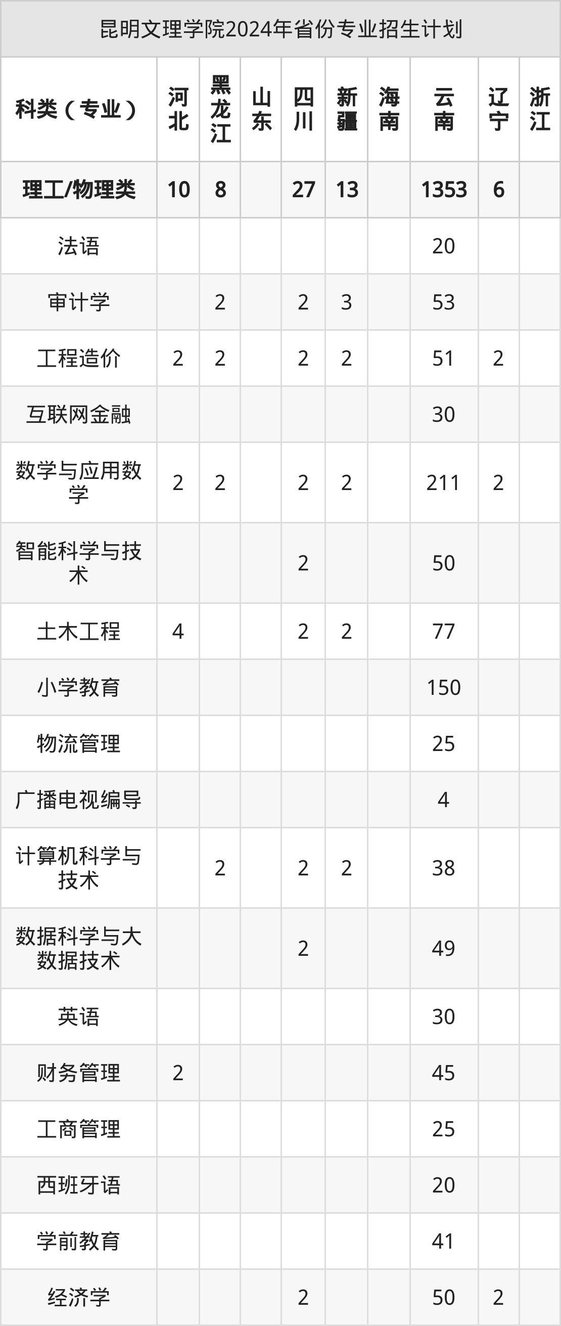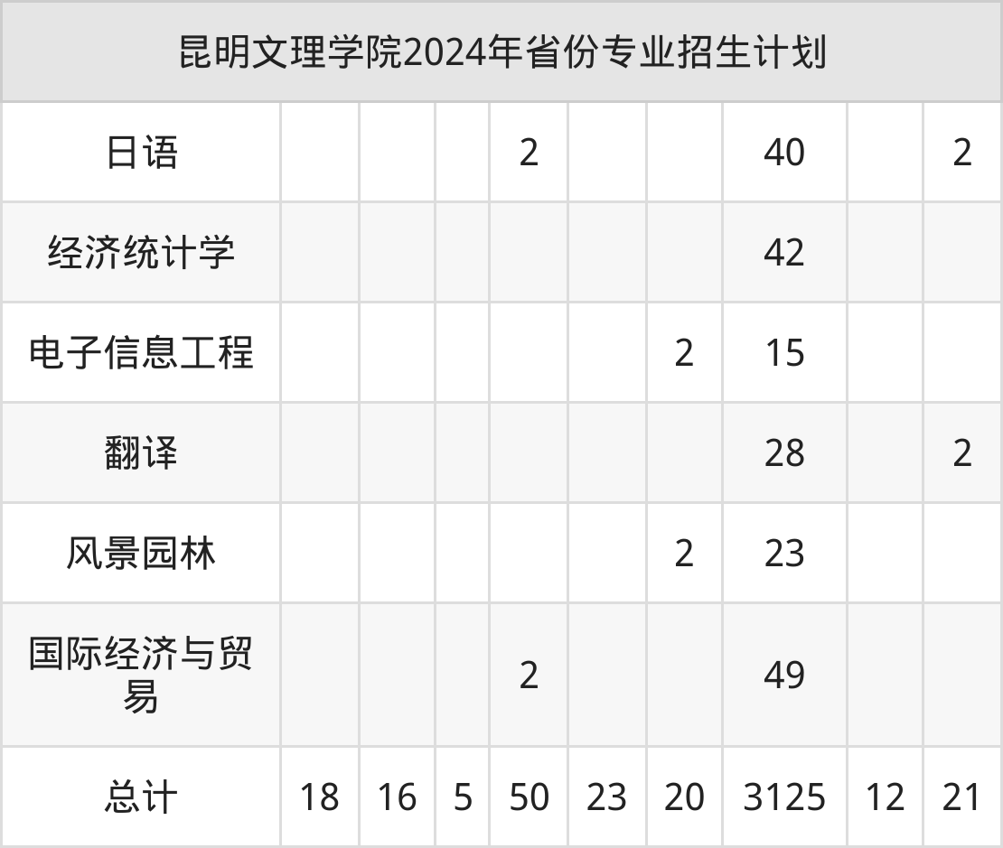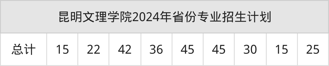 2025年昆明文理学院本科招生计划待公布,下面附上2024年数据,暂供参考: