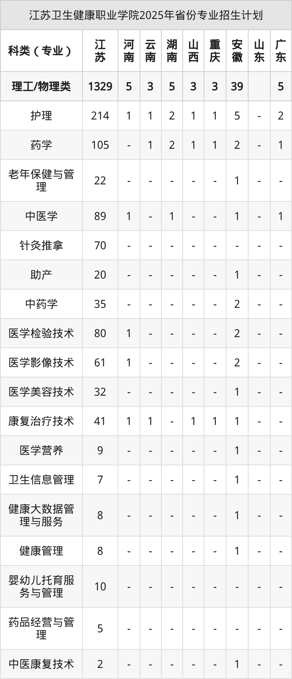2026年江苏卫生健康职业学院专科招生计划待公布,下面附上2025年数据,暂供参考: