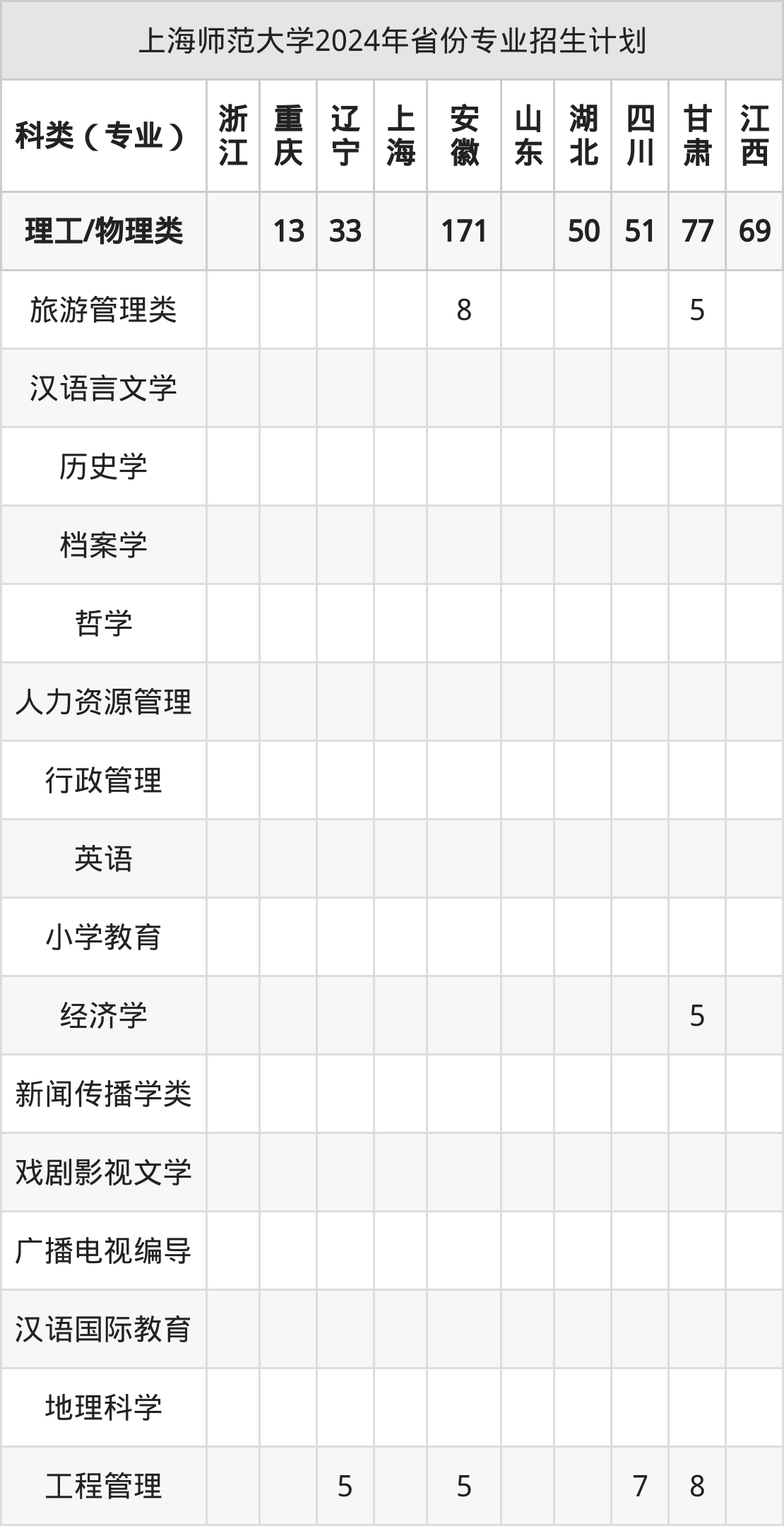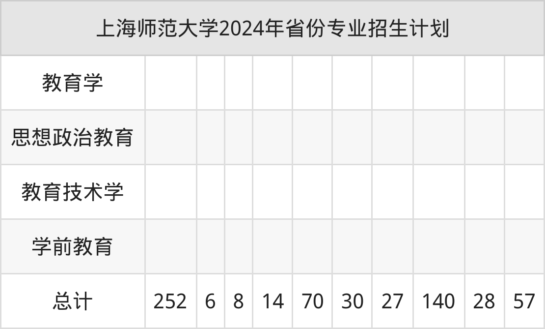 2025年上海师范大学本科招生计划待公布,下面附上2024年数据,暂供参考: