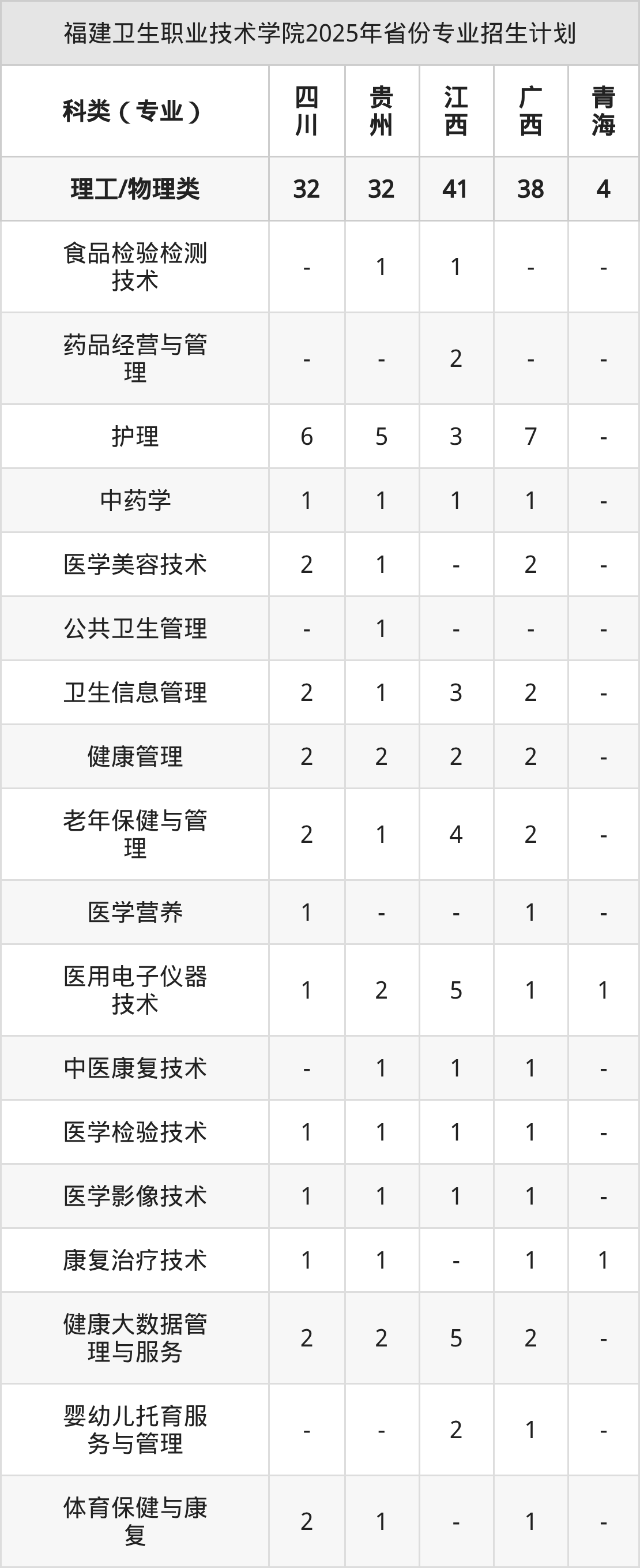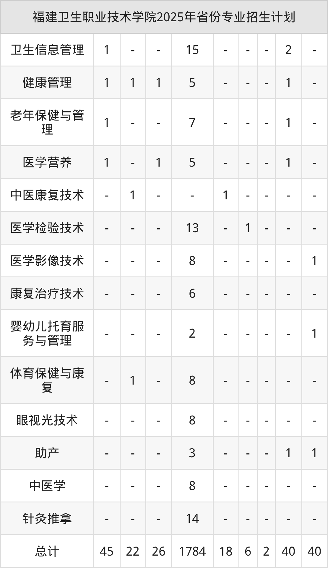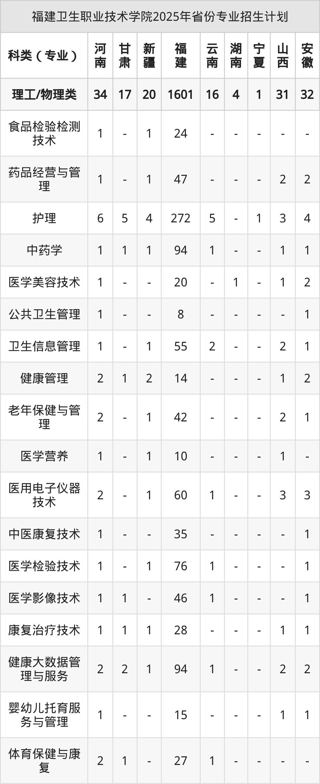 2026年福建卫生职业技术学院专科招生计划待公布,下面附上2025年数据,暂供参考: