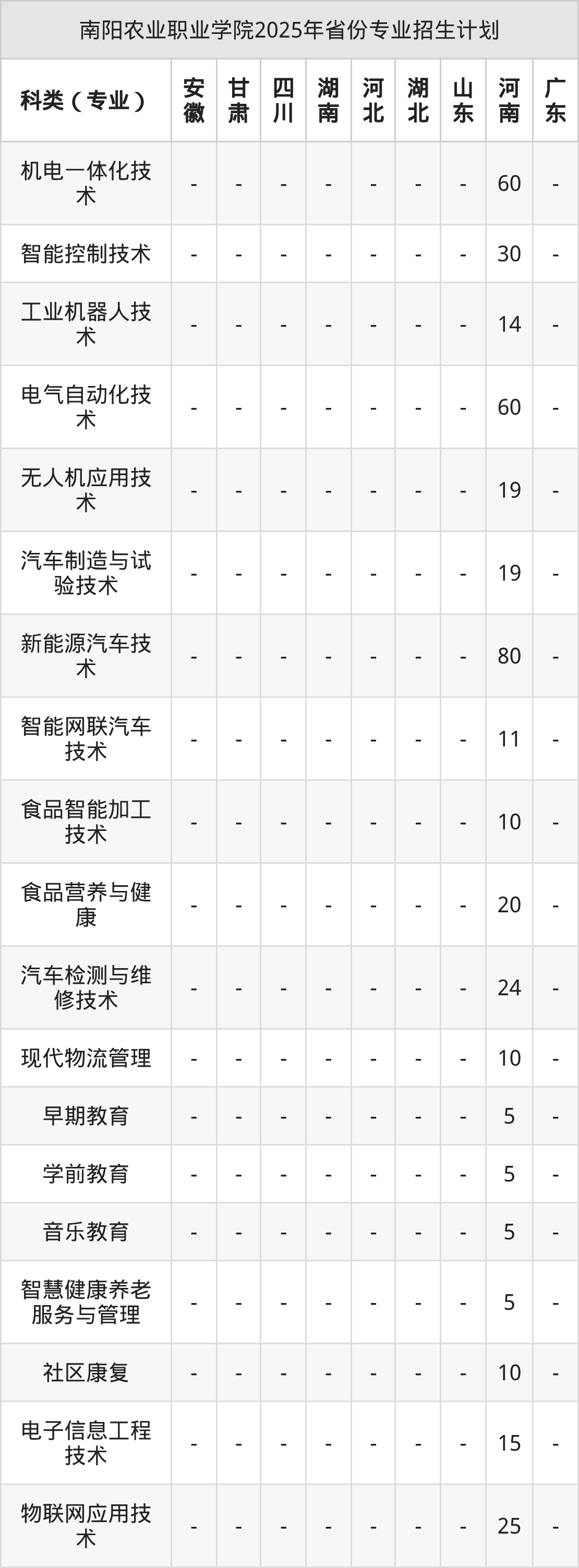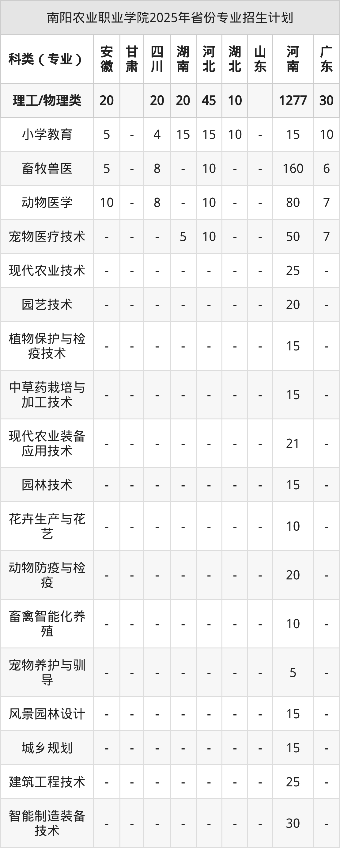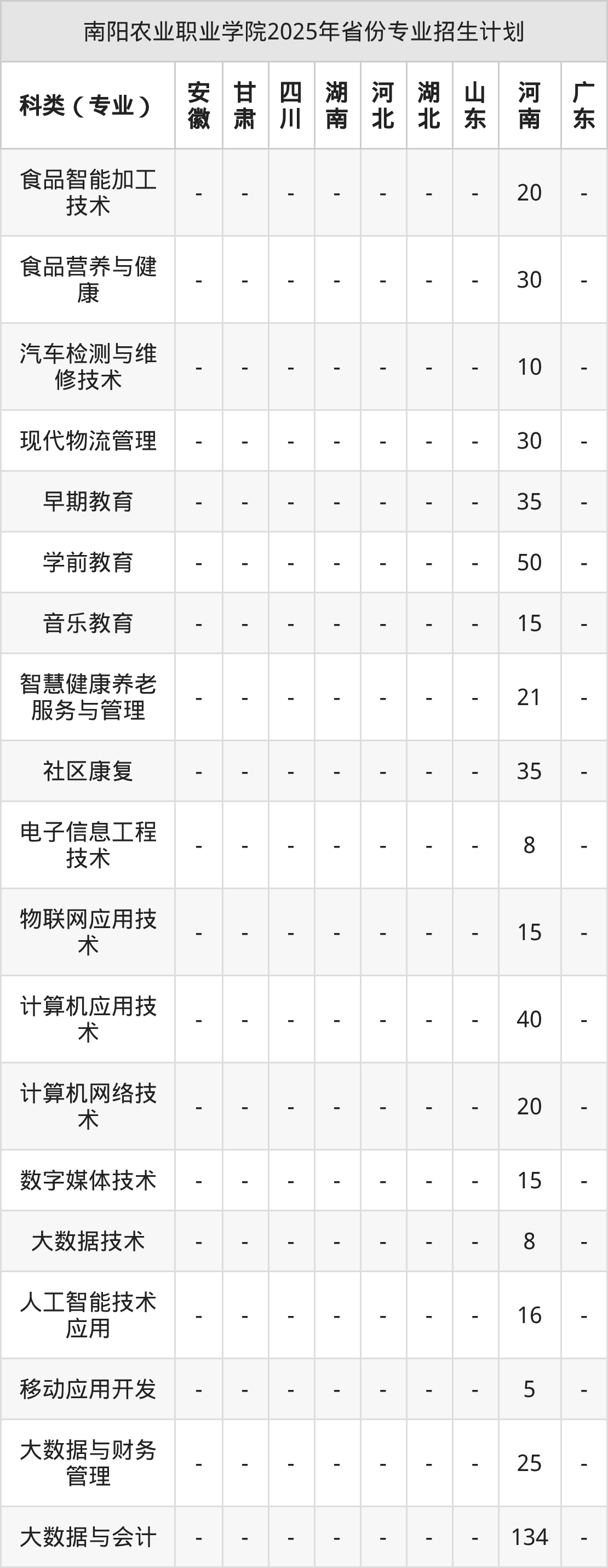 2026年南阳农业职业学院专科招生计划待公布,下面附上2025年数据,暂供参考: